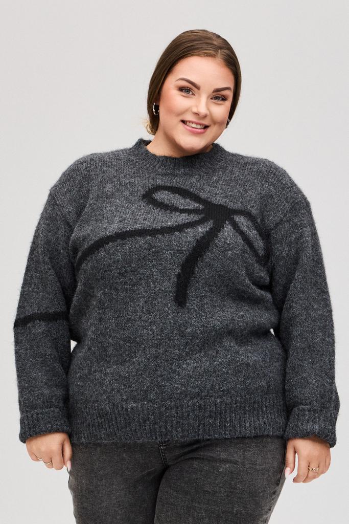 Strikbluse fra No. 1 by Ox med sløjfe på forsiden
