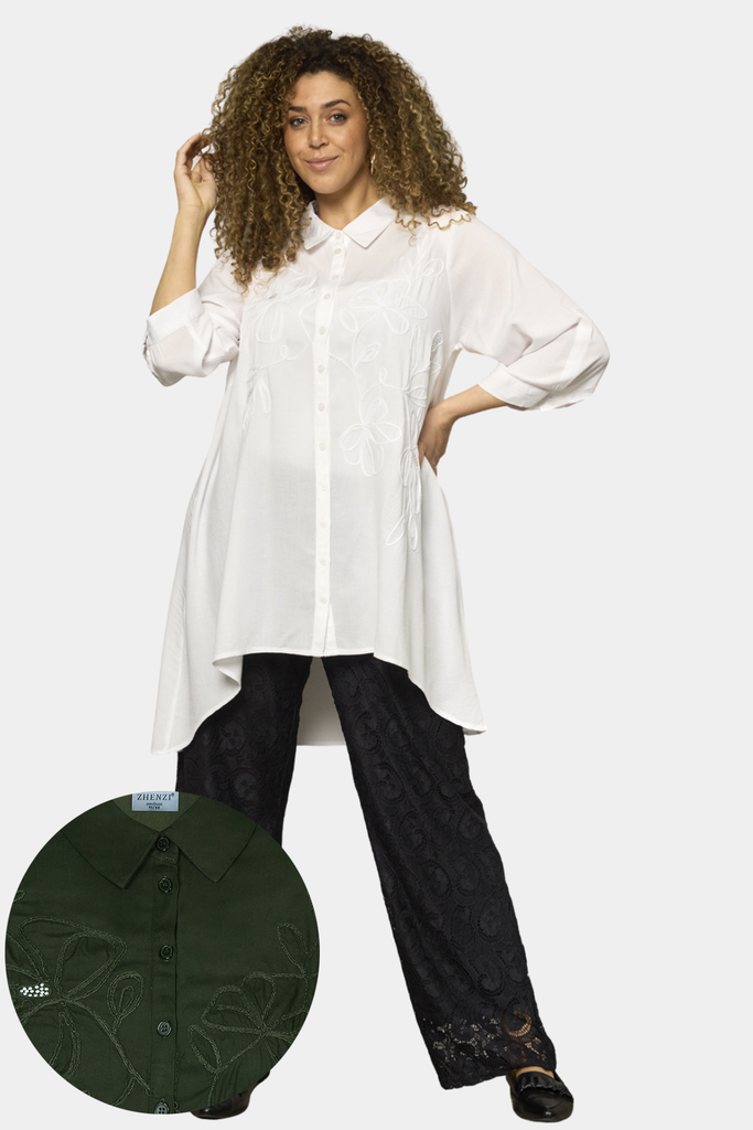 Siba skjorte tunika fra Zhenzi i mørk grøn med broderi