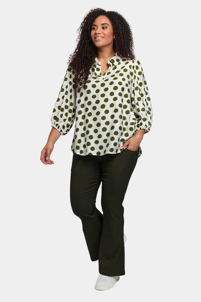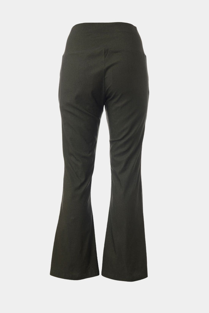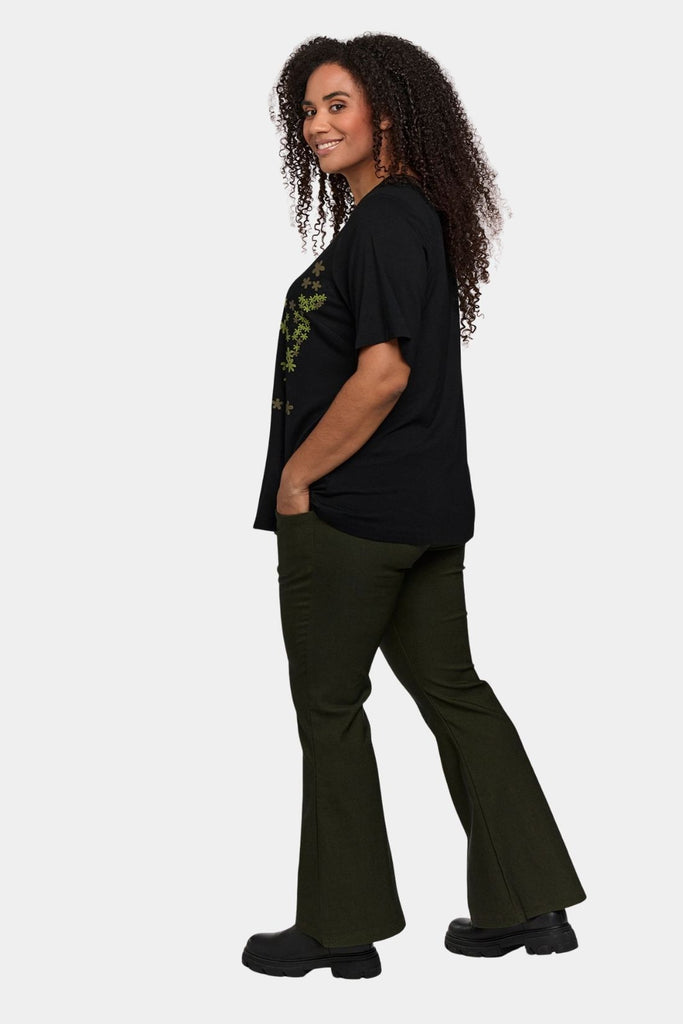 En stilren og komfortabel buks fra Studio, fremstillet i en lækker kvalitet med 75% viskose, 21% nylon og 4% elastan. Modellen har en normal pasform og en bred, behagelig pull-on linning, der sikrer en glat og ren silhuet under både toppe og bluser. Benene er let figursyede med markeret bootcut, som giver et feminint fald og flot balance i looket.