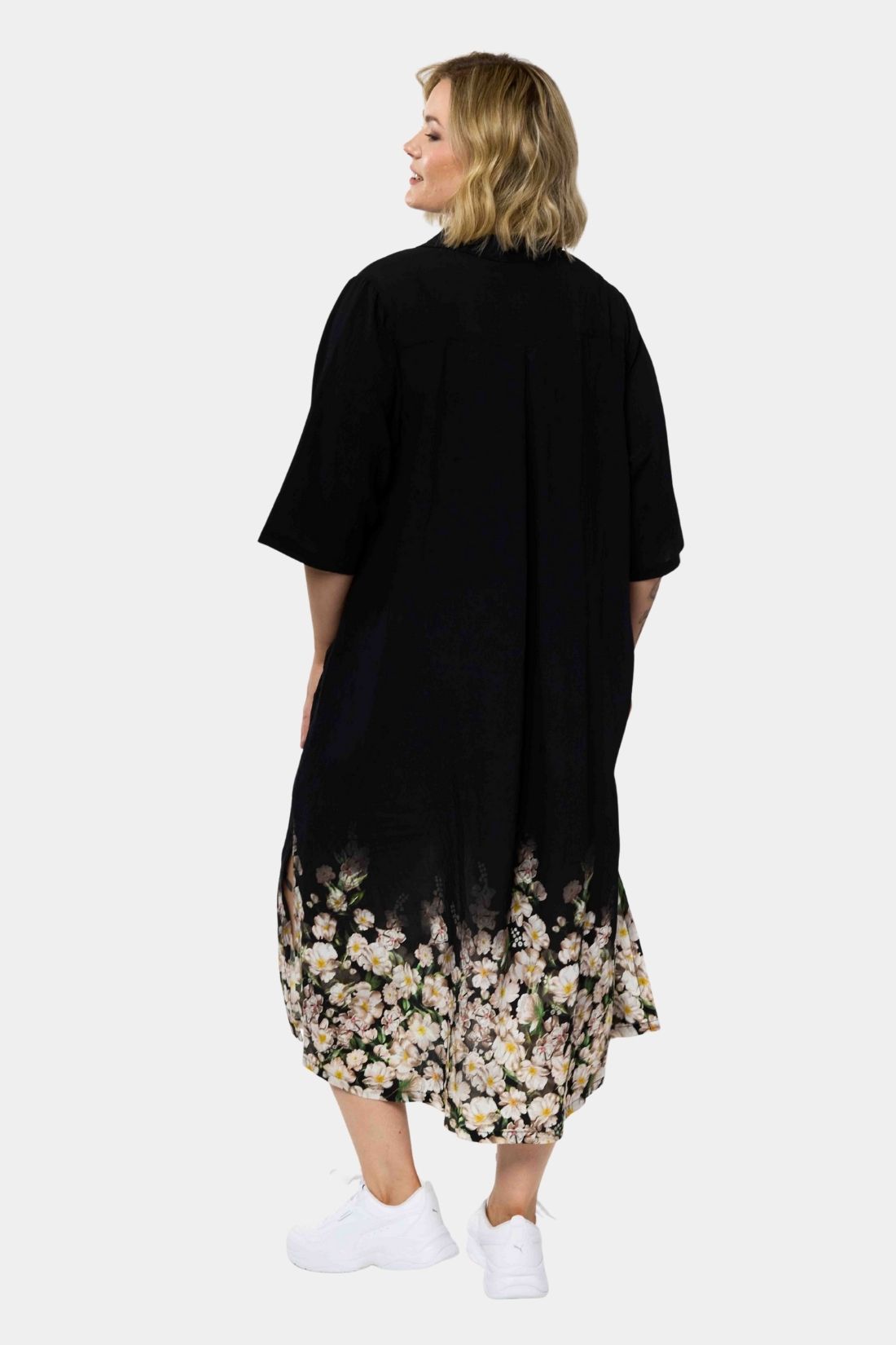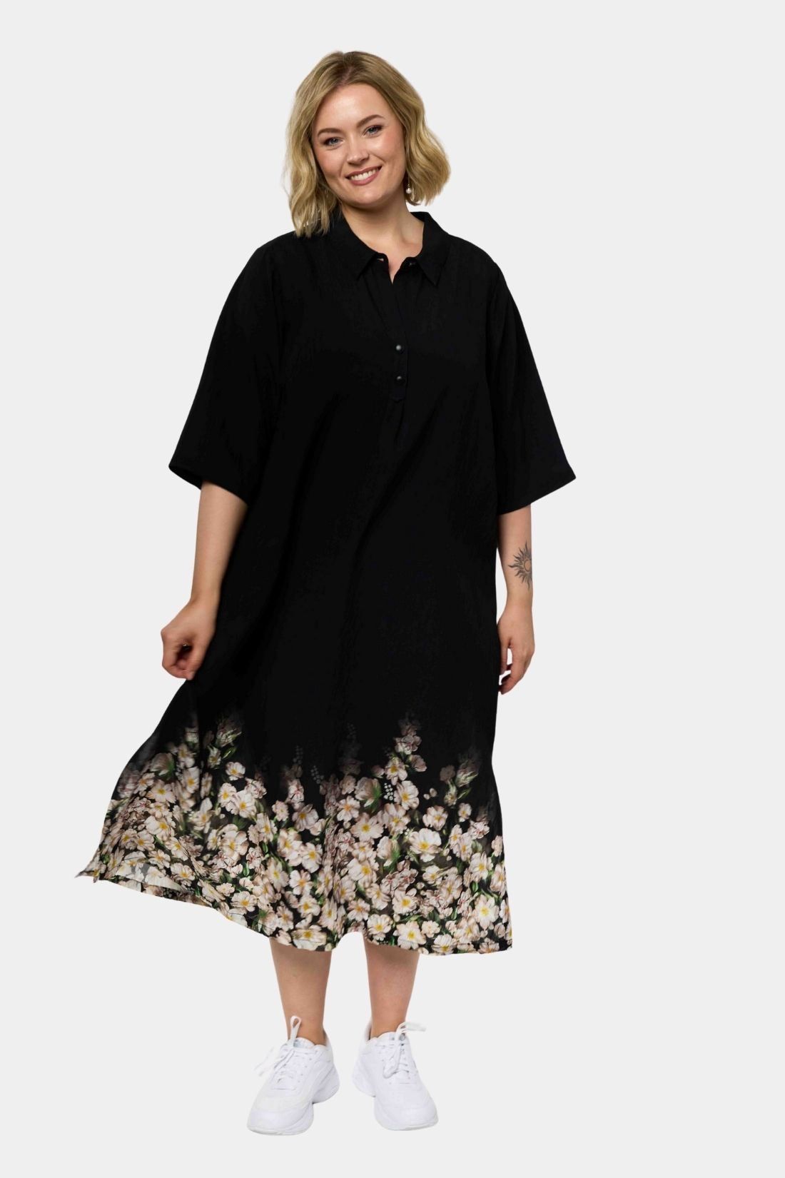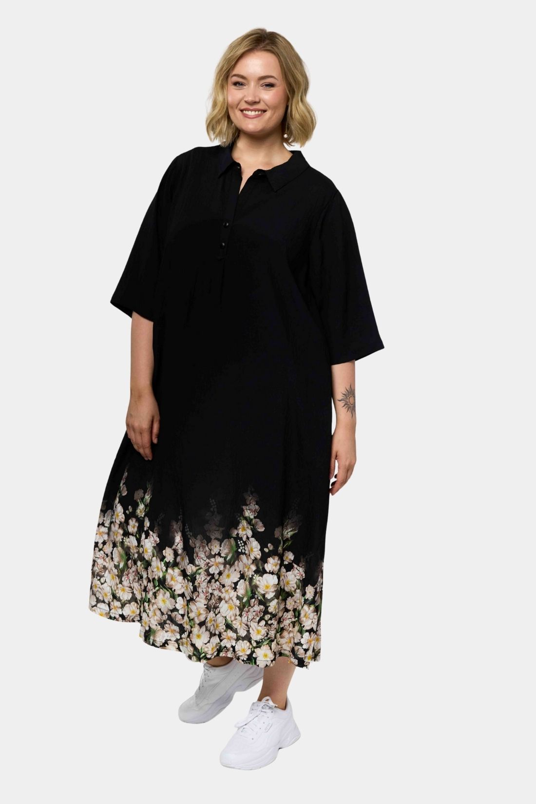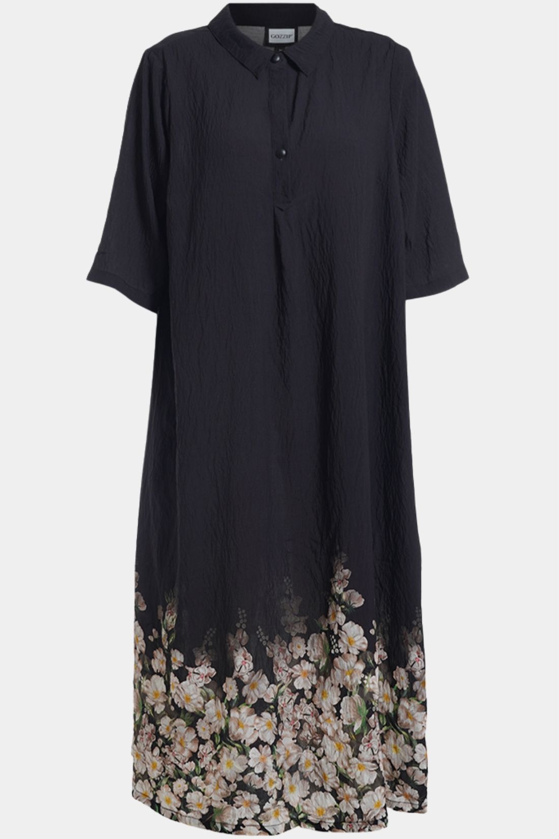 En løs og afslappet kjole fra Gozzip med et enkelt og balanceret udtryk der er nem at bruge i hverdagen. Den rummelige silhuet falder let omkring kroppen og giver god bevægelsesfrihed, mens det smukke blomstrede print nederst på kjolen tilfører et feminint og elegant touch.