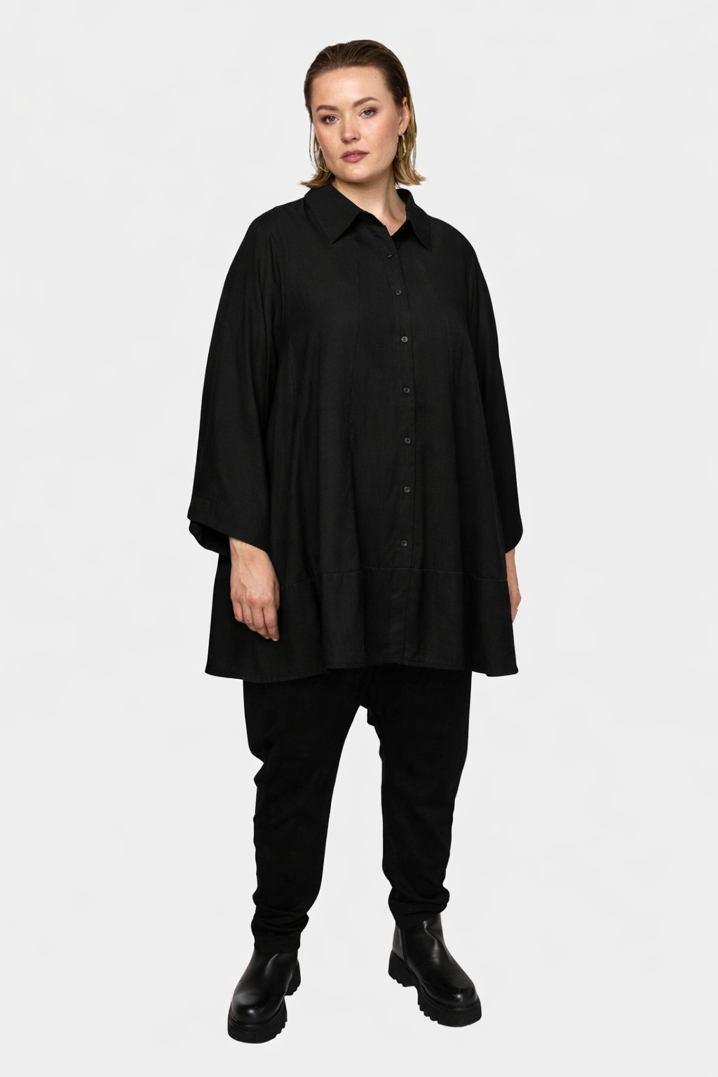 En let og rummelig skjorte fra Gozzip Black med en smuk ballon facon der giver et blødt og feminint udtryk. Den A formede silhuet falder let fra skuldrene og giver god bevægelsesfrihed, mens det enkle snit gør skjorten nem at bruge i hverdagen.