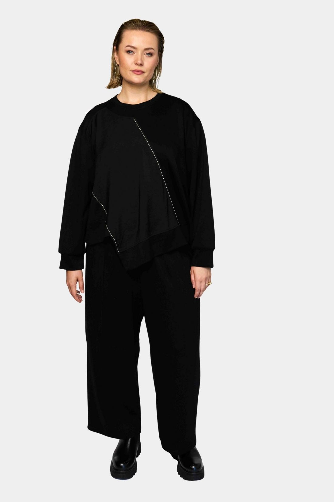 Et par enkle og afslappede bukser fra Gozzip Black med et roligt og funktionelt udtryk der er nemme at bruge i hverdagen. Den lige og rummelige silhuet falder naturligt fra hoften og giver en behagelig pasform med god bevægelsesfrihed. Et tidløst design der er let at kombinere med både bluser tunikaer og jakker.