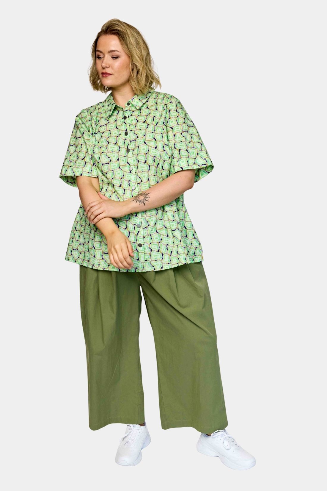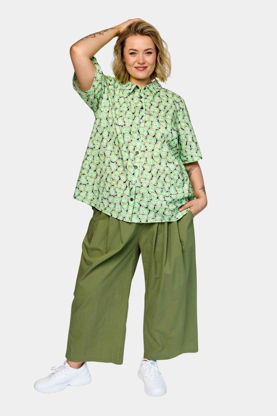 En afslappet og let skjorte fra Gozzip med et roligt og feminint udtryk der er nem at bruge i hverdagen. Den løse silhuet falder ubesværet omkring kroppen, og de mange læg i ryggen giver flot vidde og et smukt fald. En skøn skjorte der fungerer lige godt til både bukser og nederdele.