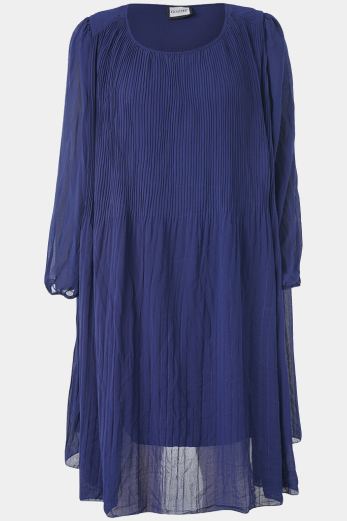 Smuk kjole fra Gozzip syet i et blå plisseret chiffon stof.