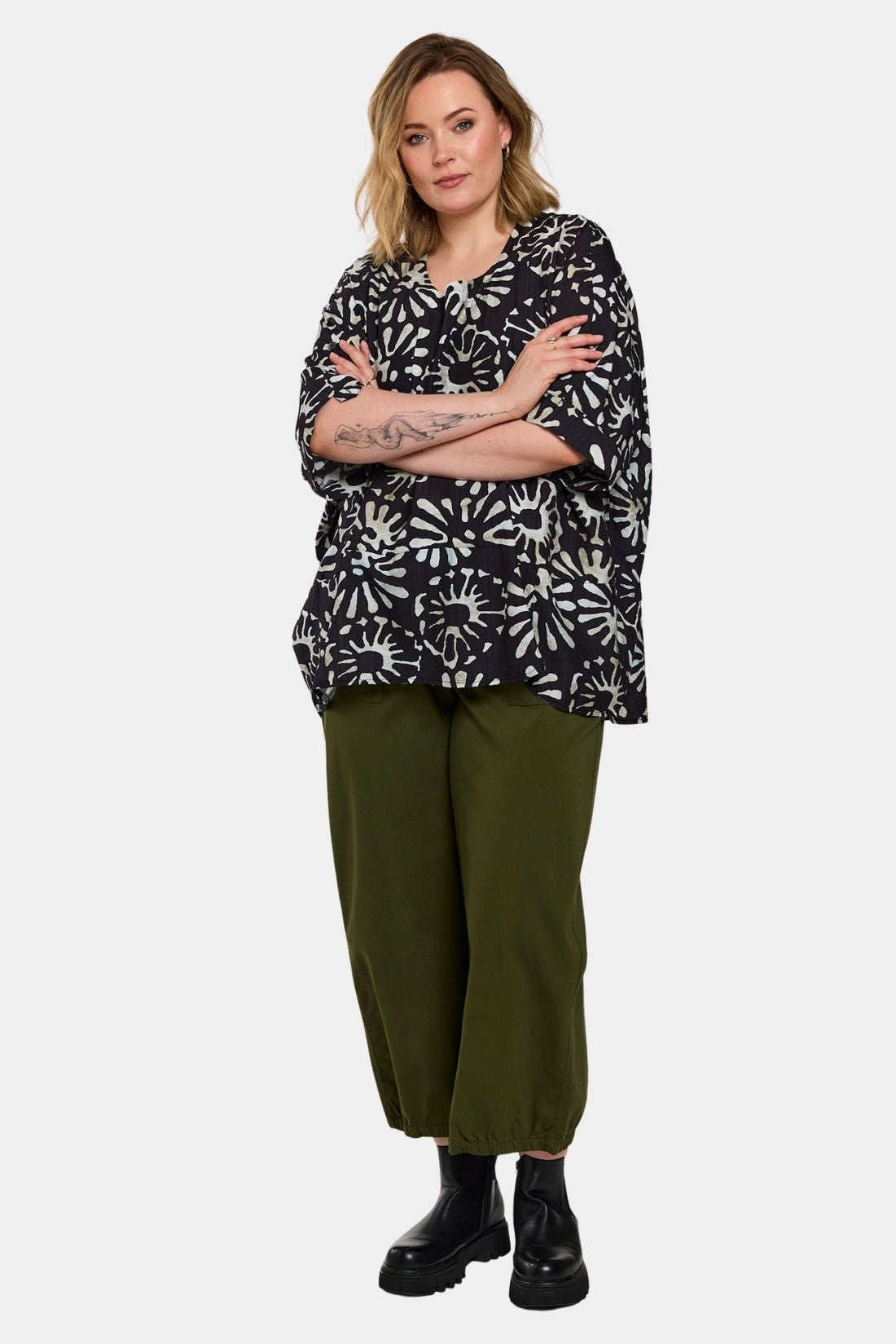 Oversize bluse fra Gozzip i viskose/nylon med grafisk print