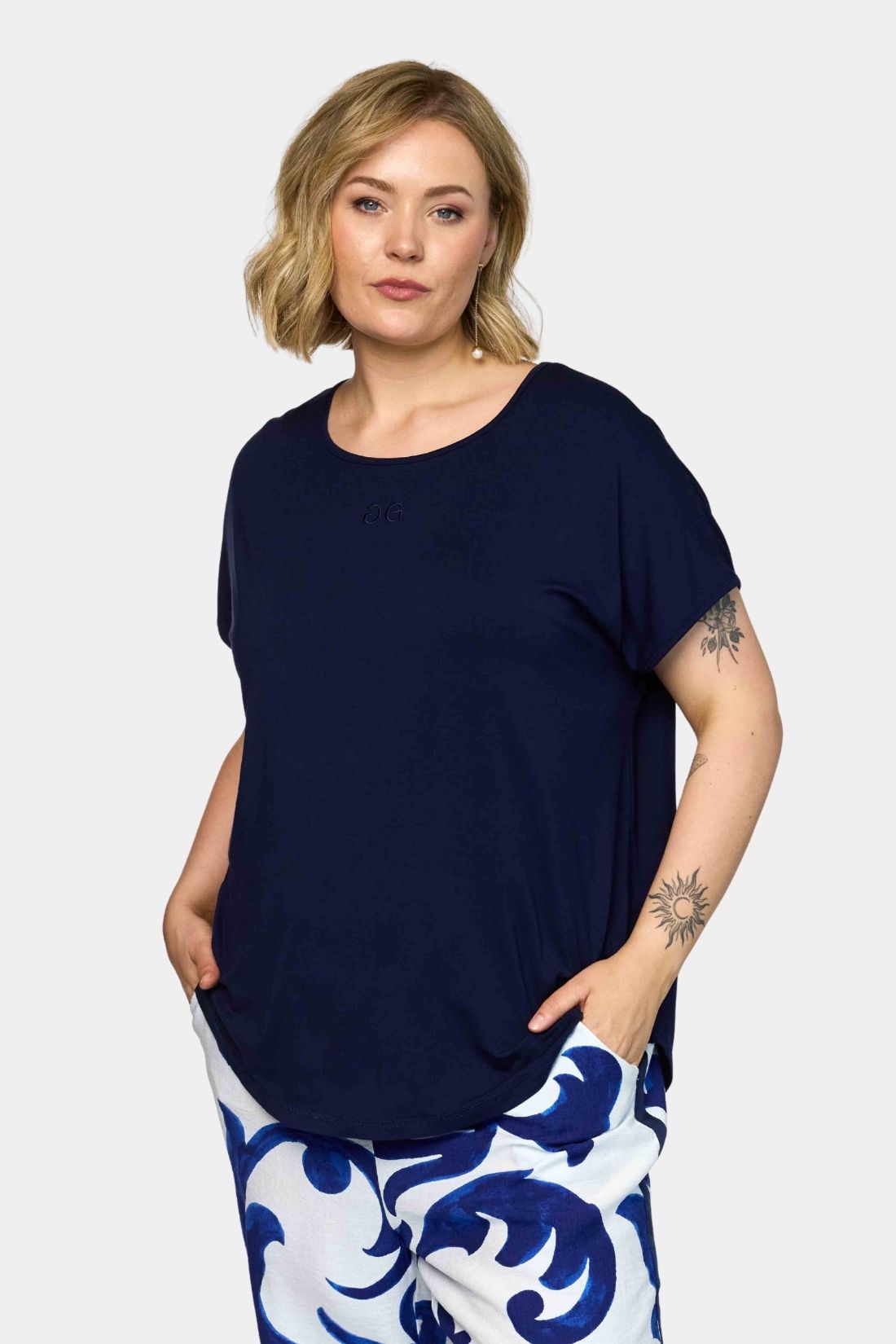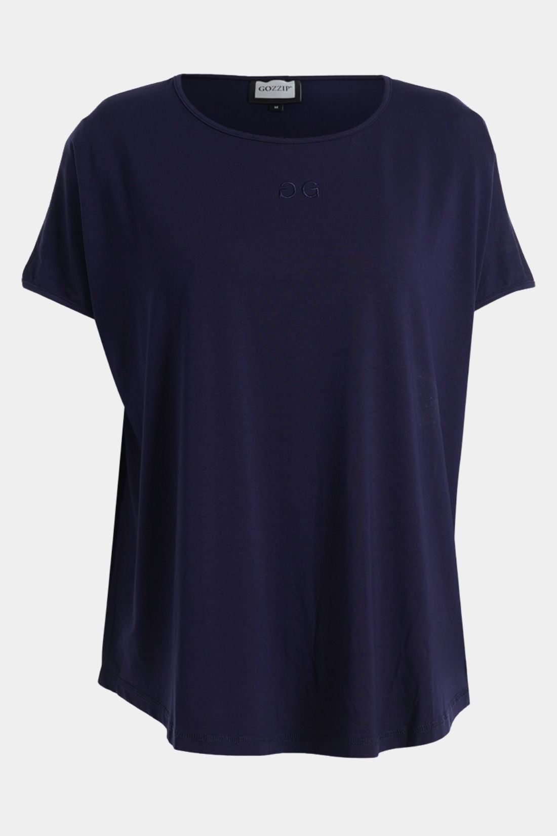 Gitte t-shirt fra Gozzip i navy med små brodering i halsen