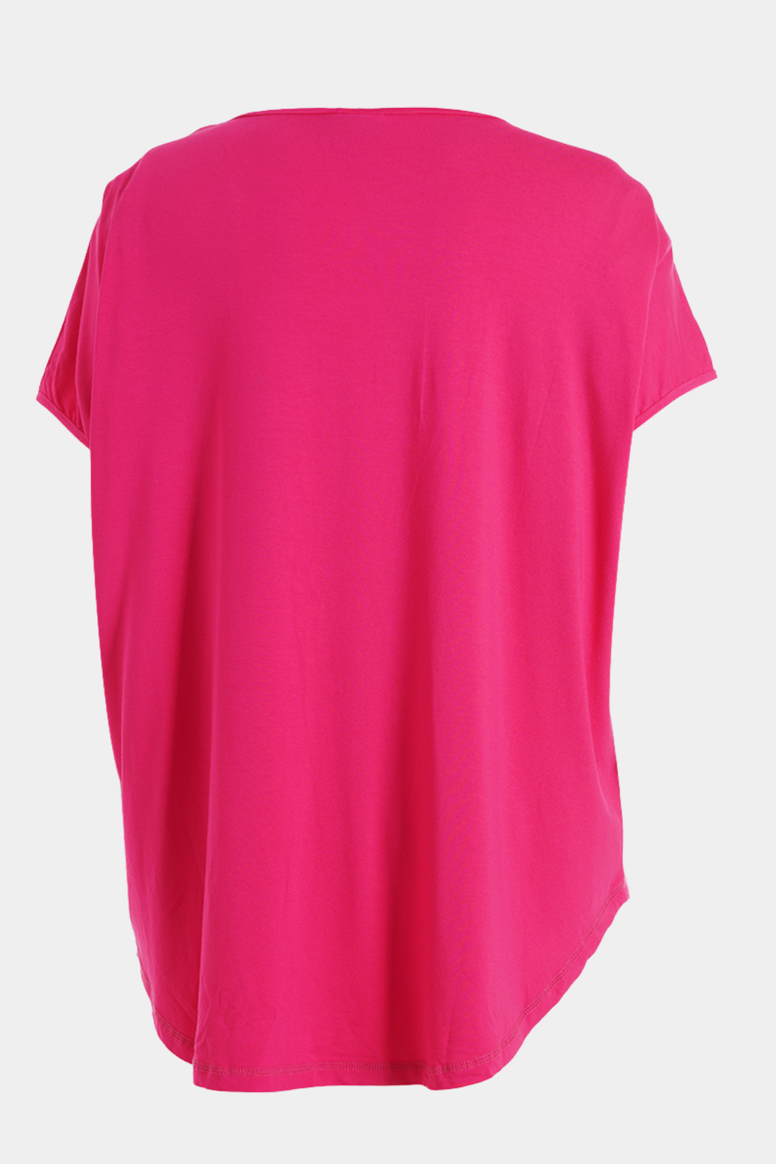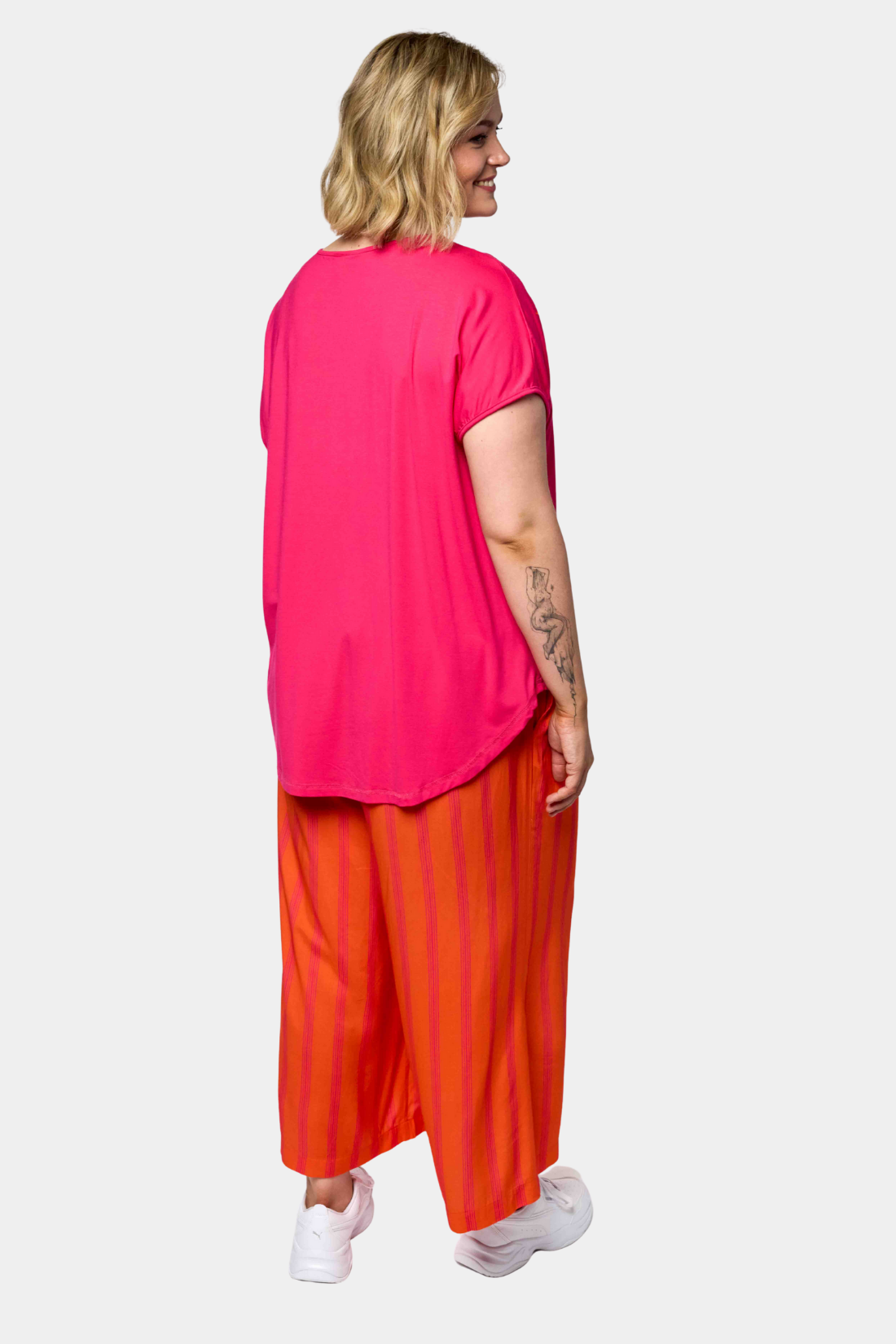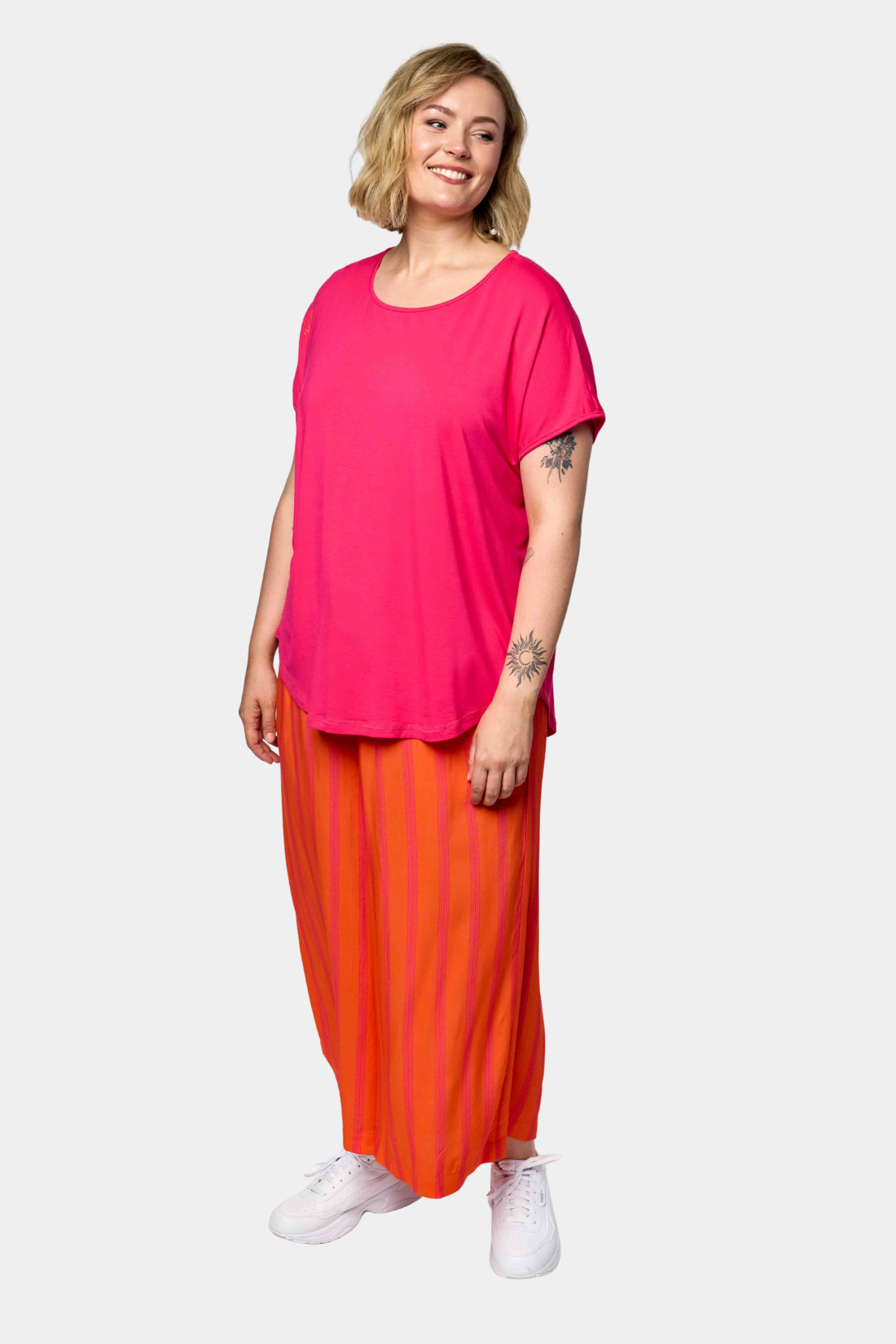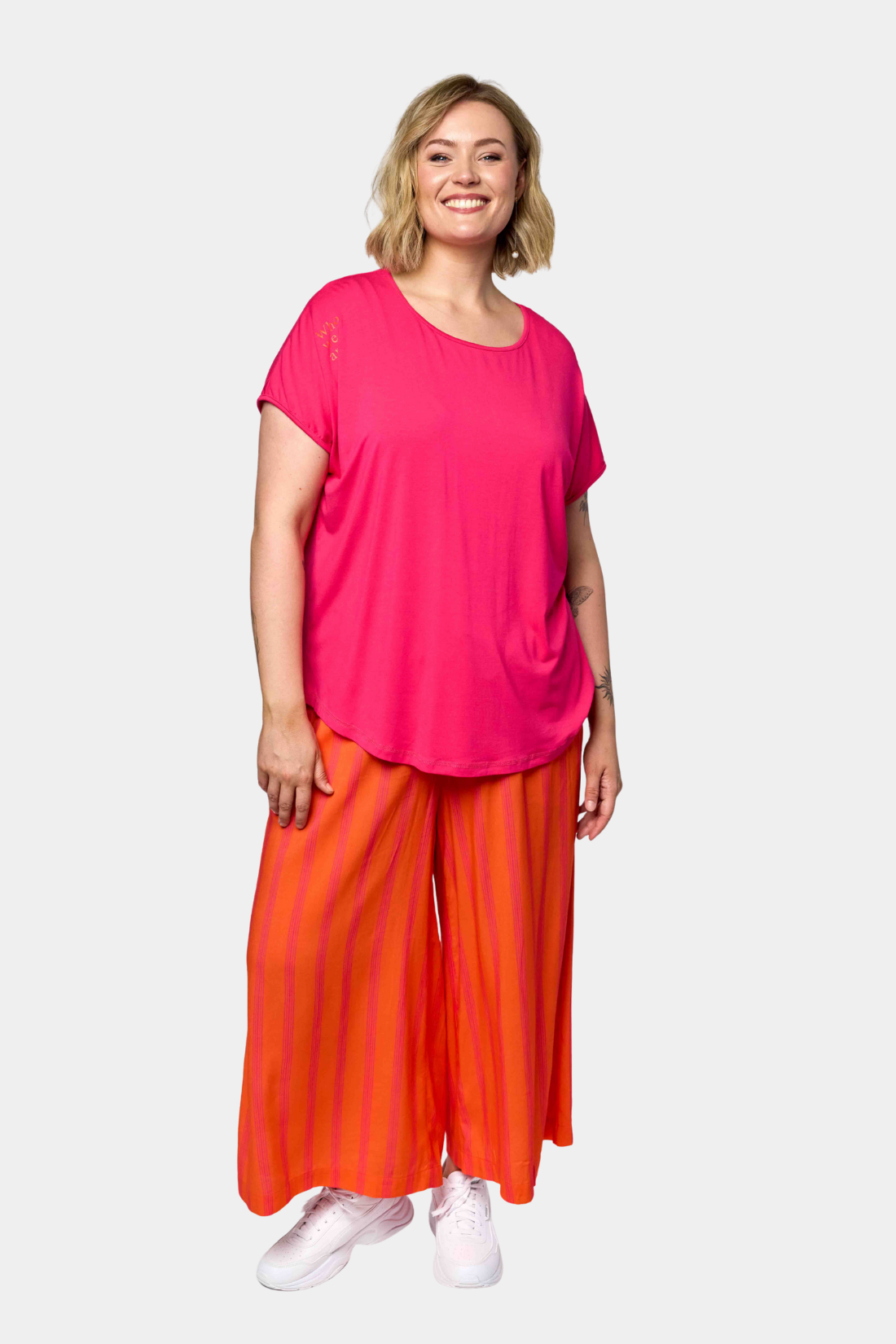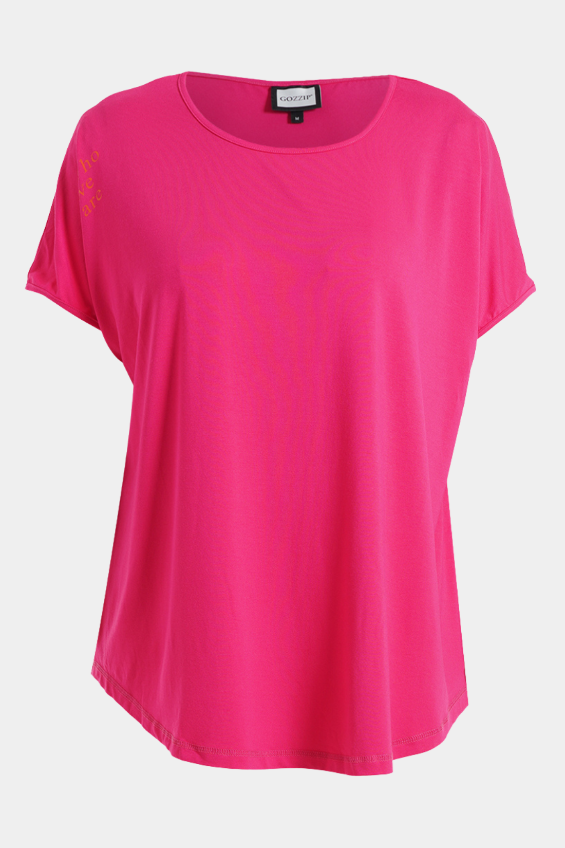 Gitte t-shirt fra Gozzip i pink med små tekst i orange