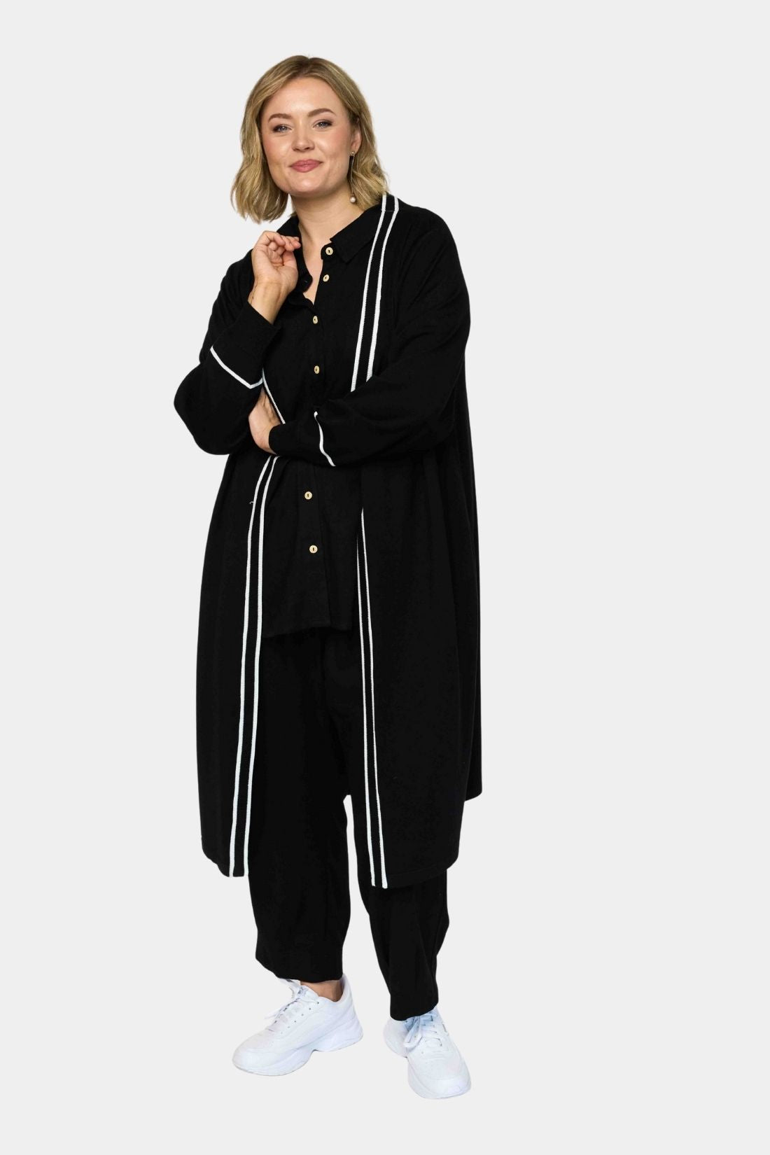 En lang og elegant cardigan fra Gozzip i en blød viskoseblanding med et roligt og balanceret udtryk. Den løse silhuet falder smukt langs kroppen og giver et afslappet lag på lag look, som er perfekt over både kjoler, tunikaer og bukser. En skøn model til hverdagen hvor komfort og stil går hånd i hånd.