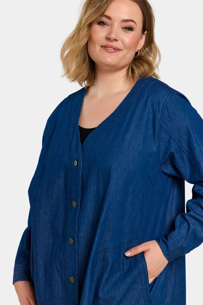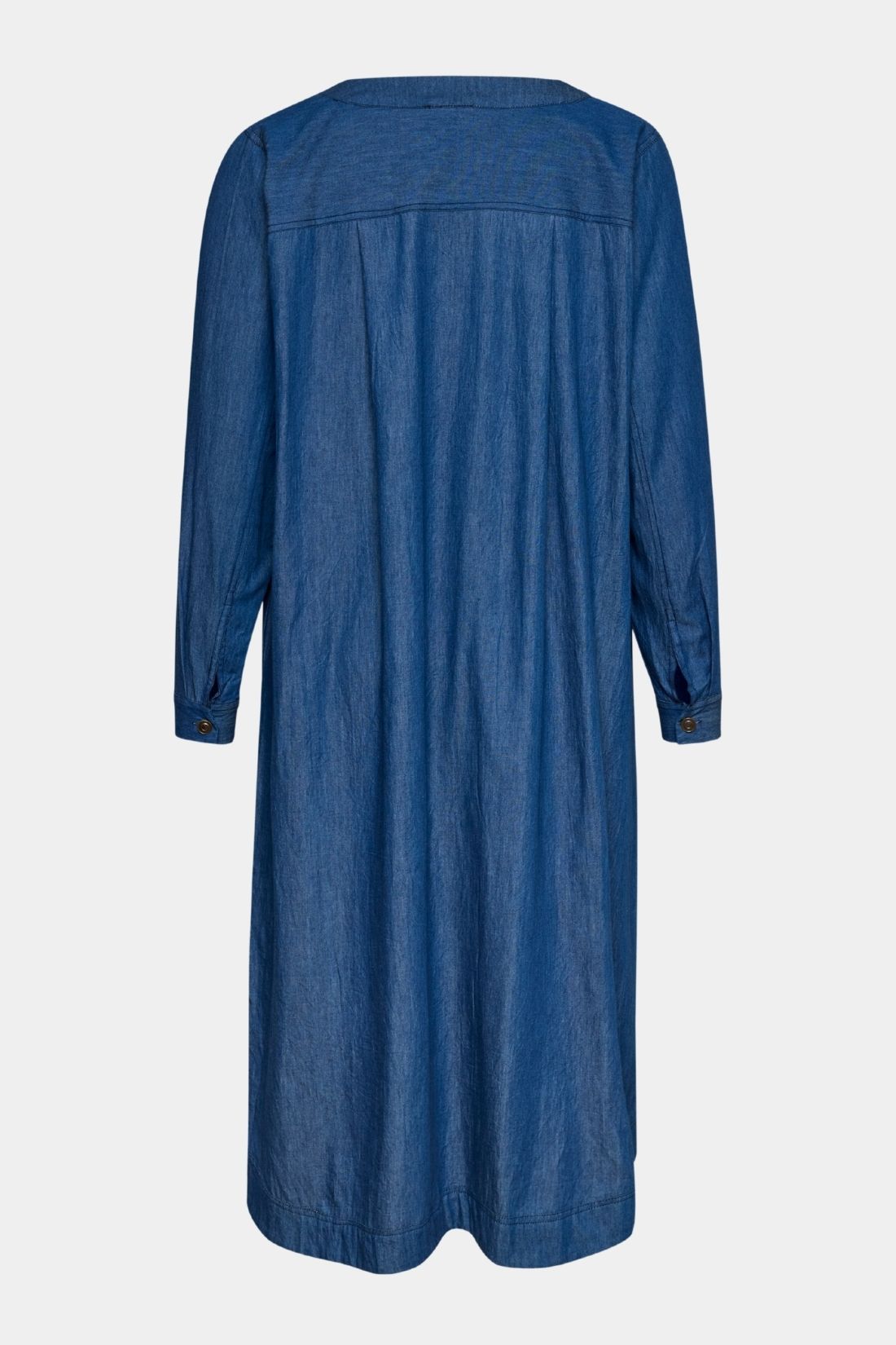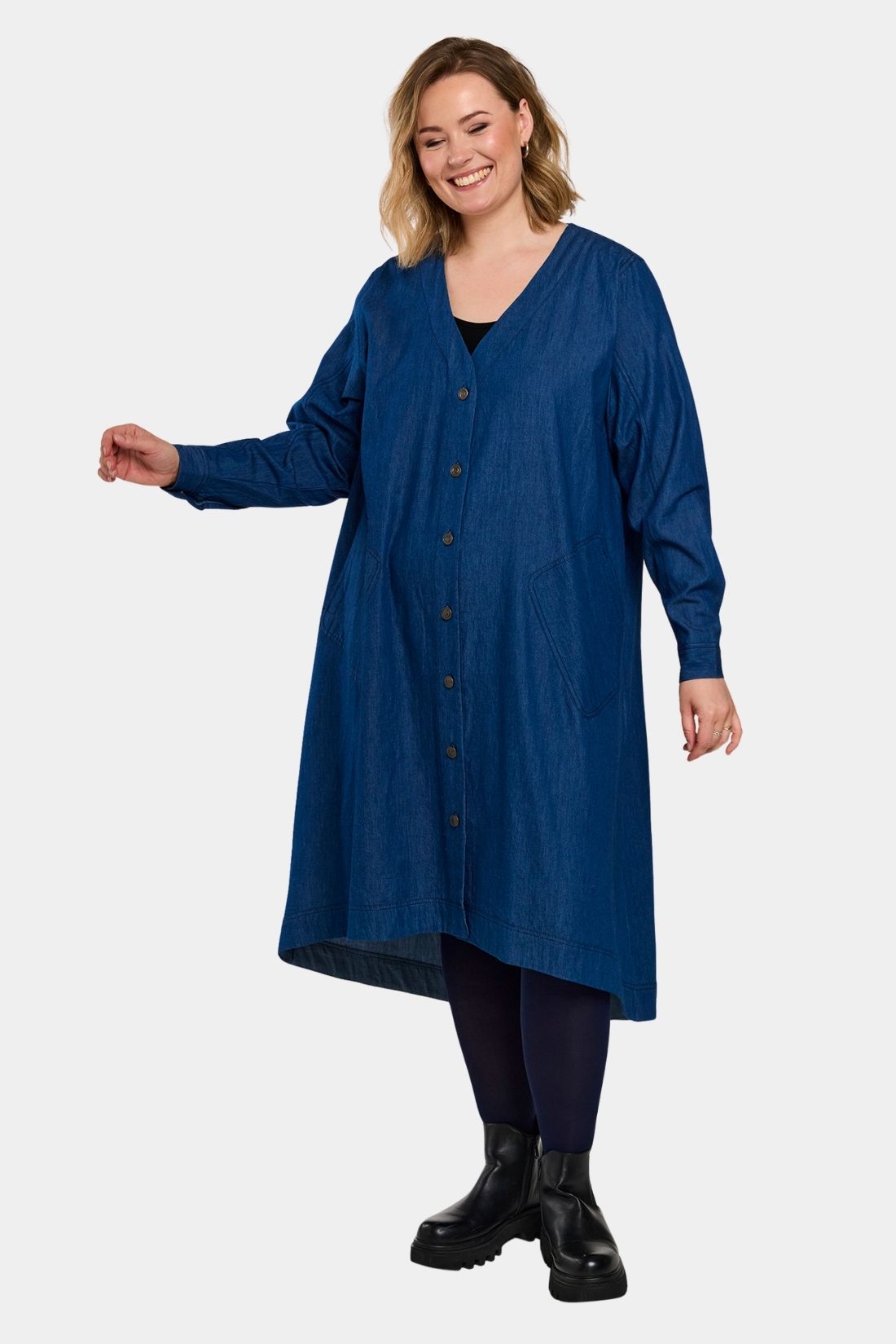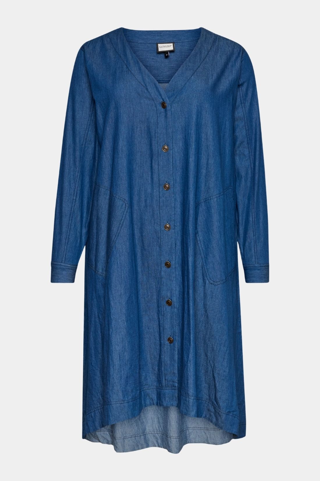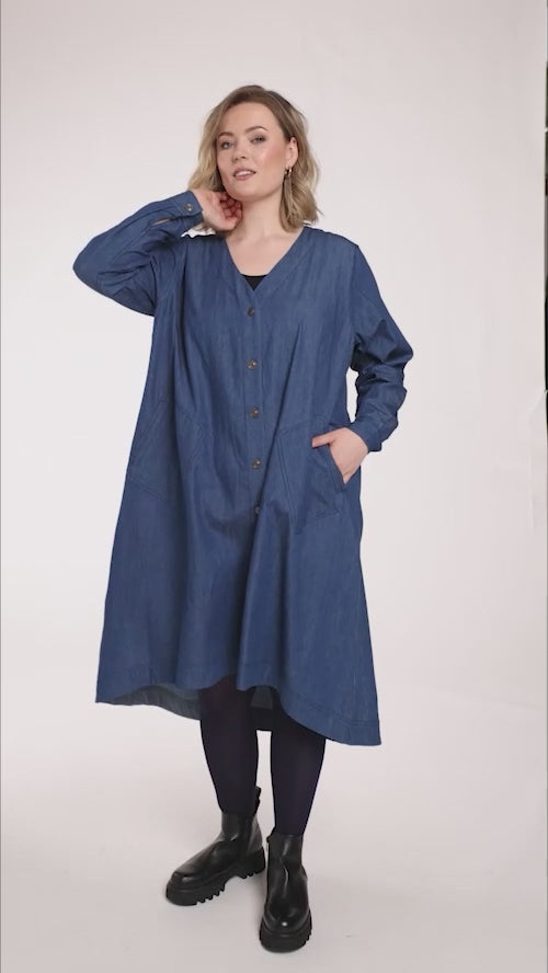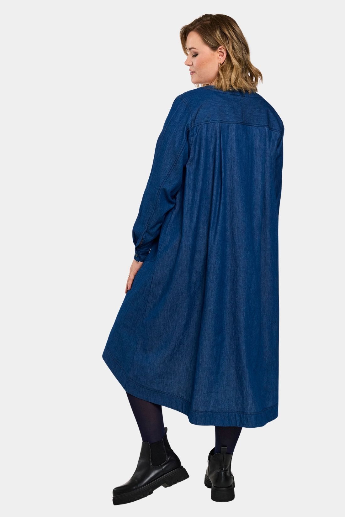 En let og rummelig denimkjole fra Gozzip, designet i ren bomuld med en afslappet A-formet silhuet, der giver masser af bevægelse og et ubesværet udtryk. Modellen har en blød V-udskæring, lange ærmer og praktiske sidelommer, som gør kjolen både feminin og funktionel. Den løse pasform gør den perfekt til hverdagsbrug og oplagt til lag-på-lag styling gennem hele sæsonen.