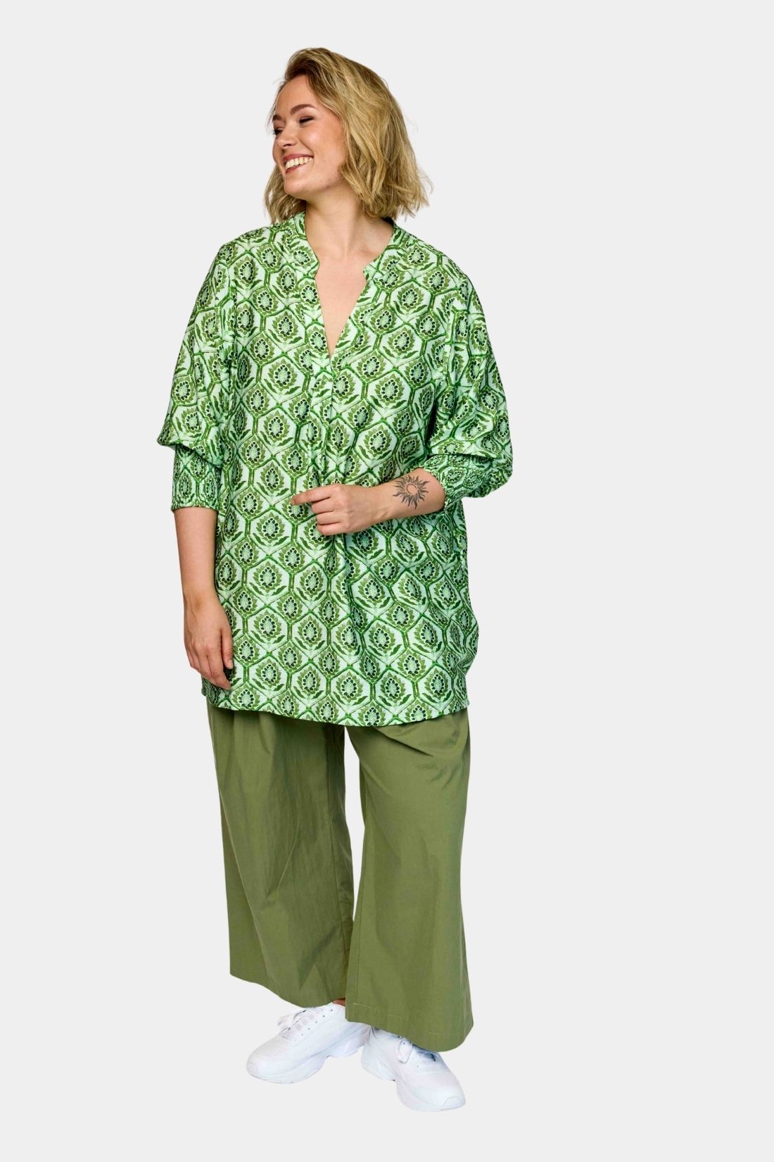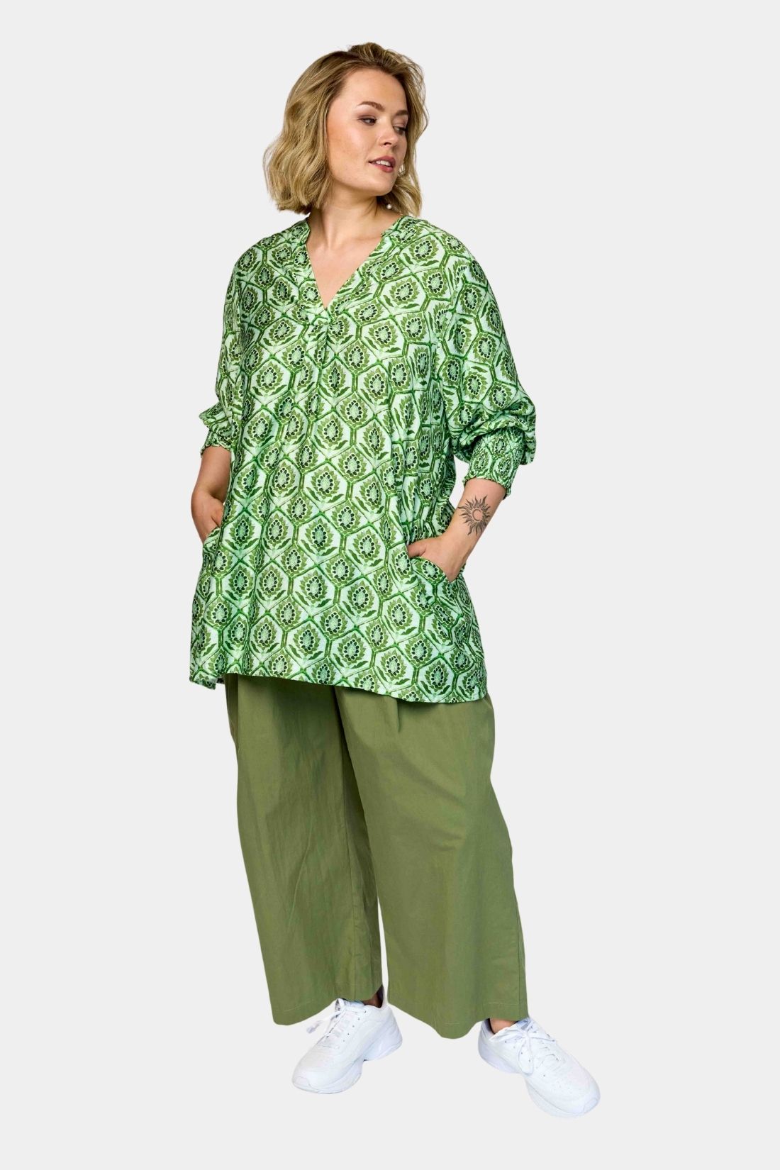 En afslappet og rummelig tunika fra Gozzip med et enkelt og funktionelt udtryk der er nem at bruge i hverdagen. Den lette A form falder naturligt omkring kroppen og giver god bevægelsesfrihed, mens de bløde detaljer skaber et roligt og anvendeligt look. En skøn tunika der fungerer perfekt både alene og sammen med bukser eller leggings.