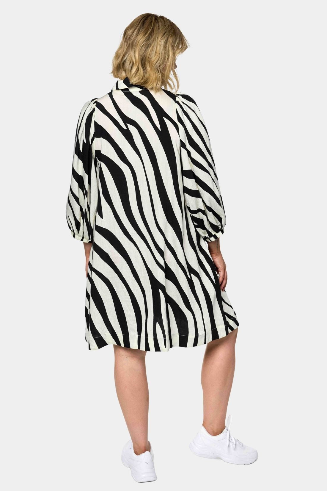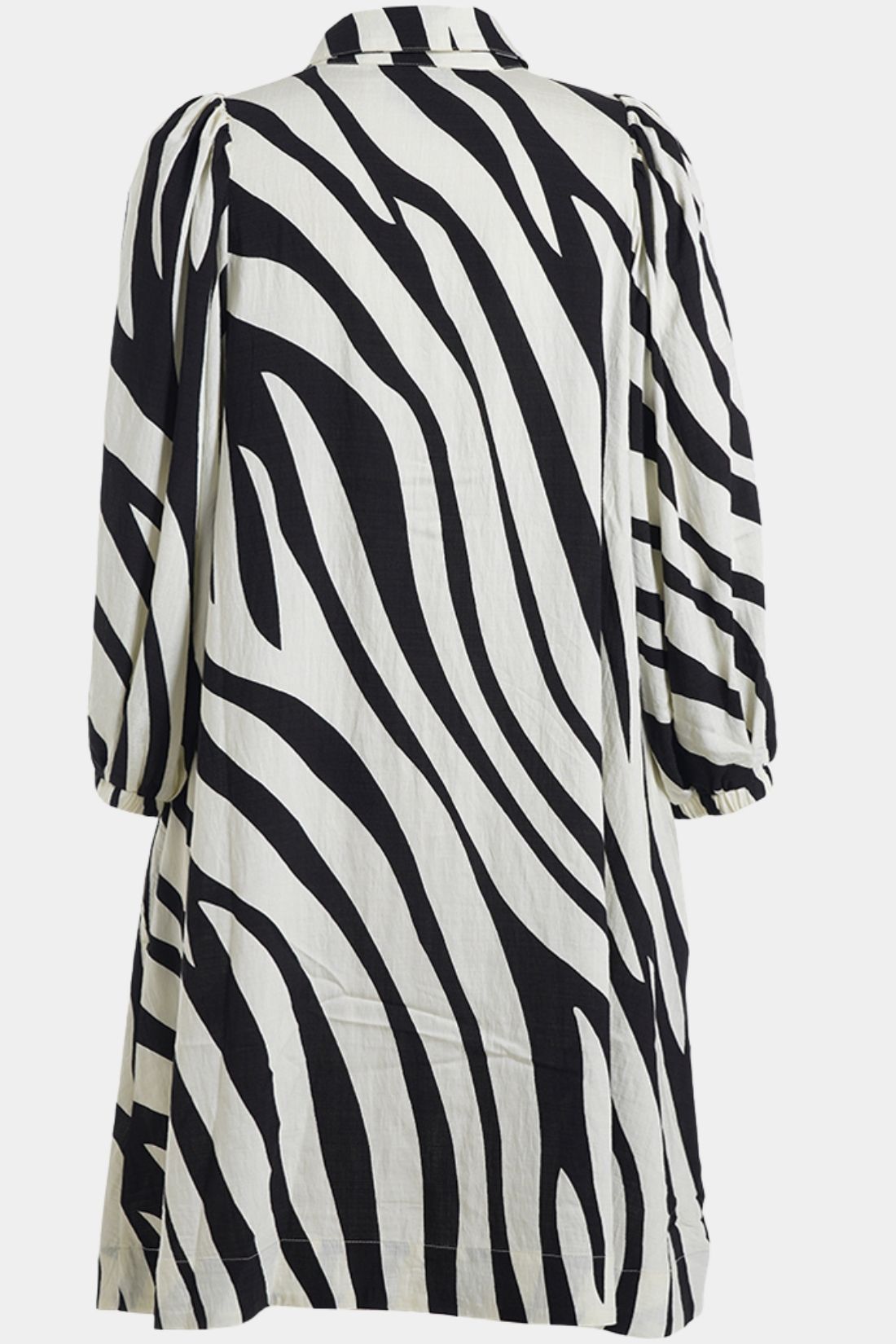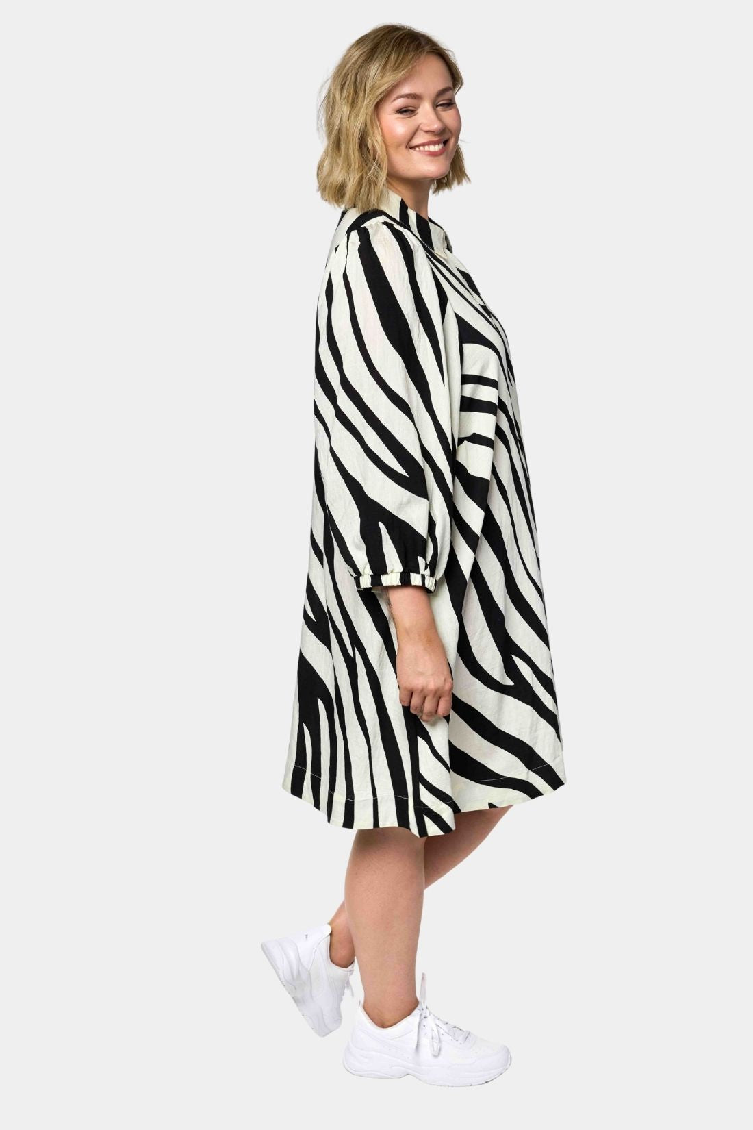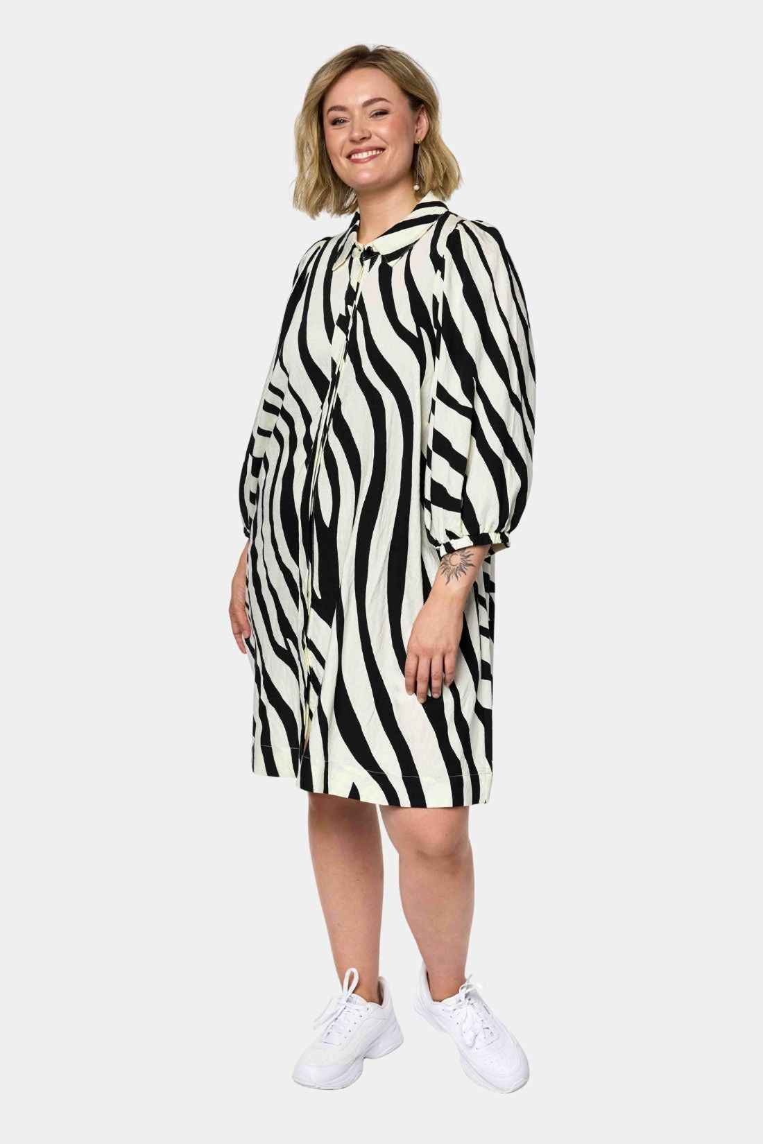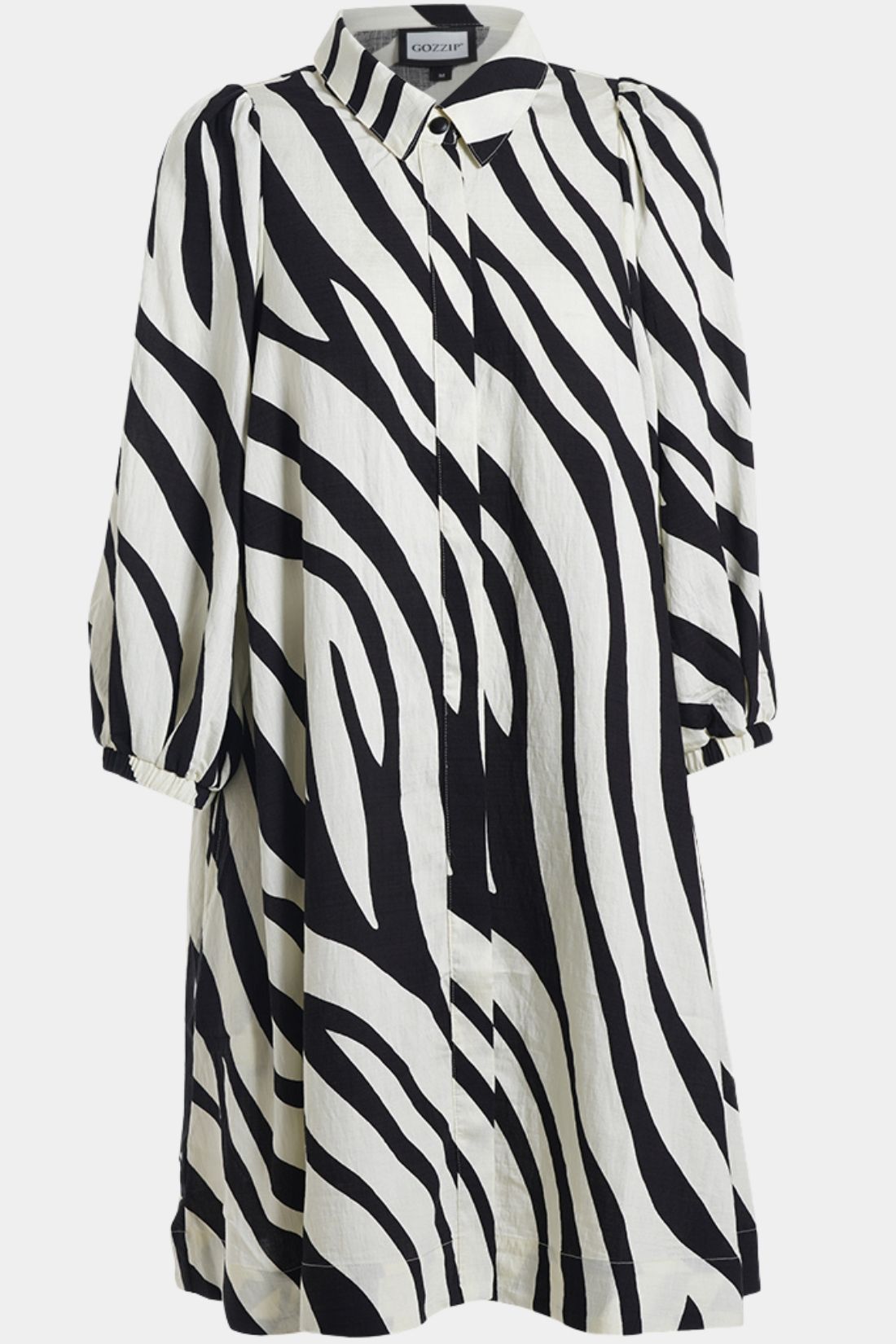En enkel og afslappet kjole fra Gozzip med et flot grafisk print og en løs silhuet, der falder let omkring kroppen. Den giver et roligt og balanceret look med god bevægelsesfrihed og er perfekt til både hverdagen og mere afslappede anledninger. Style den med flade sko eller støvler alt efter sæson.