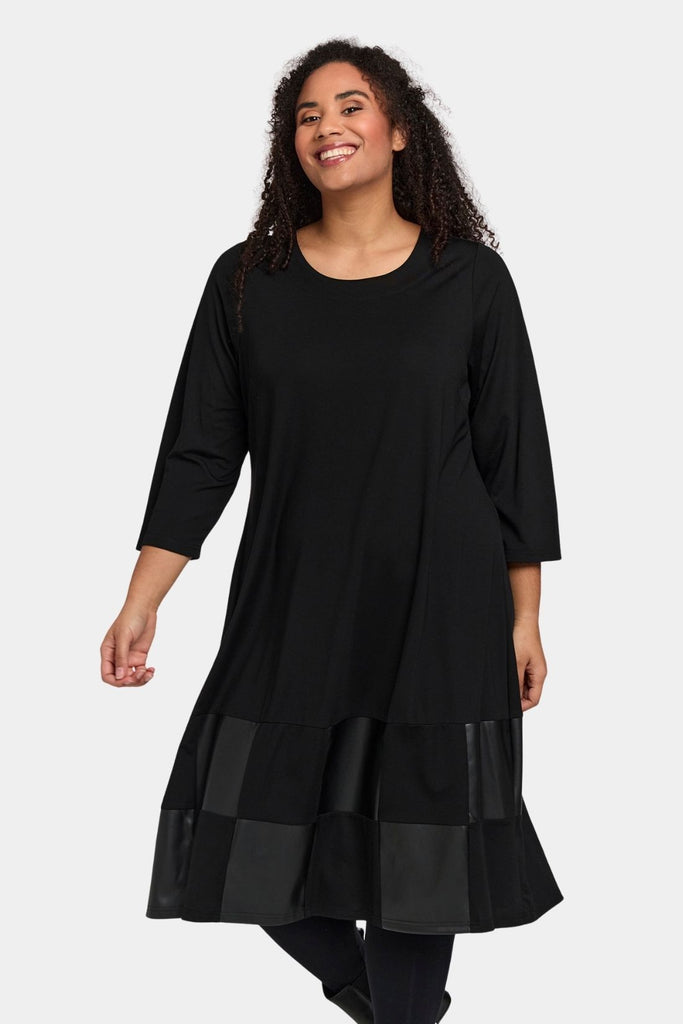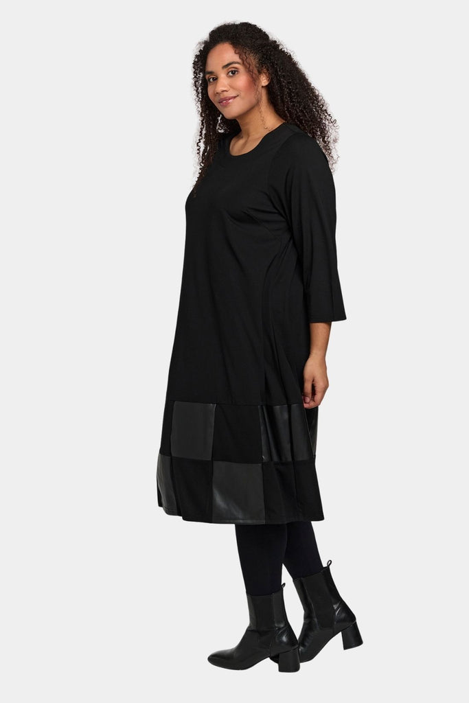 Kjole fra Studio i viskoseblanding med ternet effekt og fakeskind