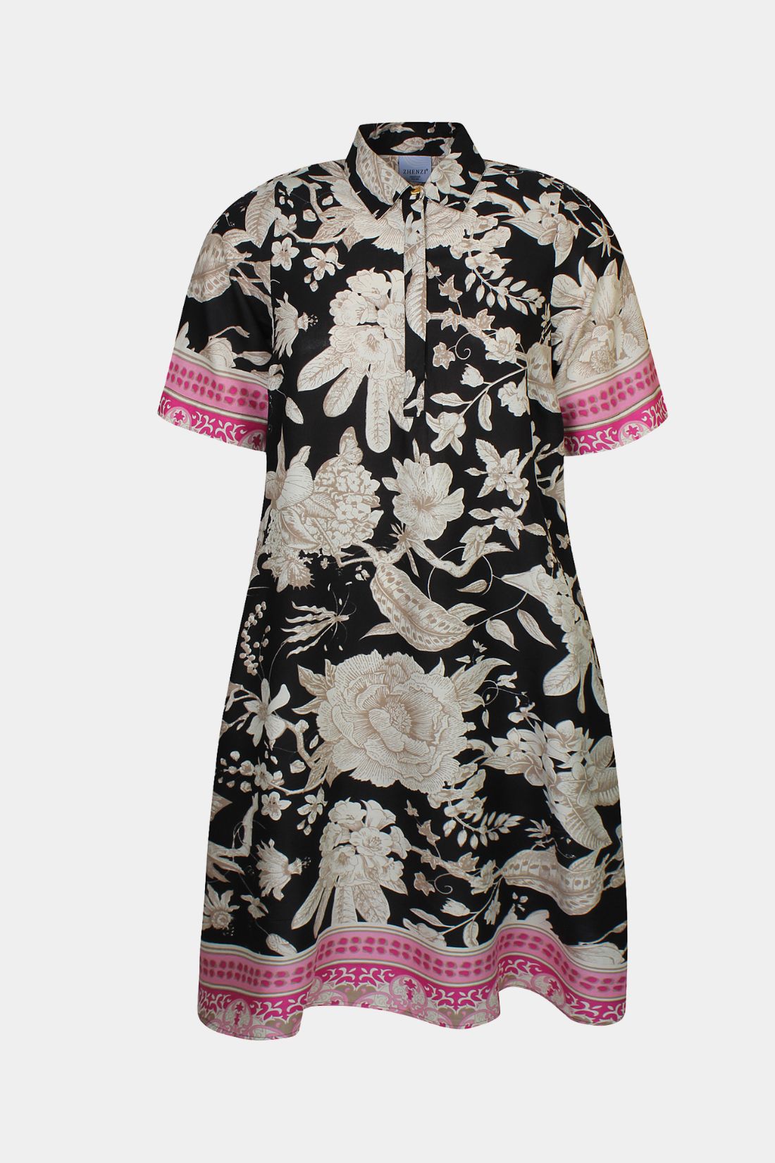 Kjole fra Zhenzi i smuk sort, offwhite og pink print