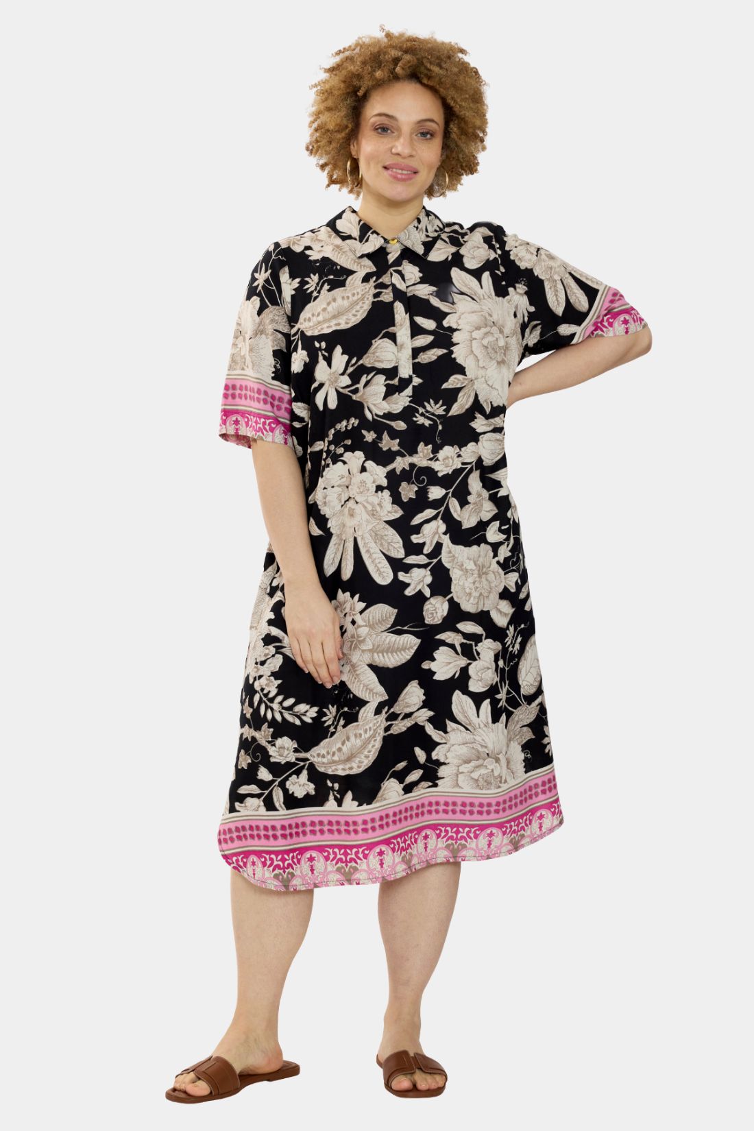 Denne kjole fra Zhenzi er et godt valg til dig, der ønsker en let og behagelig kjole med et tydeligt, men afbalanceret udtryk. Zhenzi er kendt for komfortabelt tøj med fokus på pasform til kurvede kvinder, og denne kjole kombinerer et feminint blomsterprint med en afslappet silhuet, der er nem at bruge i hverdagen såvel som til mere afslappede anledninger.