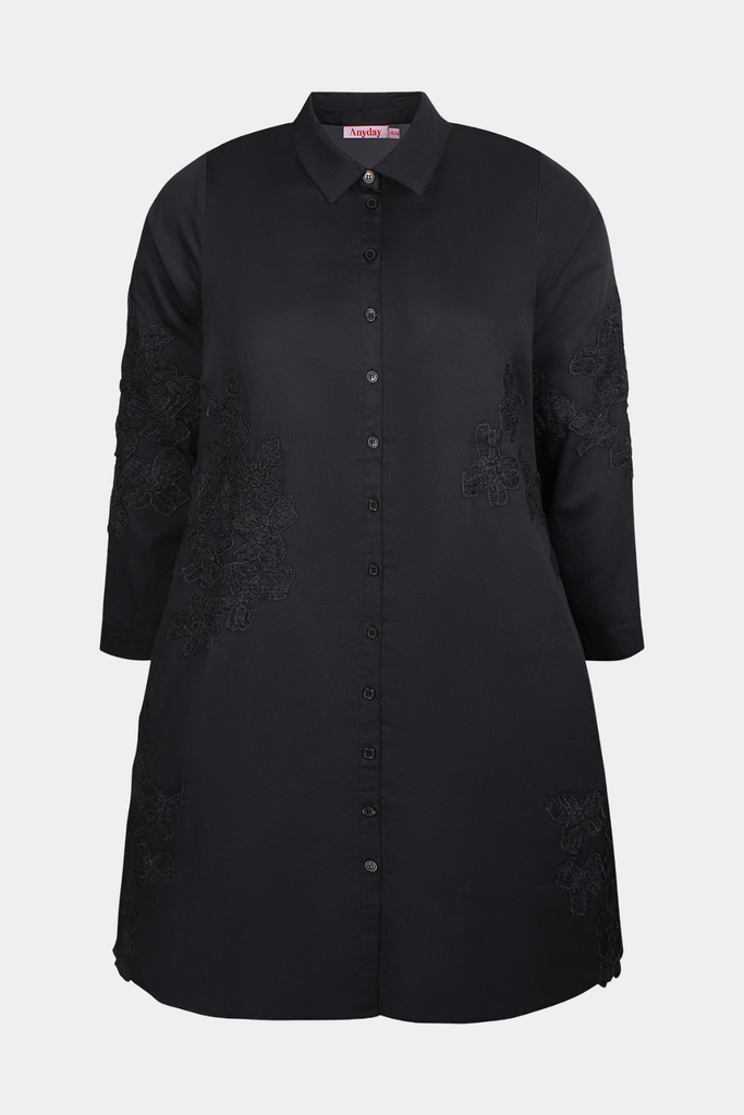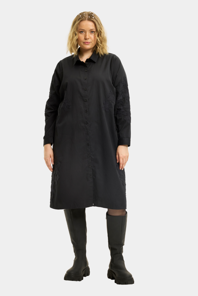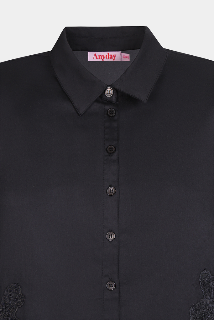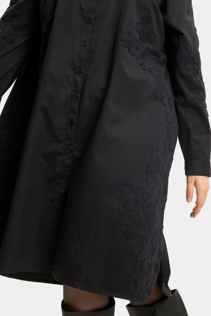 Smuk skjortekjole fra Anyday i sort bomuld med masser af broderi.