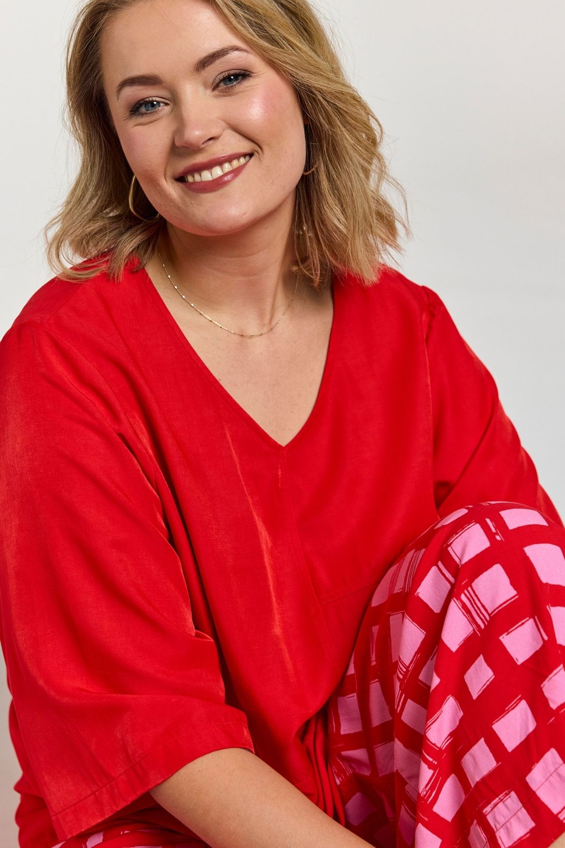 Bluse fra Gozzip i en smuk, enkel og elegant rød nuance, der giver et stilrent og moderne udtryk. Den løse pasform og lette kvalitet gør den behagelig at have på hele dagen.