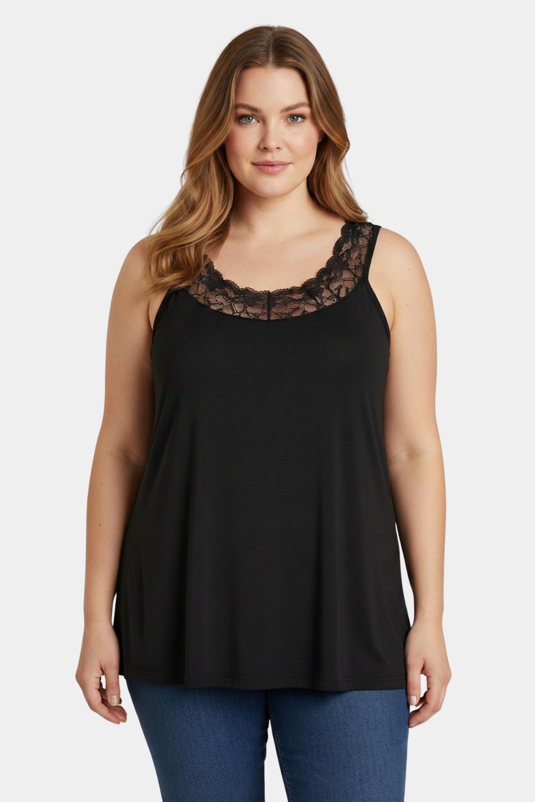 Elegant basis top fra No. 1 by Ox med fine blonder langs kanten og stropperne, som giver et feminint og stilfuldt udtryk. Den enkle top er nem at style og passer perfekt til både hverdag og lag-på-lag looks.