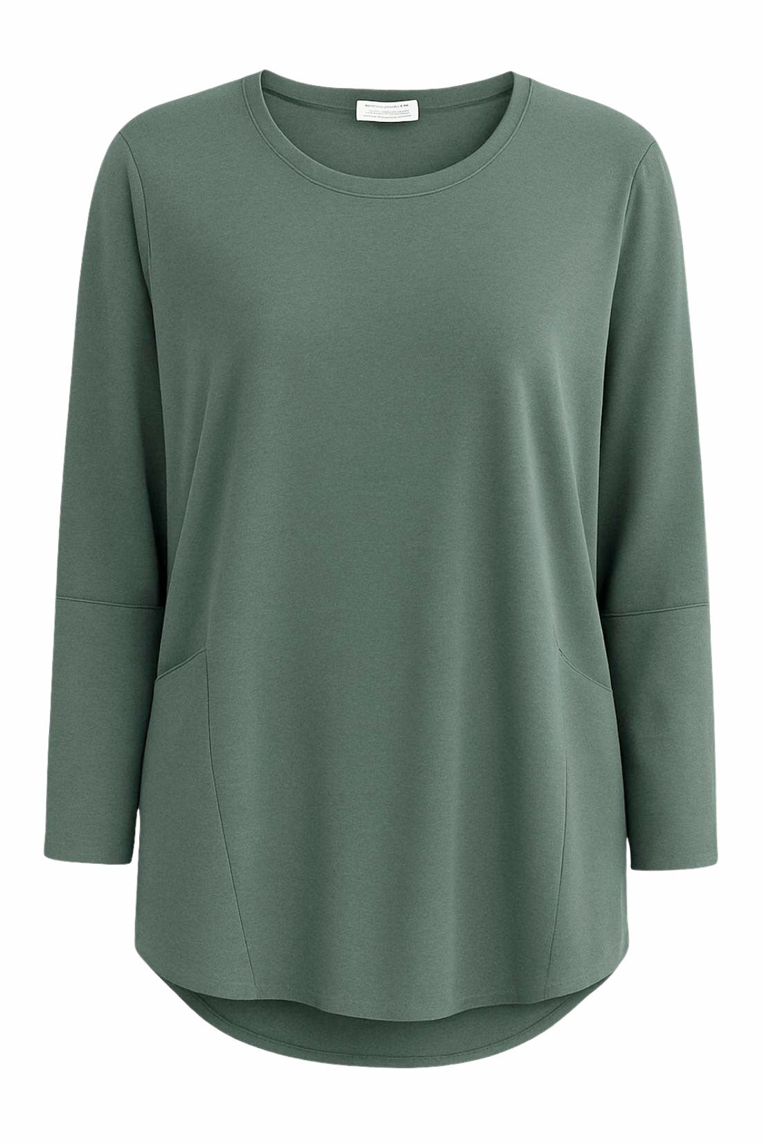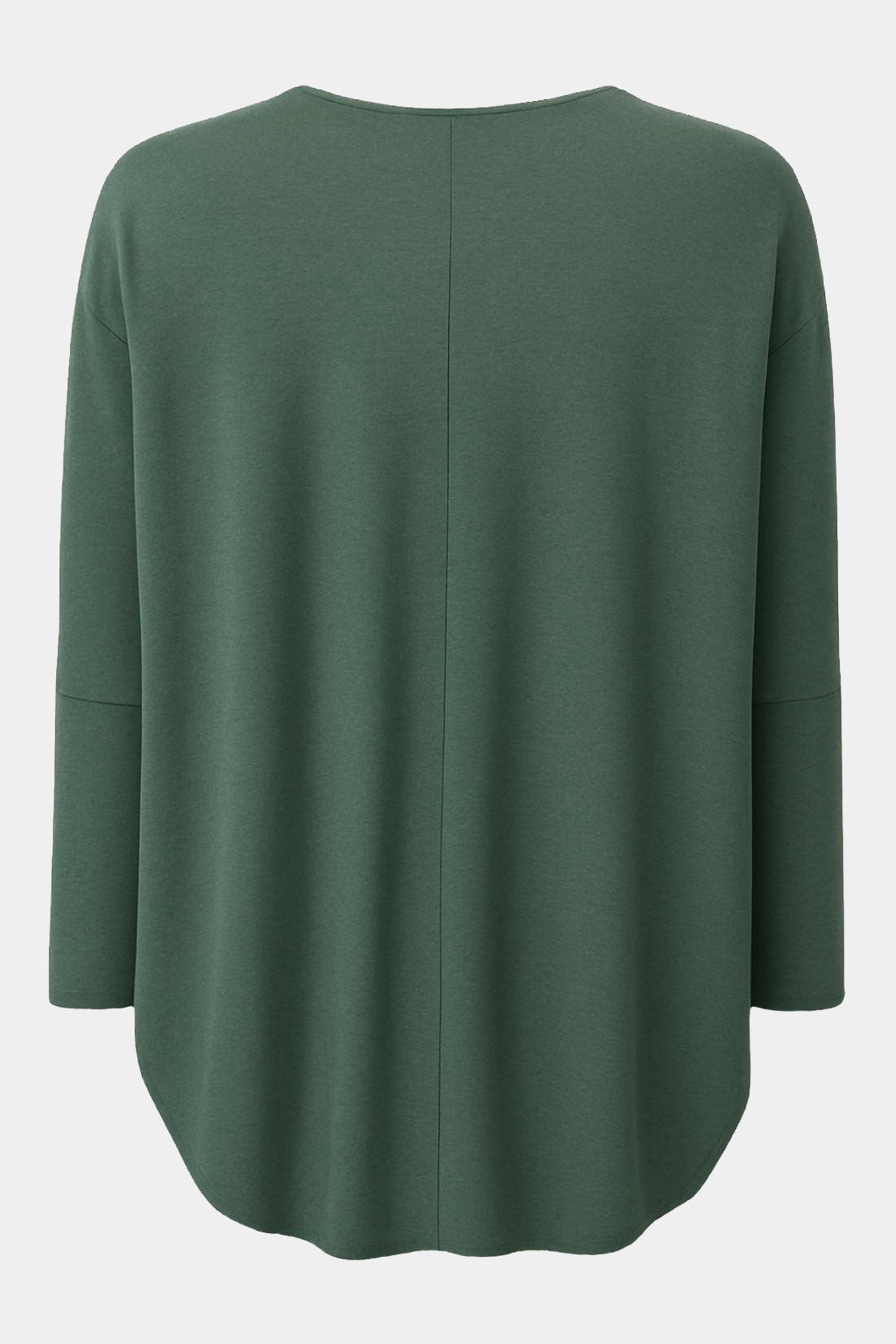 En bluse fra Noen syet i en høj kvalitets viskosejersey i en smuk grøn farve der giver et roligt og elegant udtryk. Den lette oversize facon og det bløde materiale gør blusen utrolig behagelig at have på og nem at style til hverdagen. Perfekt både til bukser og nederdele når komfort og stil skal gå hånd i hånd.
