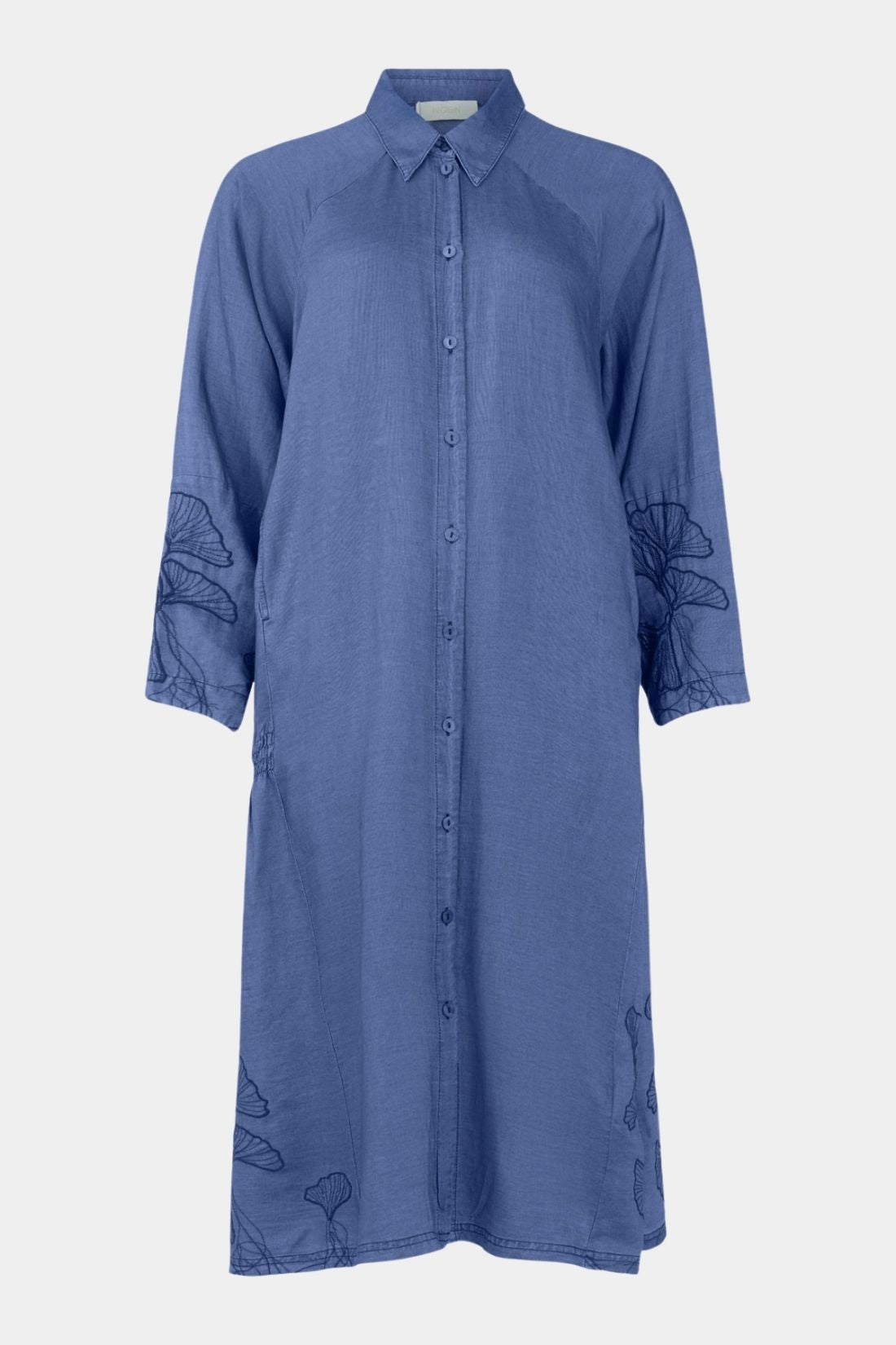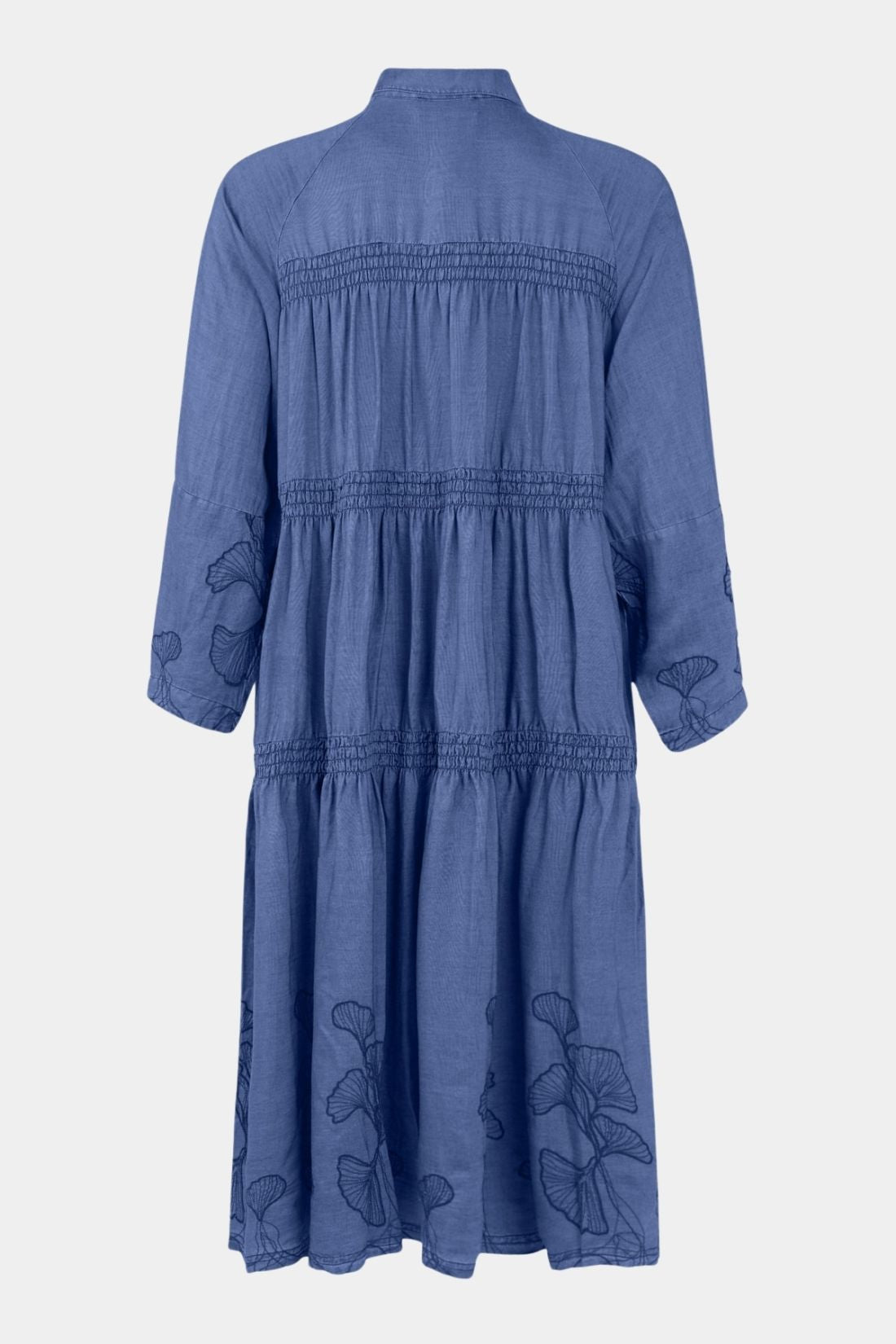 Fantastisk smuk kjole fra Noen syet i det fineste og lette blå tencel som falder blødt og elegant omkring kroppen. Den meget rummelige A facon og de fine broderier giver kjolen et feminint og eksklusivt udtryk som er perfekt til både hverdag og særlige anledninger. En kjole der virkelig skiller sig ud og føles let og behagelig at have på.