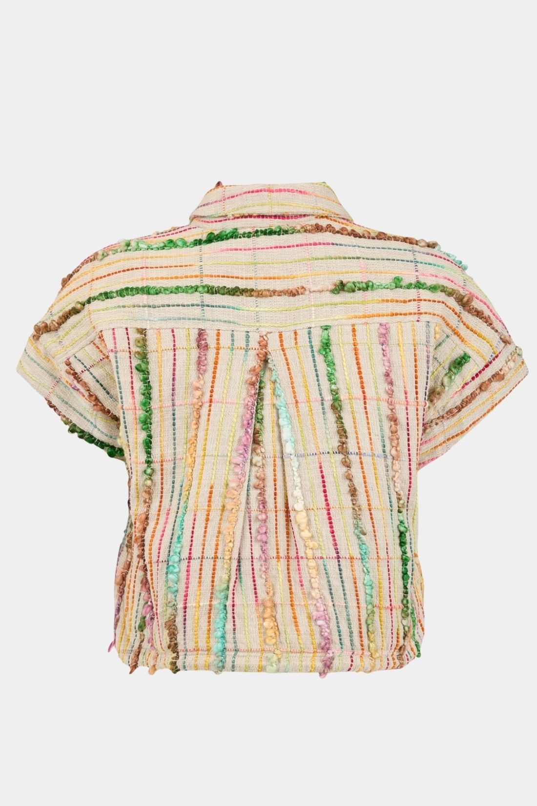 Smuk kort vest fra Noen syet i det fineste bomuldsstof med farvet broderi der giver et unikt og iøjnefaldende udtryk. Den lette ballon facon skaber en flot silhuet som er nem at style både over kjoler og sammen med bukser. En vest der giver personlighed og kant til dit outfit.