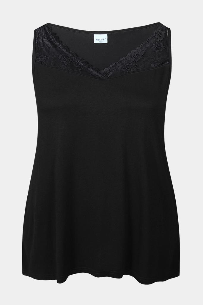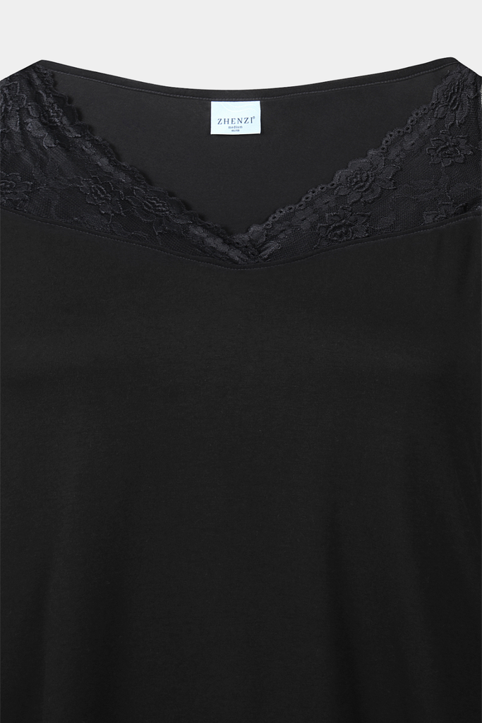 Skøn basis bluse fra Zhenzi syet i det skønneste viskosejersey med sort blonde i halsen.
