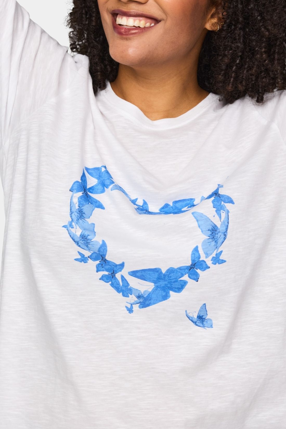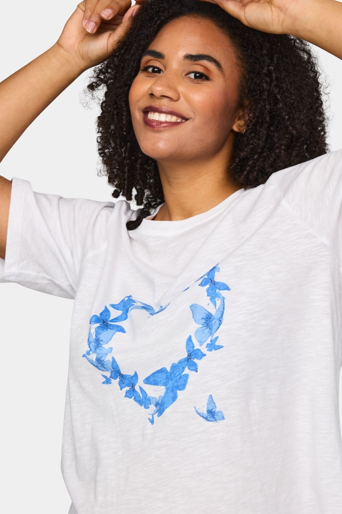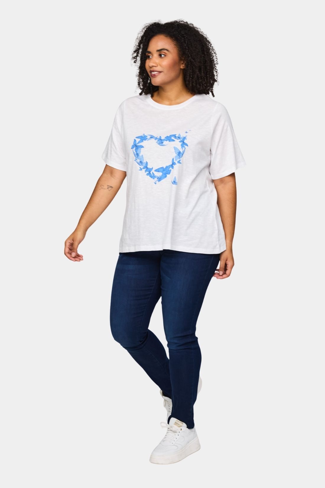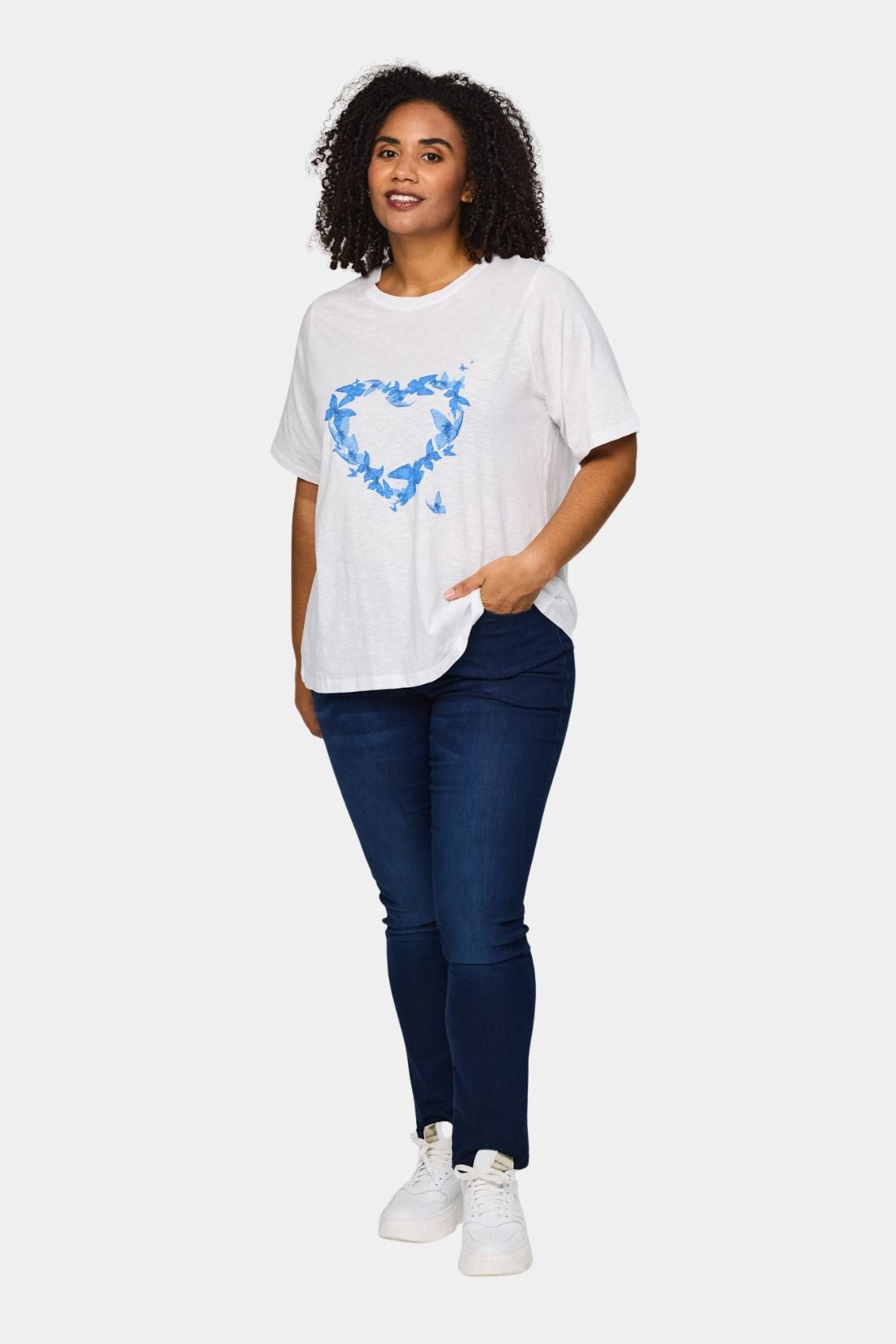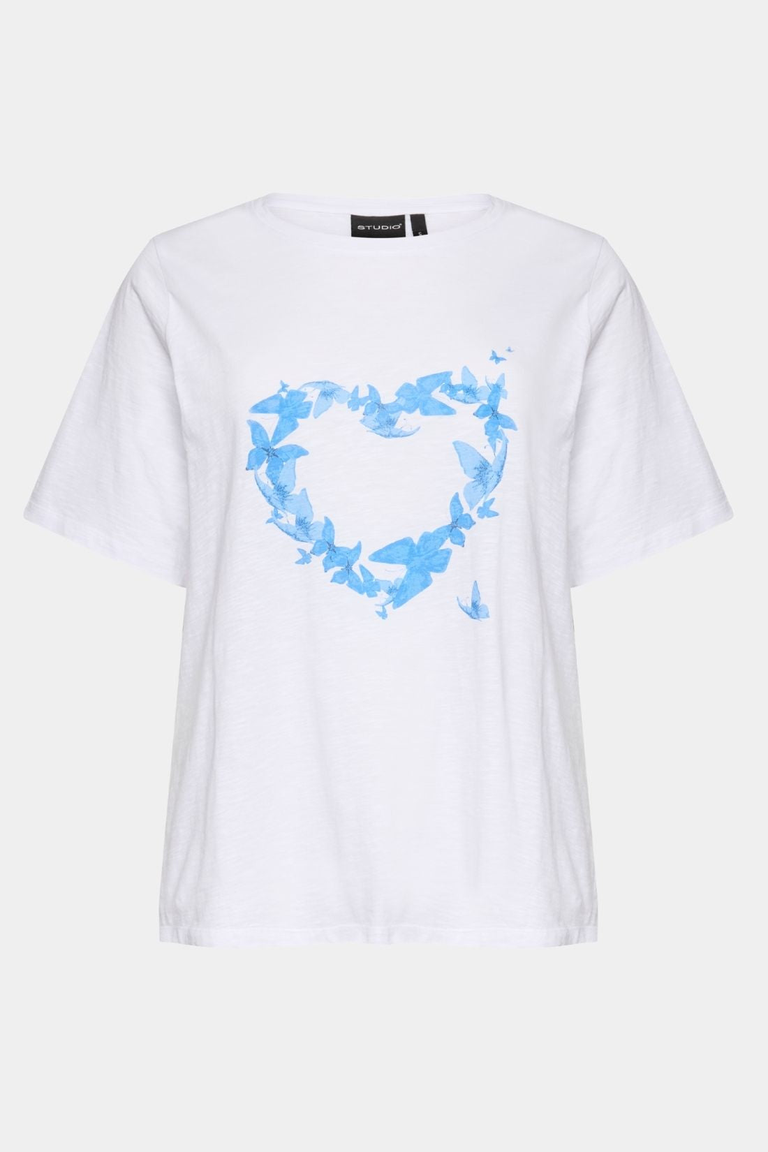Bella bomulds t-shirt fra Studio i hvid med blå hjerte