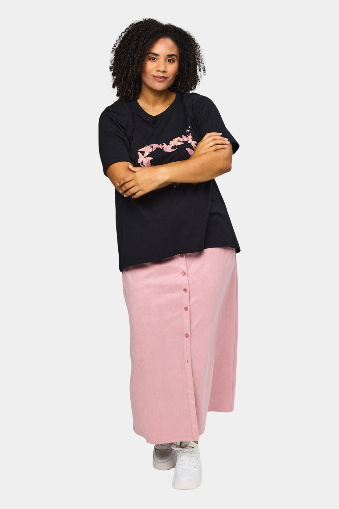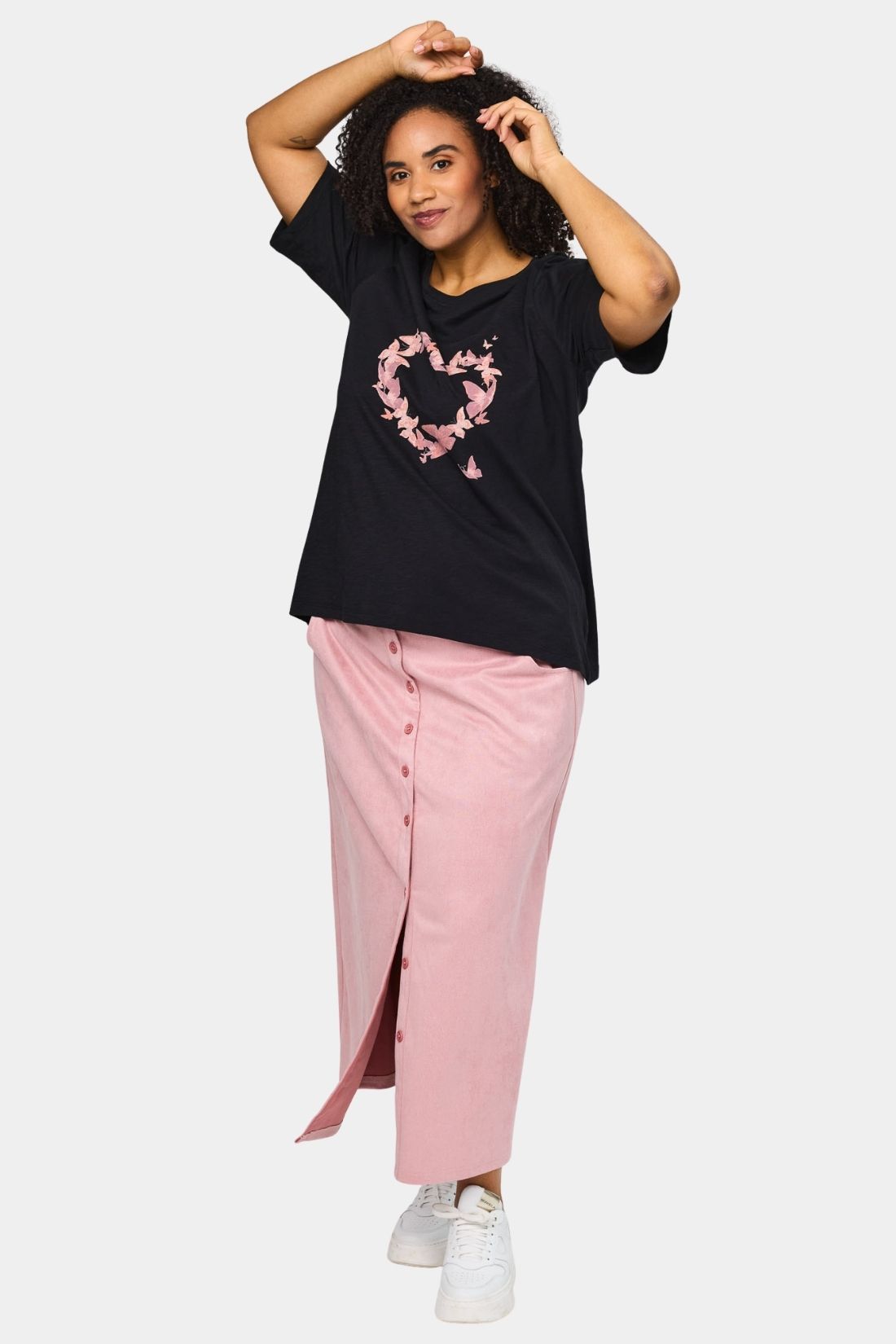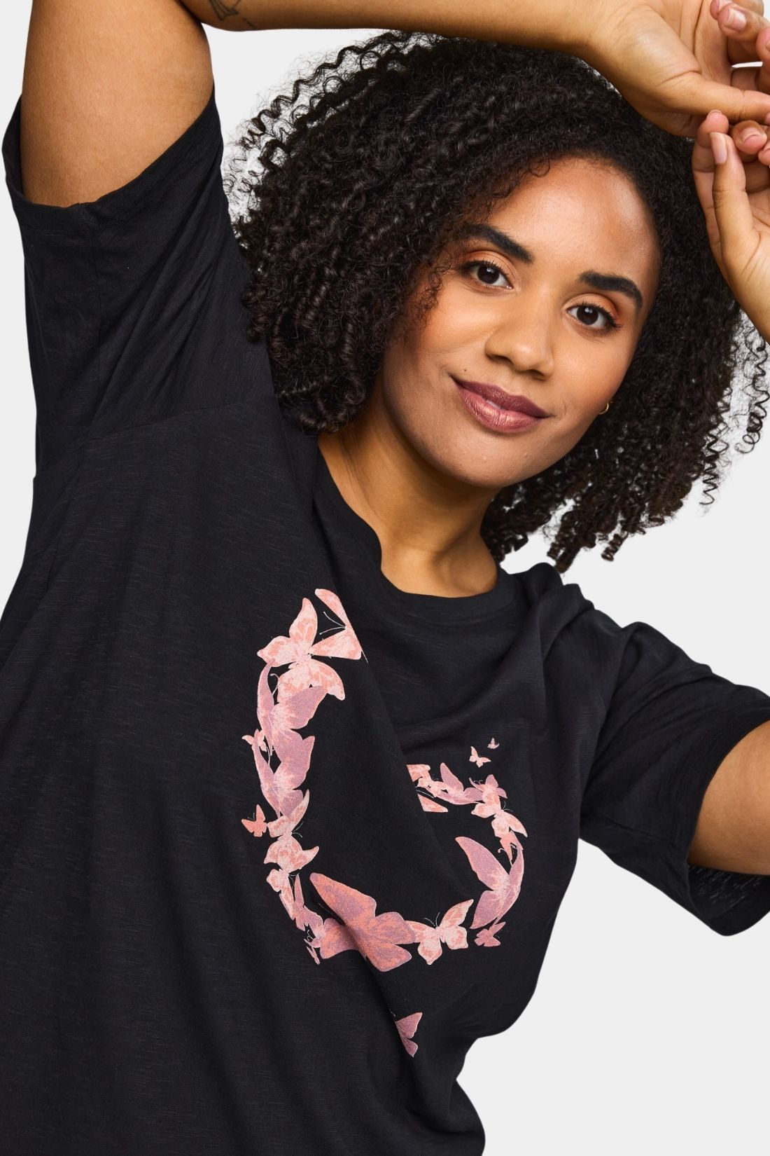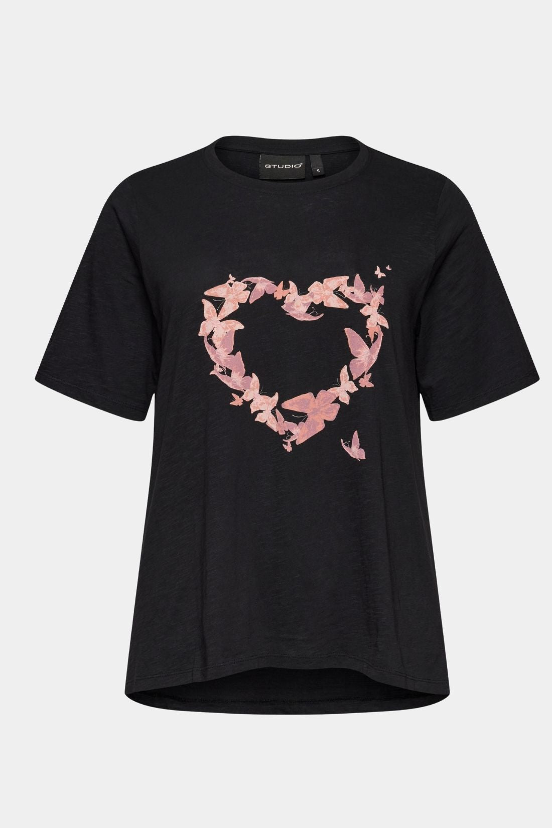 Bella bomulds t-shirt fra Studio i sort med rosa sommerfugle