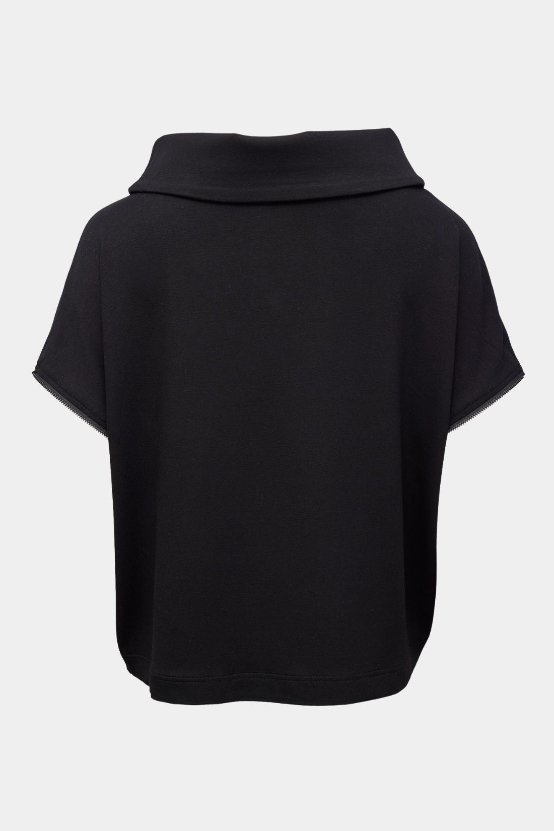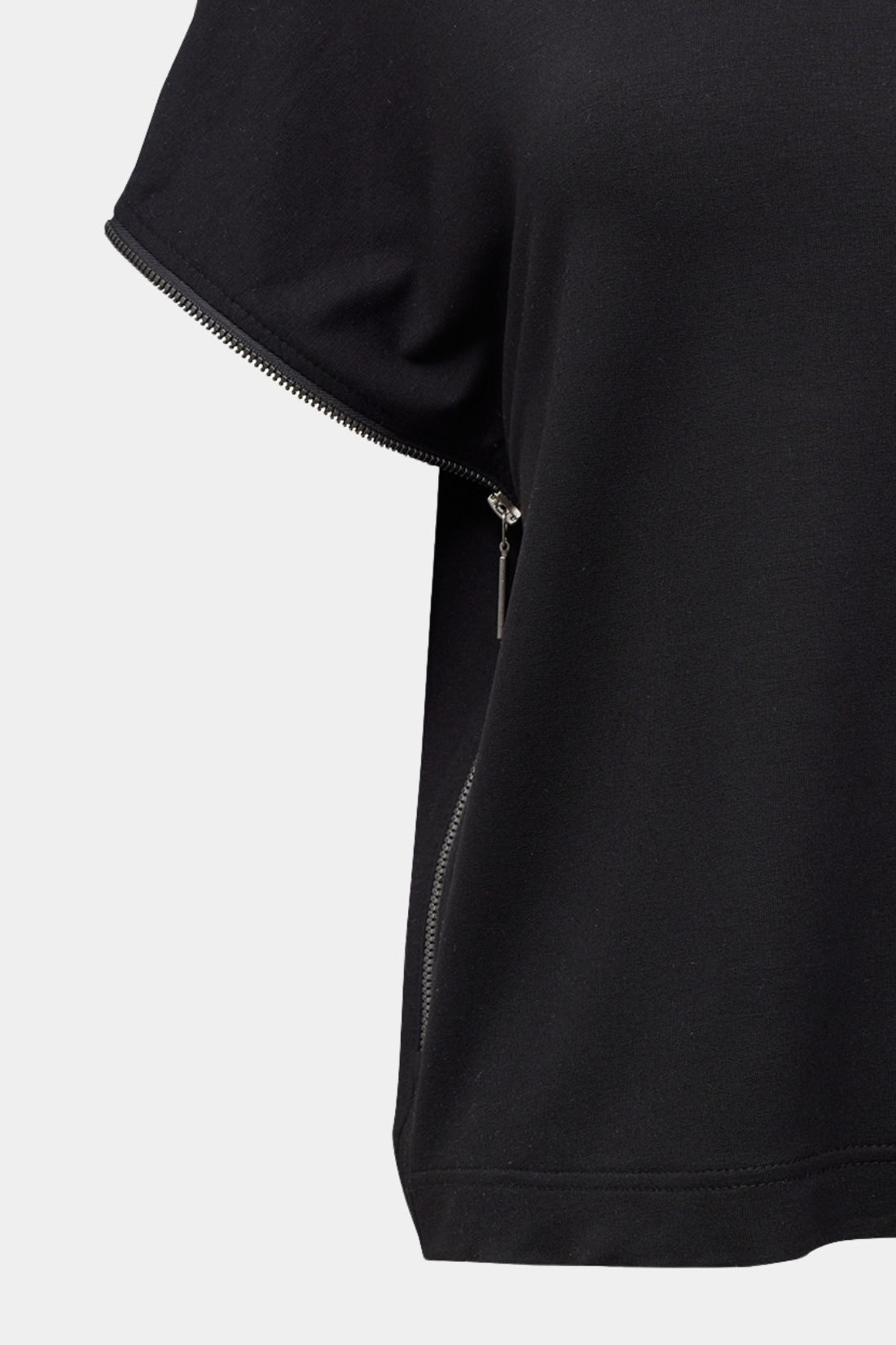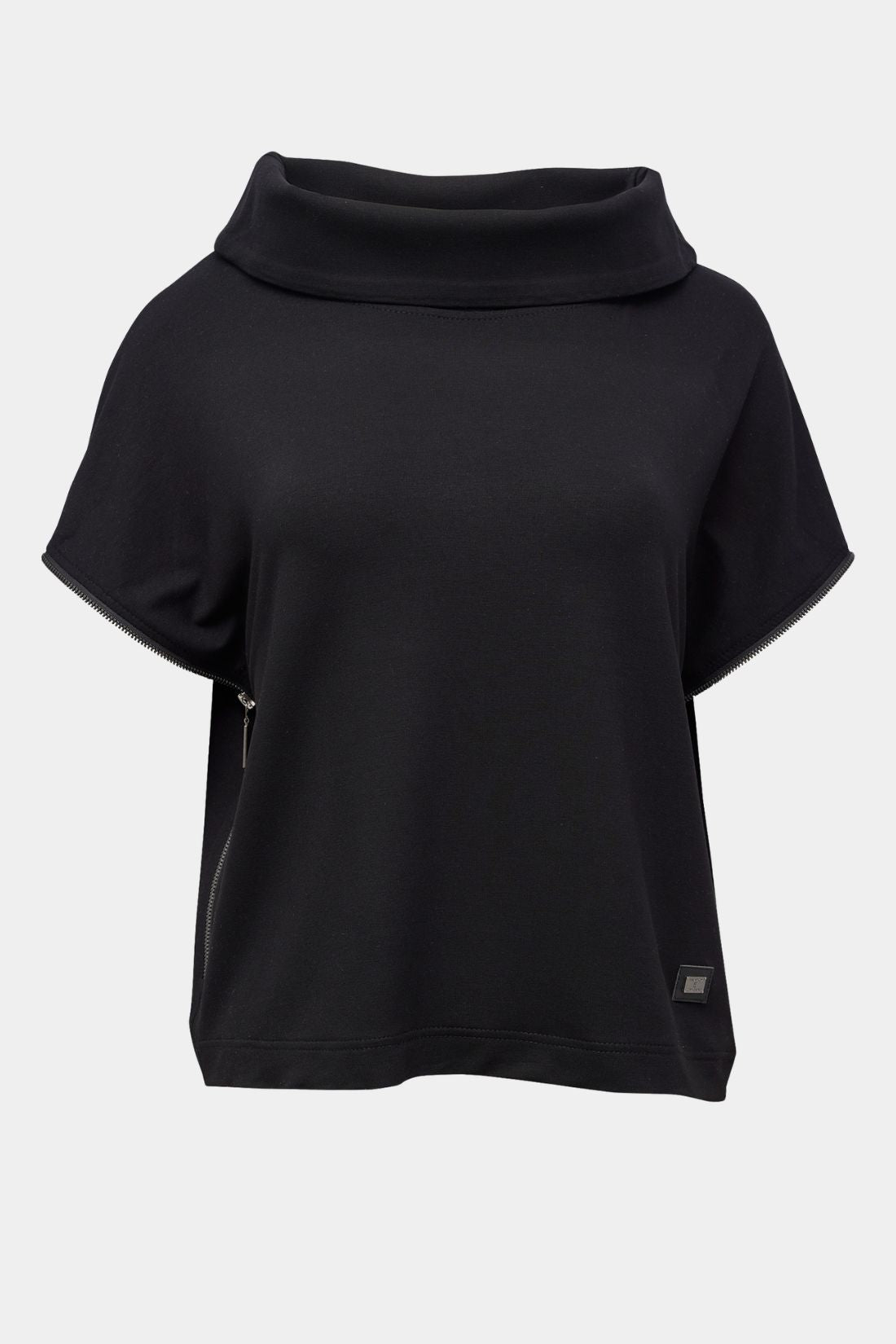 Bluse fra E Avantgarde i en kraftig og behagelig jersey, der giver et moderne og stilrent udtryk. Designet kombinerer komfort med spændende detaljer, som den brede krave og lynlåse i siderne, der giver både funktionalitet og et råt, moderne look.