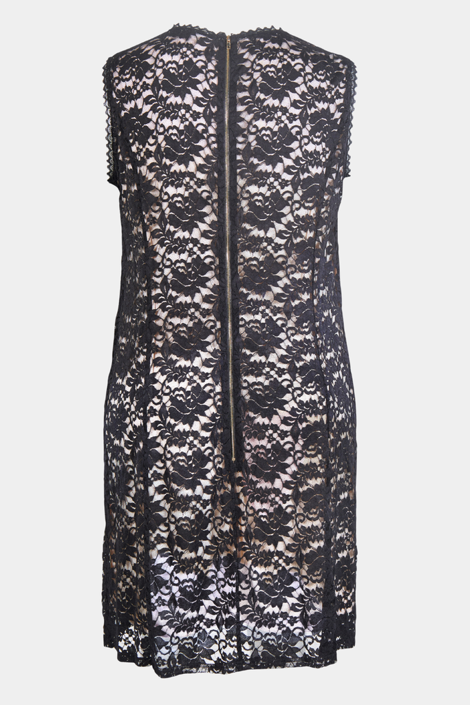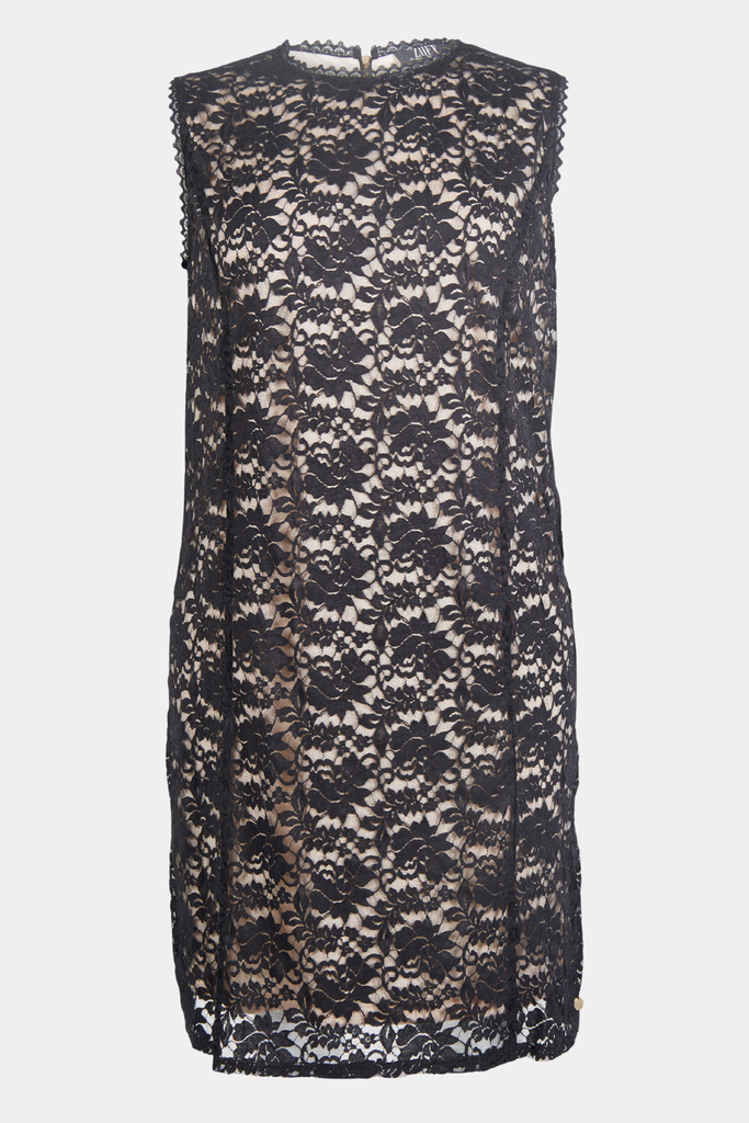 CLARA kjole fra Zoey er syet i en smuk sort blonde med en påsyet underkjole i beige.
