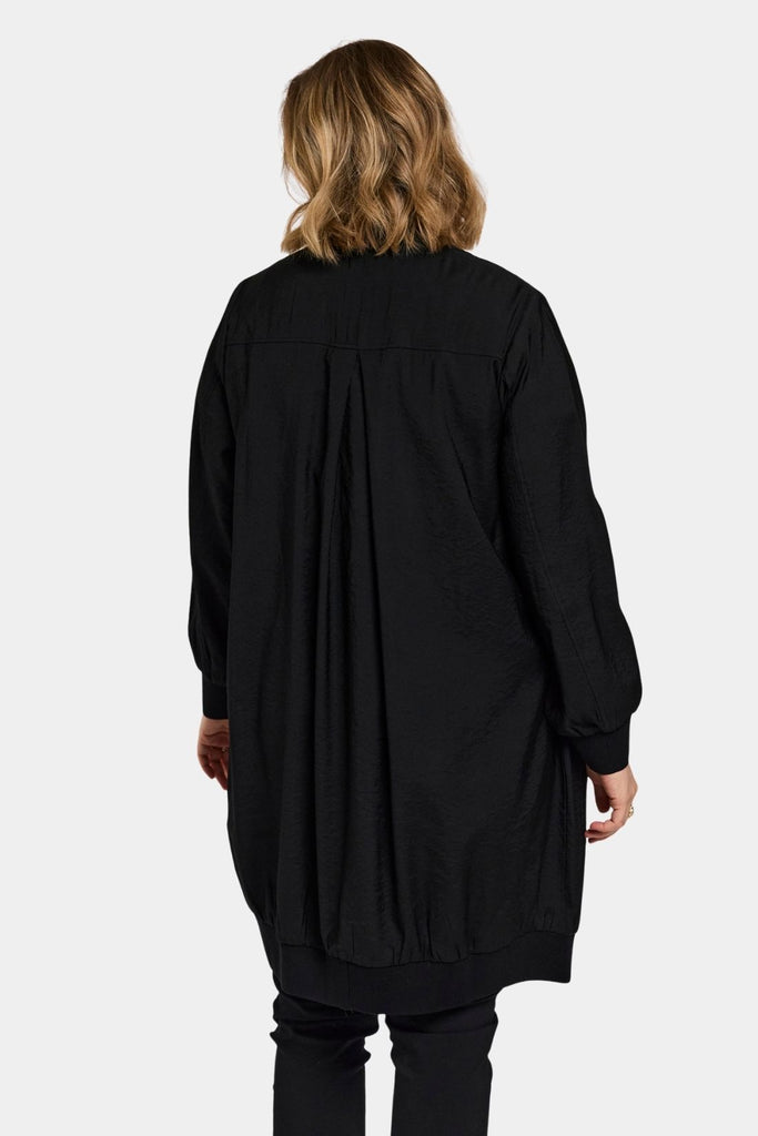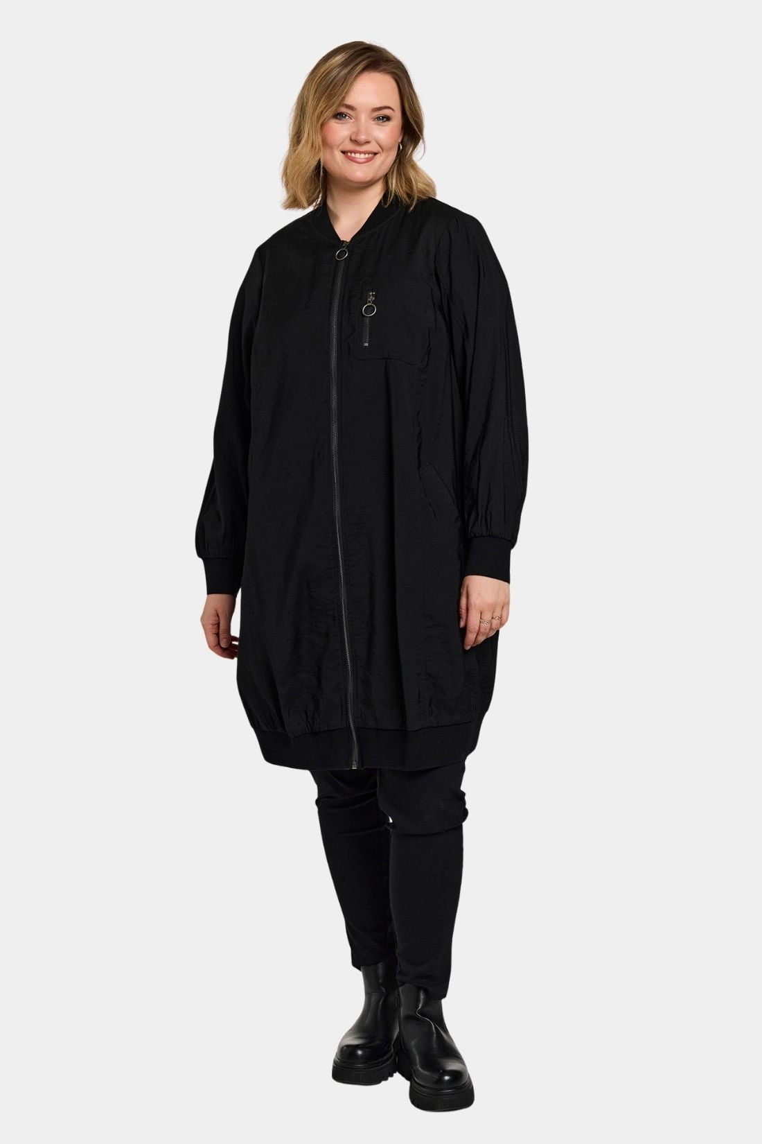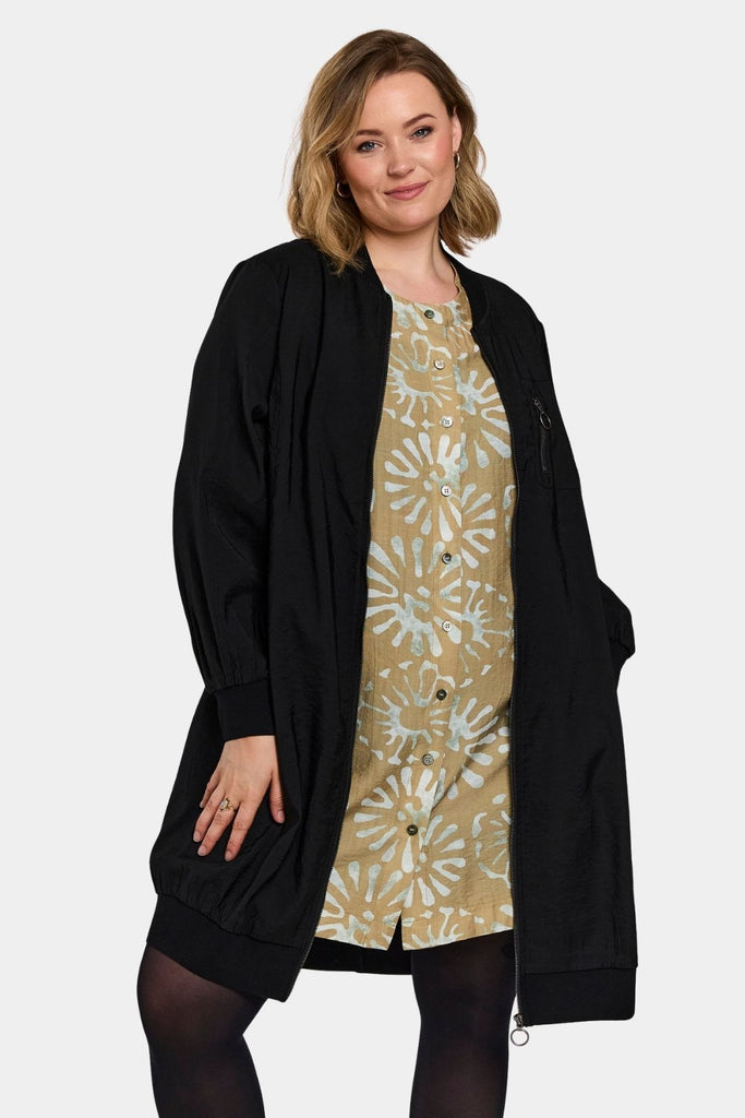En fed og moderne cardigan fra Gozzip, strikket i en fast bomulds-/polyamidblanding med et stilrent, grafisk udtryk. Modellen har en åben front med lynlåslukning og en rummelig, let boxy pasform, som gør den perfekt til lag-på-lag over toppe, tunikaer og kjoler. De brede, sorte kanter og ribdetaljer fremhæver silhuetten og giver et markant, moderne look.