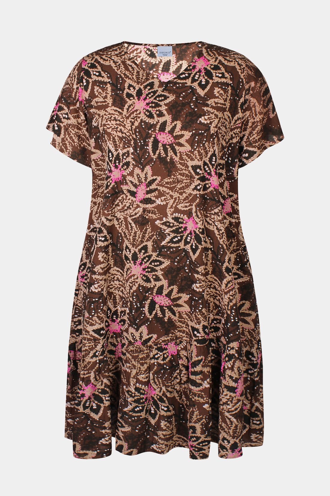 Elysa kjole fra Zhenzi i brun med pink