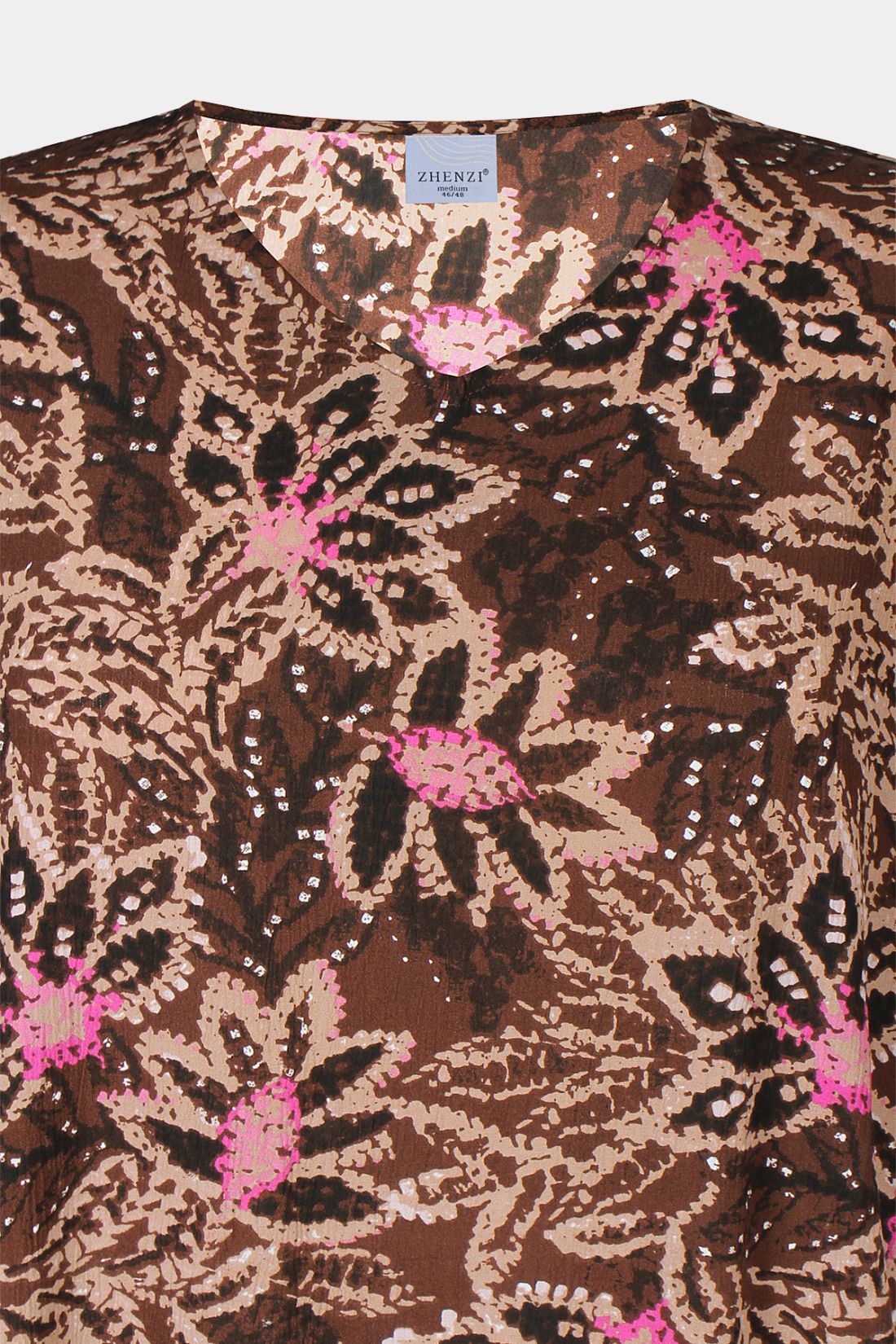 Kjole fra Zhenzi i en let og behagelig kvalitet af crepe viskose, der falder smukt og giver en flot silhuet. Det dekorative mønster i varme nuancer kombineret med små farvede detaljer giver kjolen et elegant og feminint udtryk.
