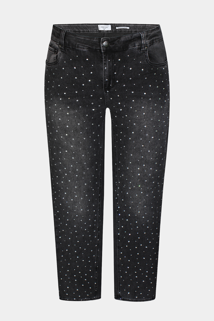 Jeans fra Zhenzi i udvasket sort med små nitter