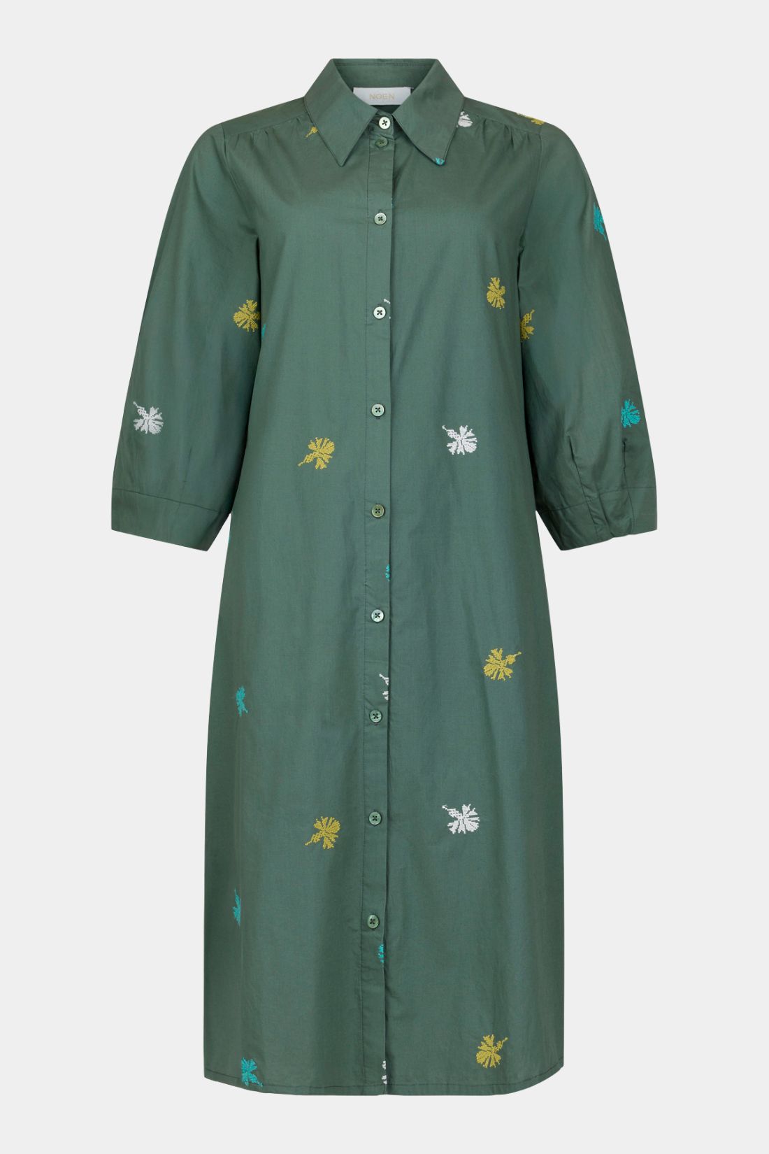 Kjole fra Noen i grøn bomuld med broderi