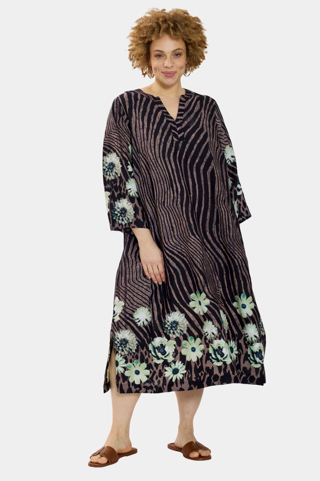 Kjole fra Zhenzi i smuk brun og grøn