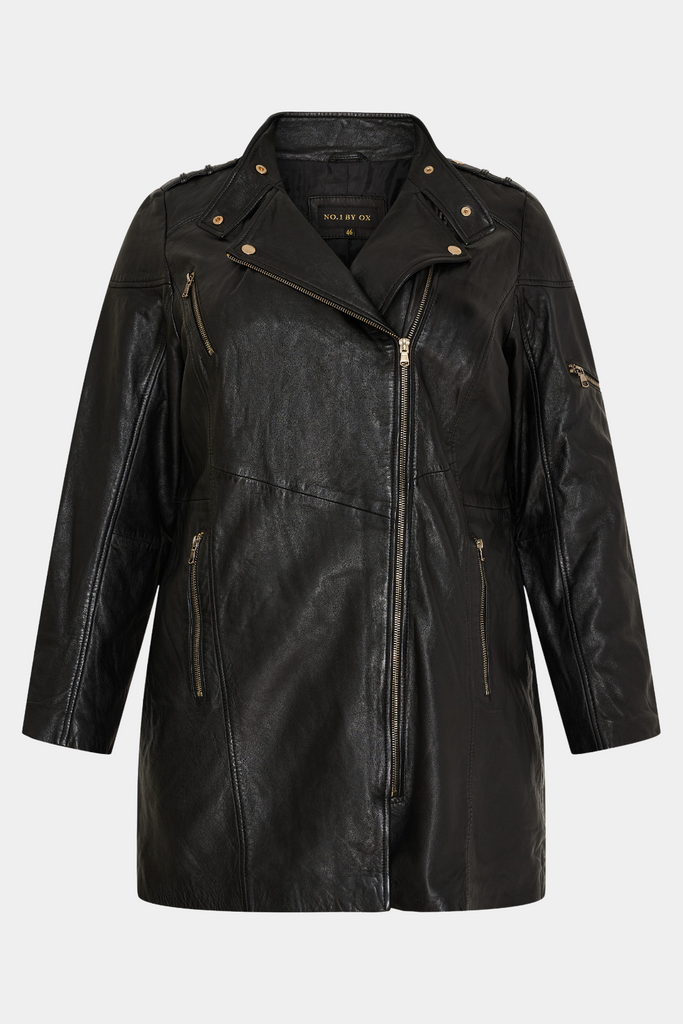 Lang bikerjakke fra No. 1 by Ox i en blød kvalitet af 100% lammeskind.