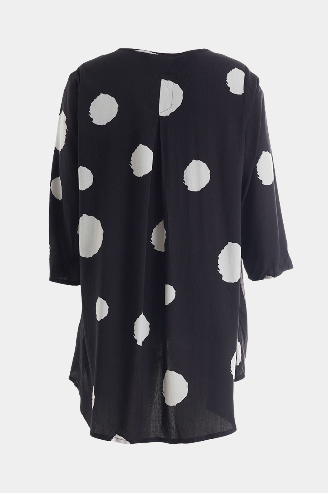 Blusen har rund hals og trekvartlange ærmer, der skaber et enkelt og anvendeligt udtryk. Den let længere bagdel og de bløde linjer i silhuetten giver et flot fald og gør modellen velegnet både til bukser og leggings.
