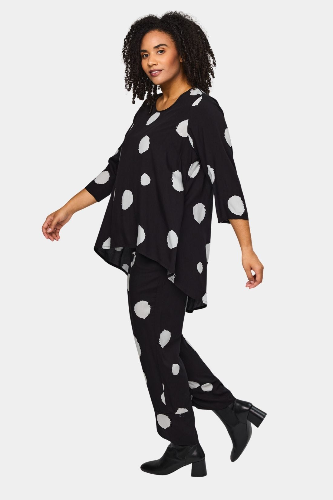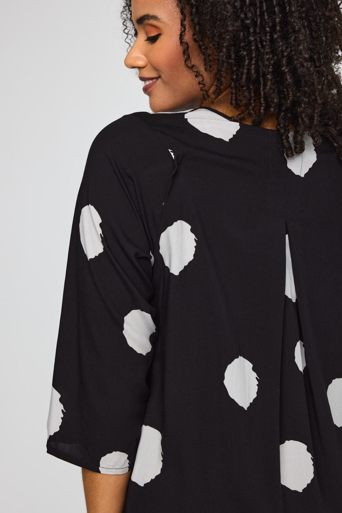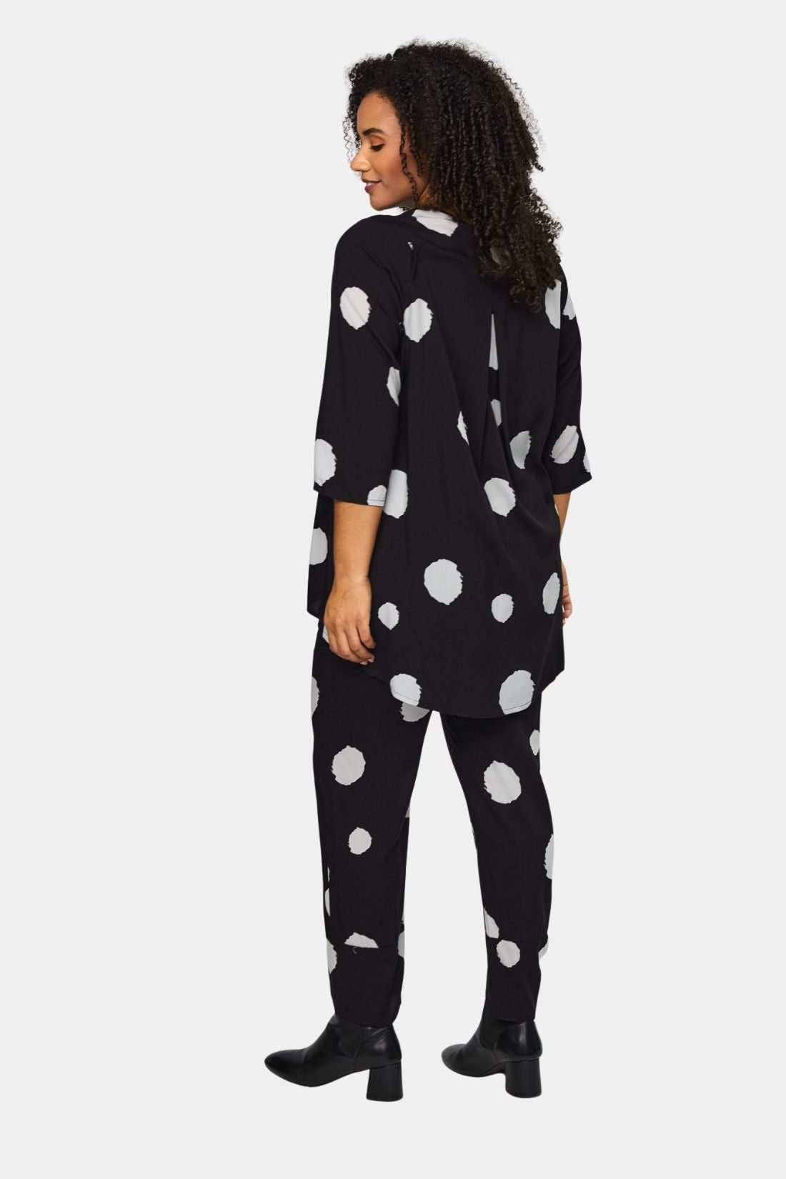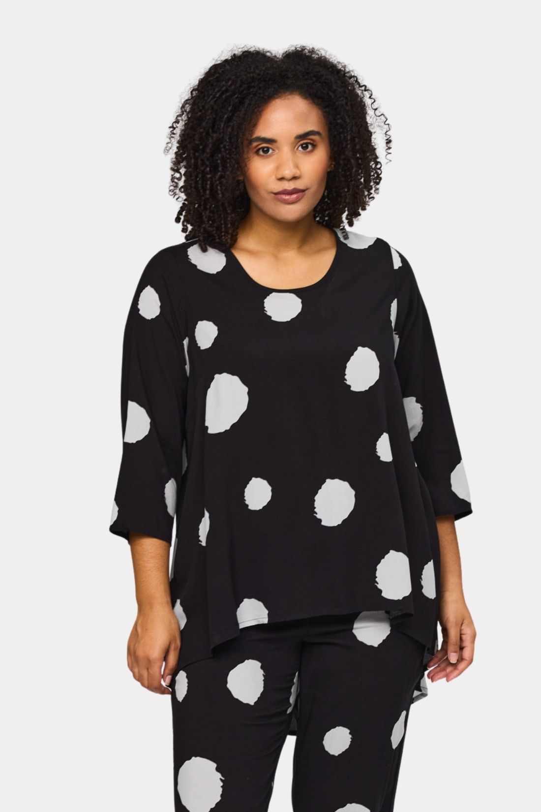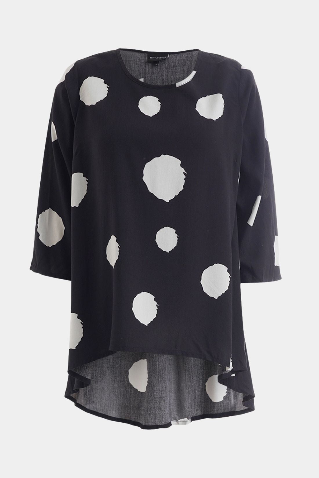 Let og feminin bluse fra Studio i 100% viskose med et flot og grafisk prikket mønster. Den bløde kvalitet falder let og luftigt om kroppen og giver en behagelig komfort hele dagen.