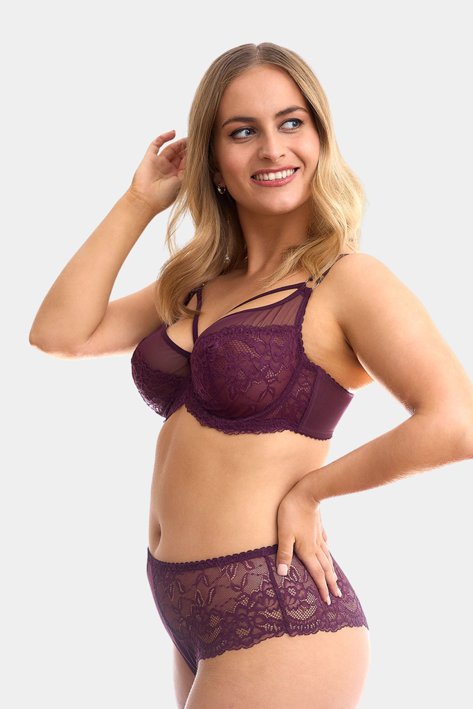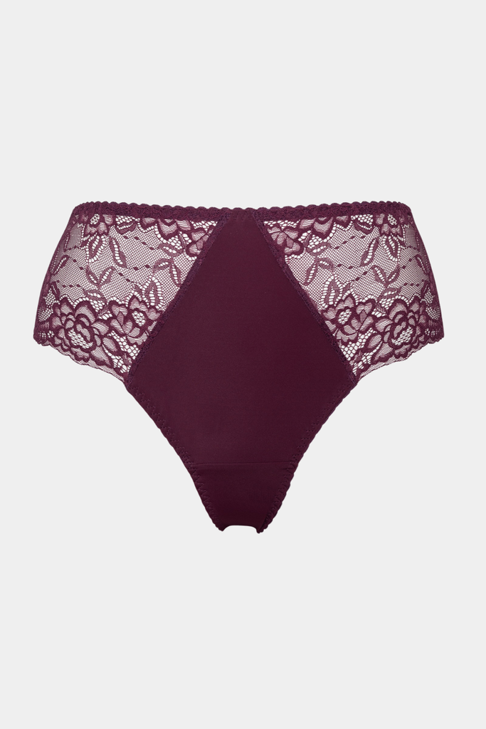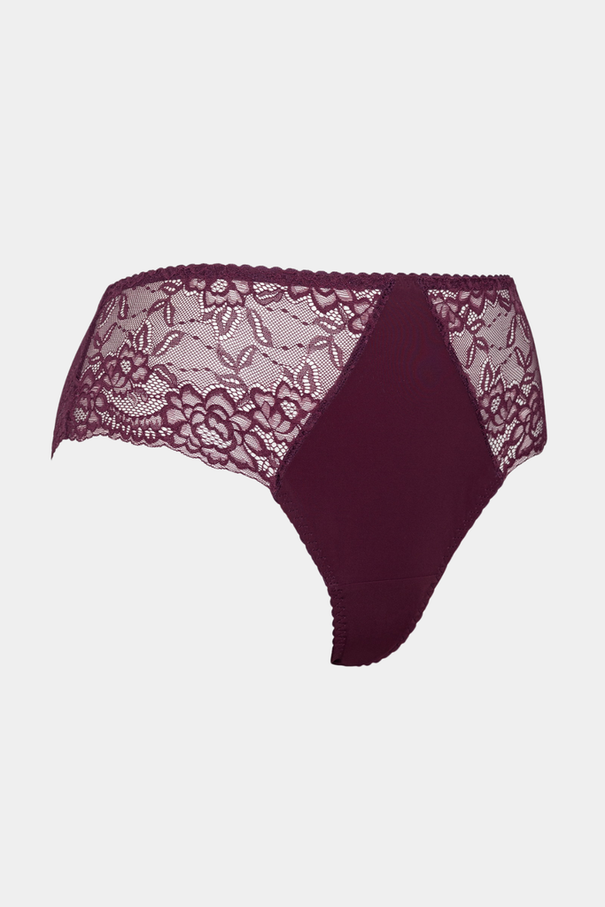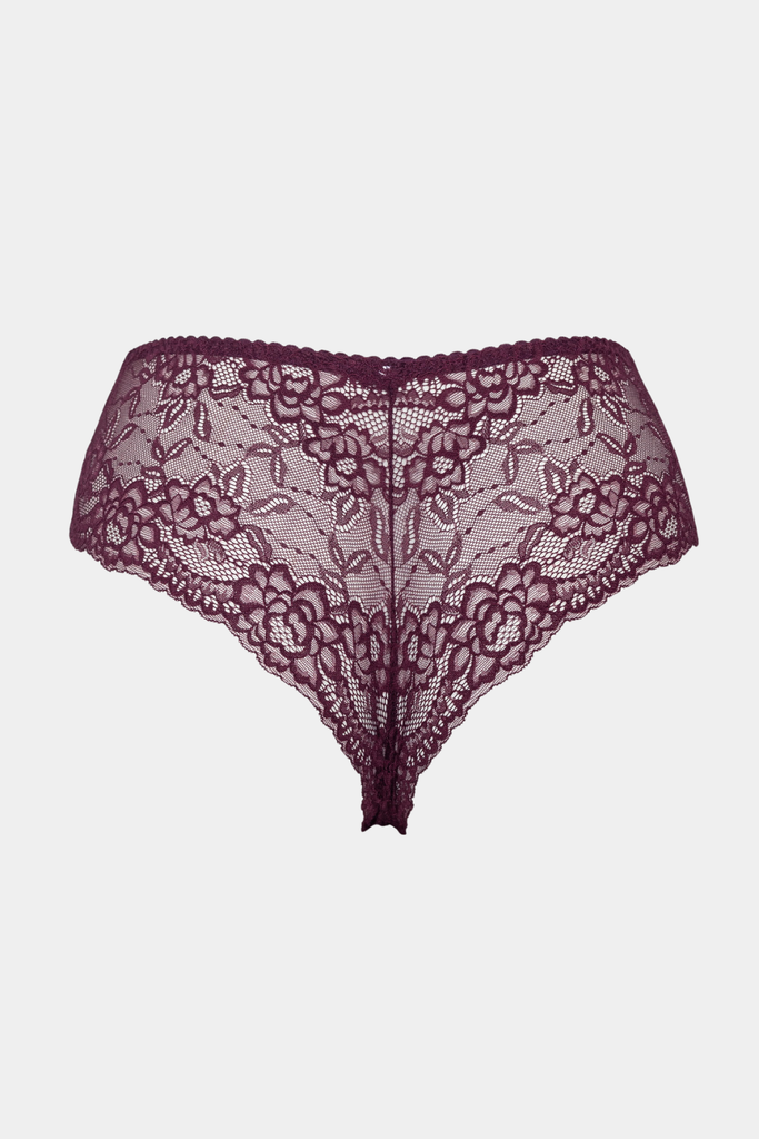 Smuk Boudoir trusser fra Plaisir i den smukkeste vinrød farve med blonder.
