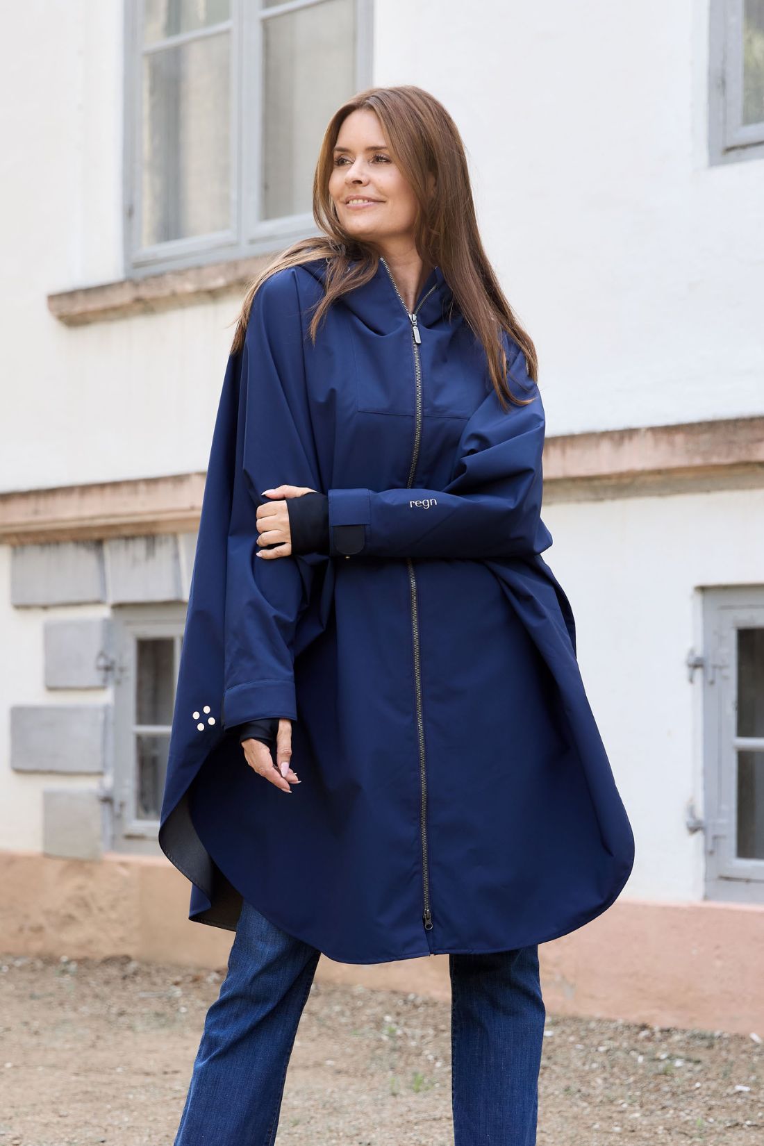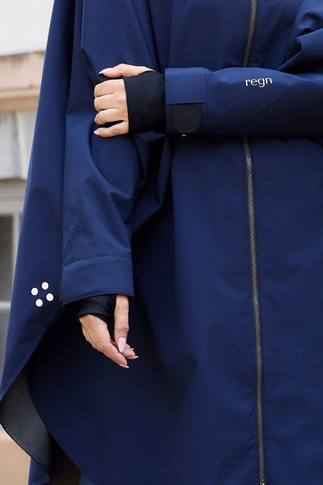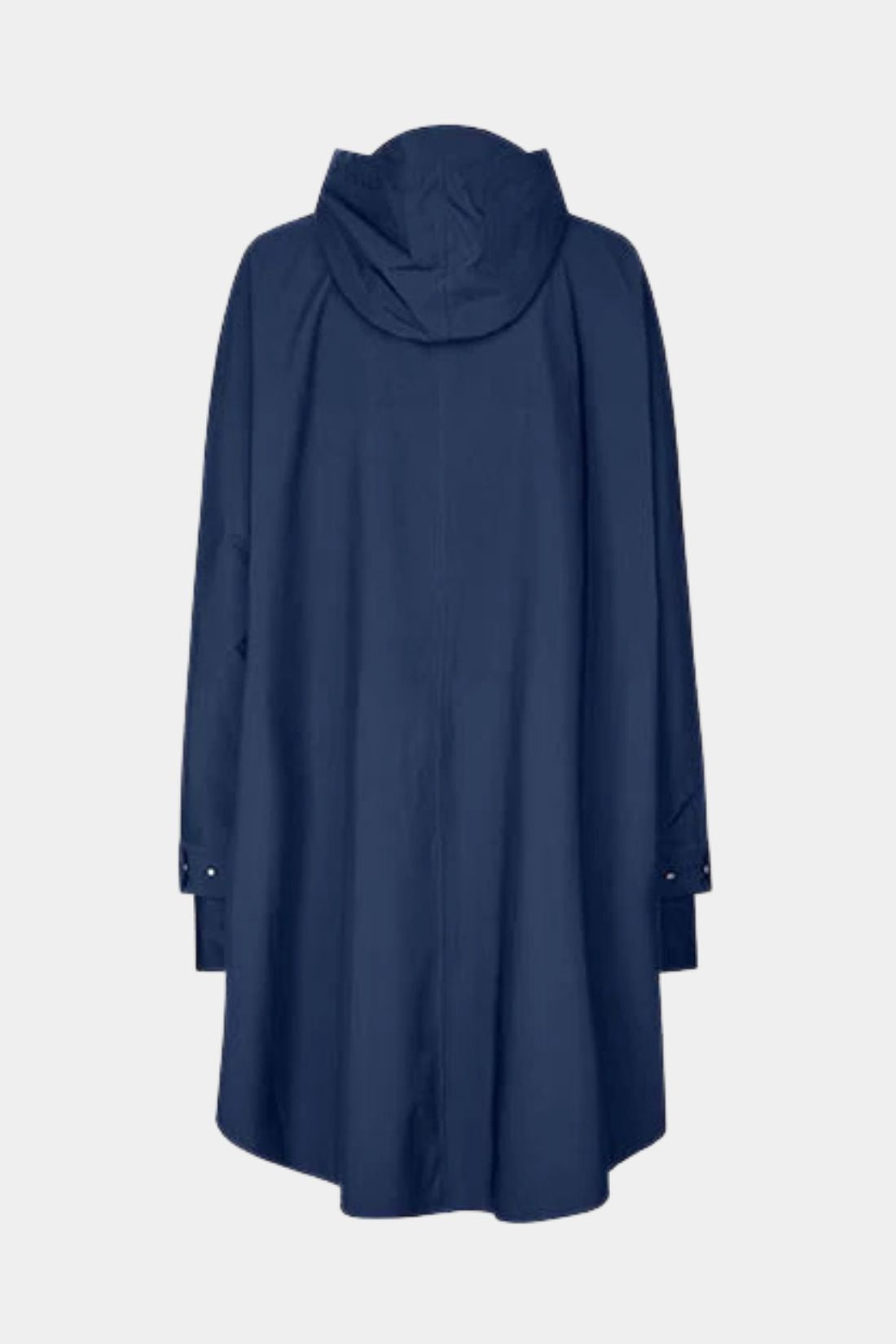 Funktionel og moderne poncho fra REGN i en rummelig oversize facon, der giver masser af bevægelsesfrihed og et stilrent udtryk. Den mellemlange længde og de gennemtænkte detaljer gør den perfekt som et beskyttende lag i regn og blæst, uden at gå på kompromis med komforten.