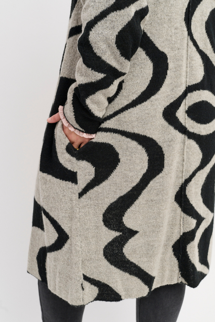 Den åbne front og den lange længde gør den let at style over kjoler, jeans eller leggings.