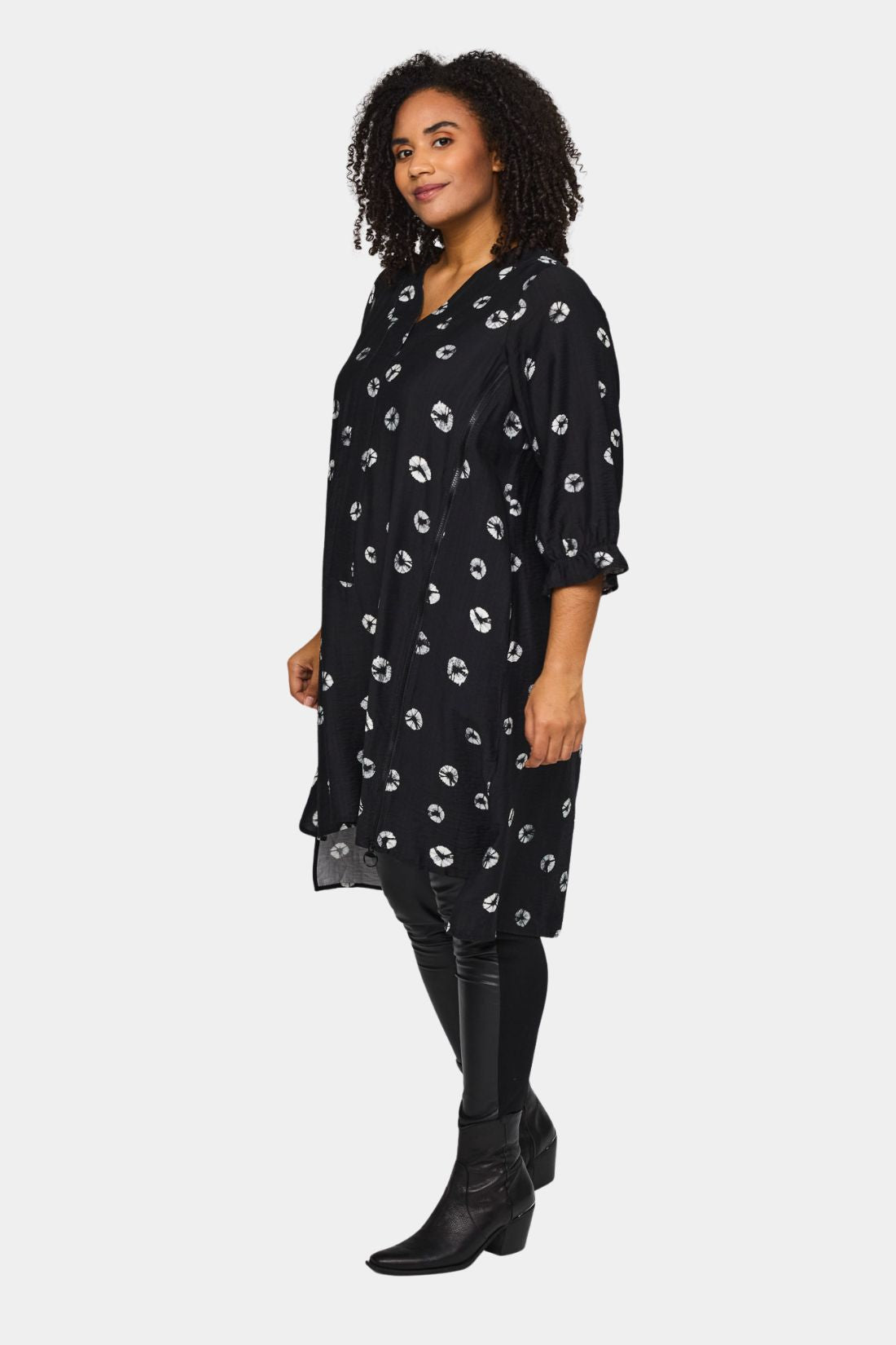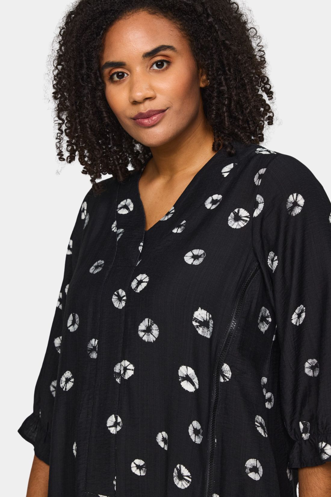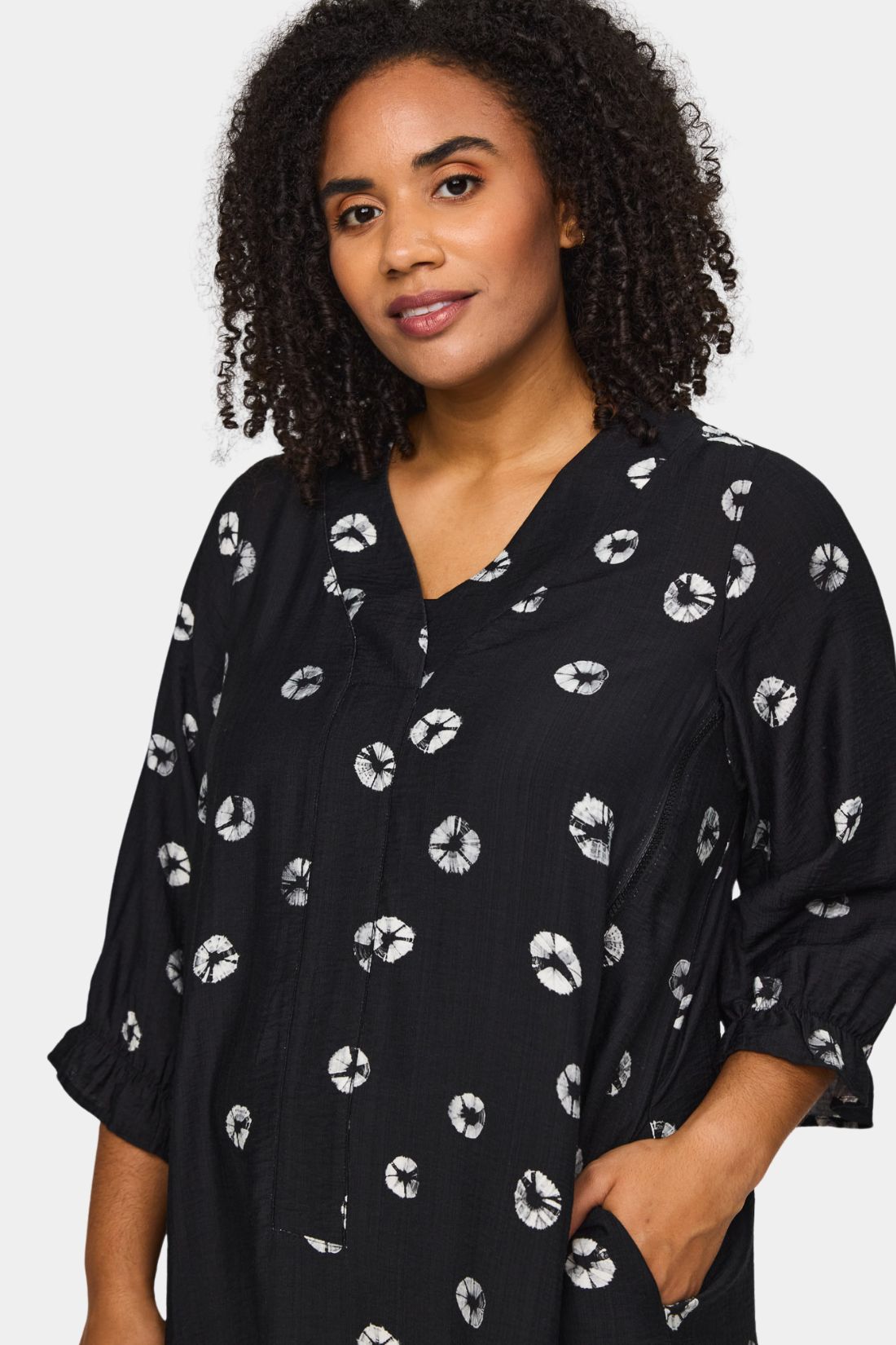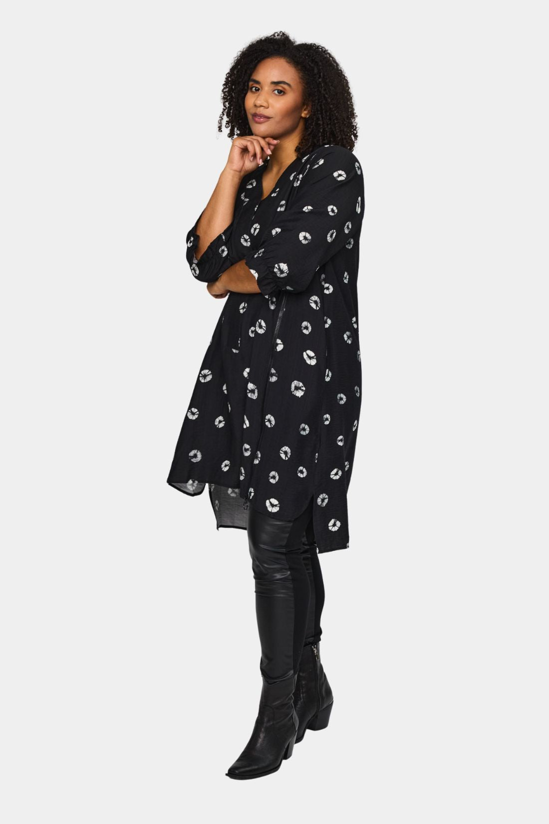 Smuk og let kjole fra Studio i sort med dekorative, lyse cirkler. Kjolen har et afslappet og moderne udtryk med fine detaljer, der giver et unikt look.