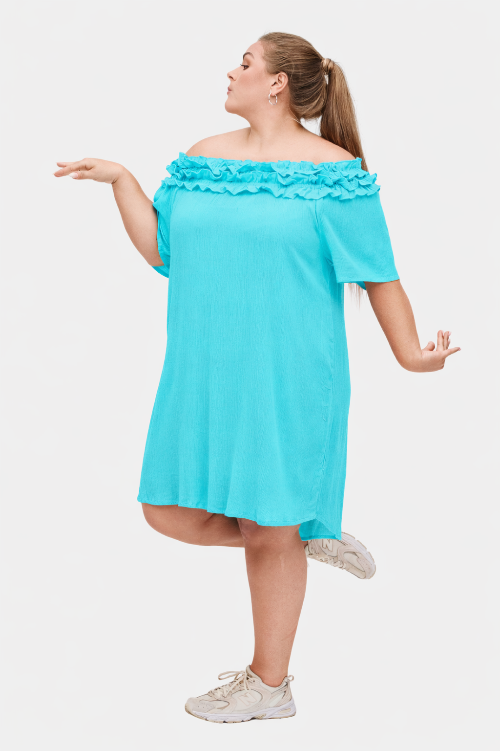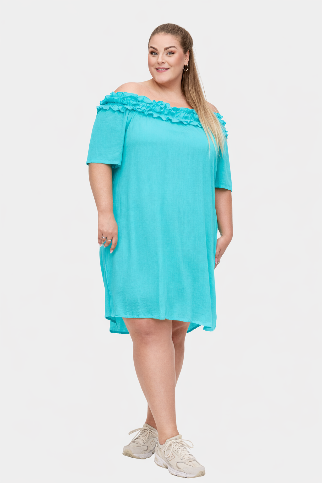 • Kan styles oppe ved halsen, off shoulder eller som one shoulder