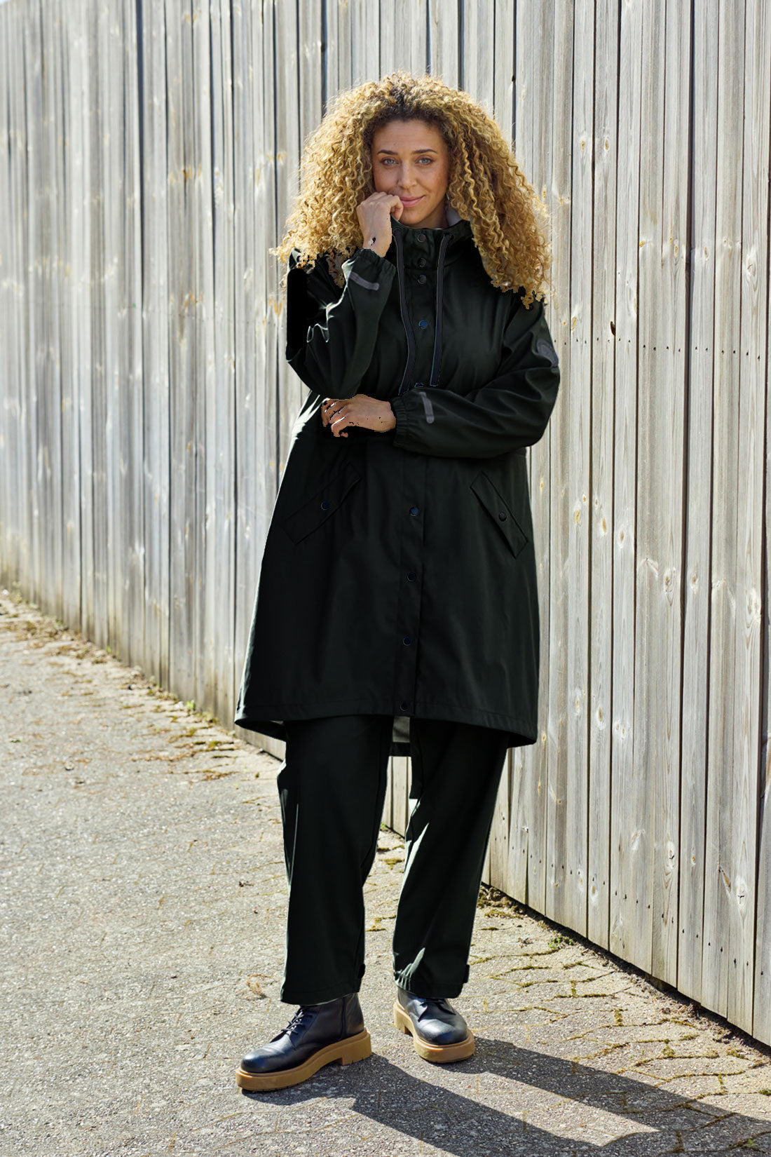 Sorte regnbukser fra Zhenzi i en glat og let strækbar kvalitet, der følger benene uden at føles tunge. Den enkle og funktionelle model er perfekt til regnfulde dage, hvor du ønsker bevægelsesfrihed og komfort – uden at gå på kompromis med et stilrent udtryk.