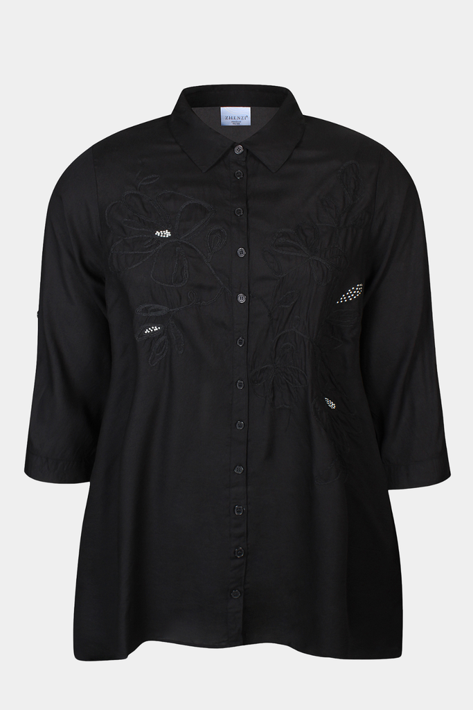 Sort Siba skjorte tunika fra Zhenzi med broderi