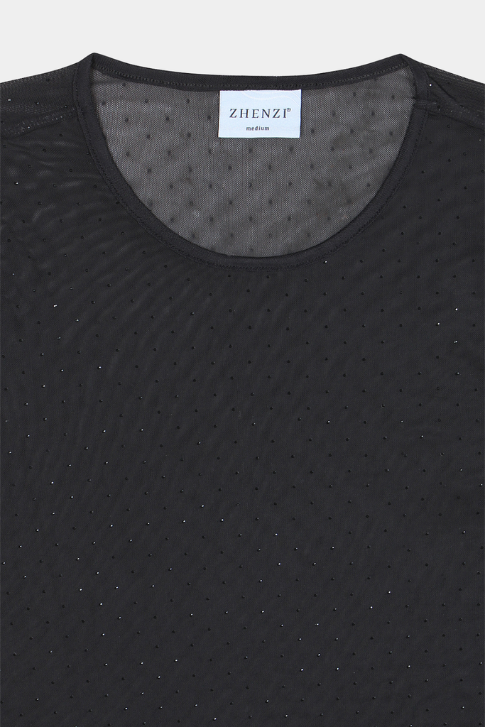 Fineste mesh bluse fra Zhenzi i sort med små sort simili sten.