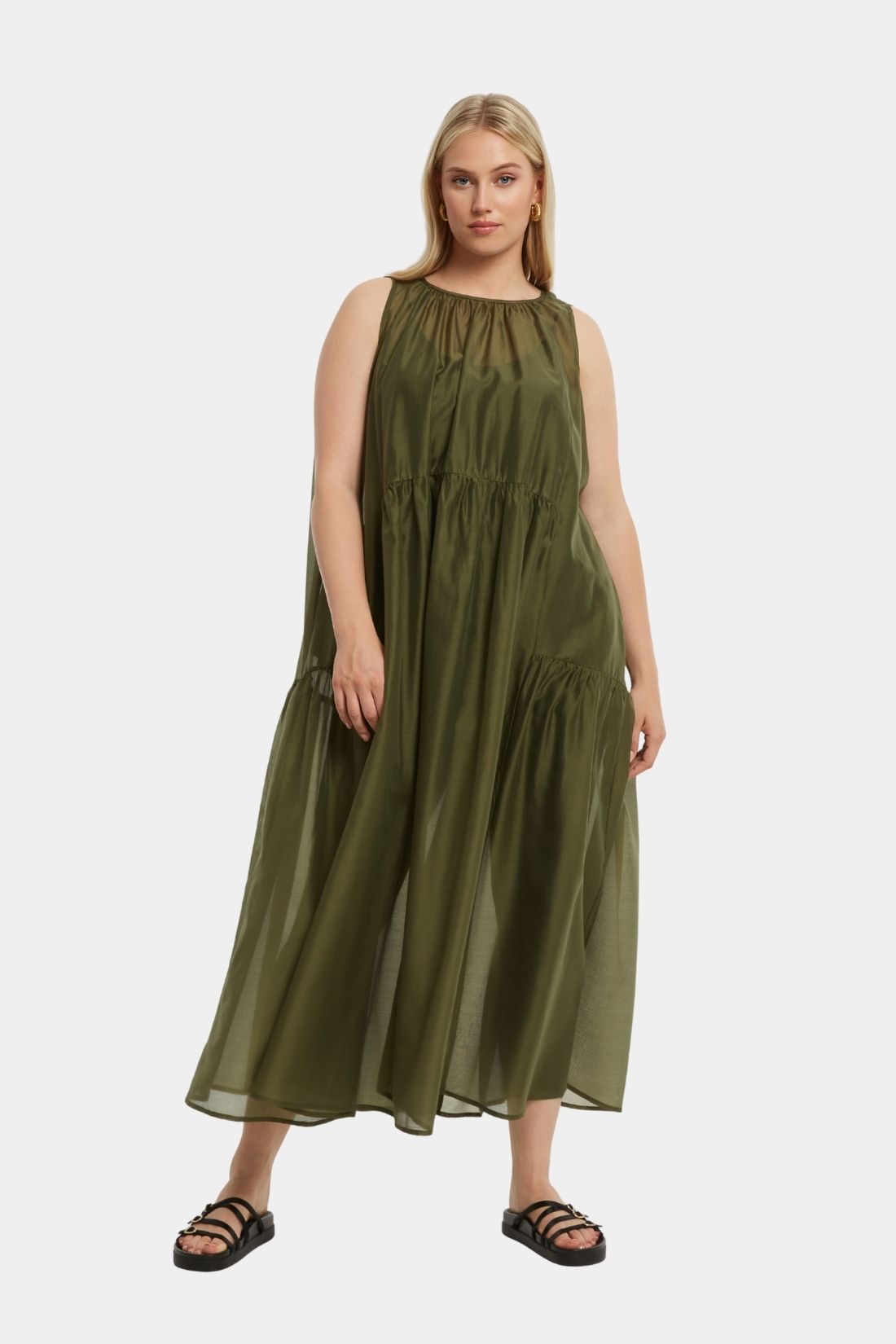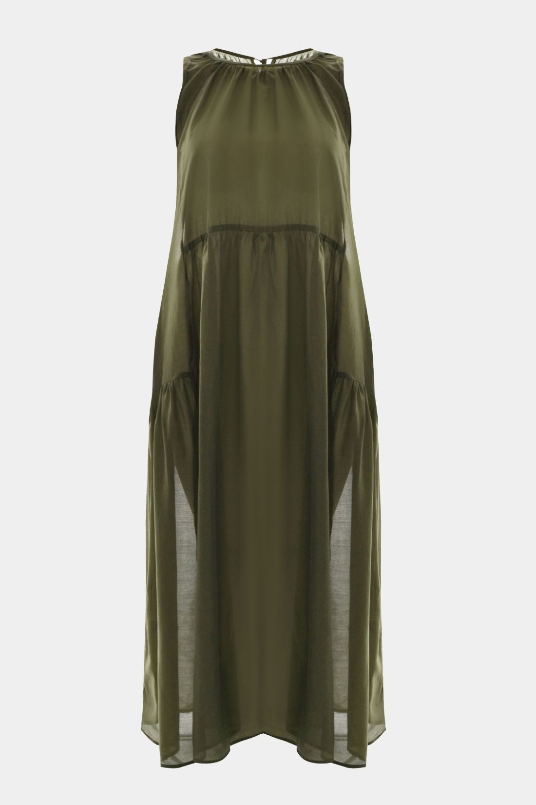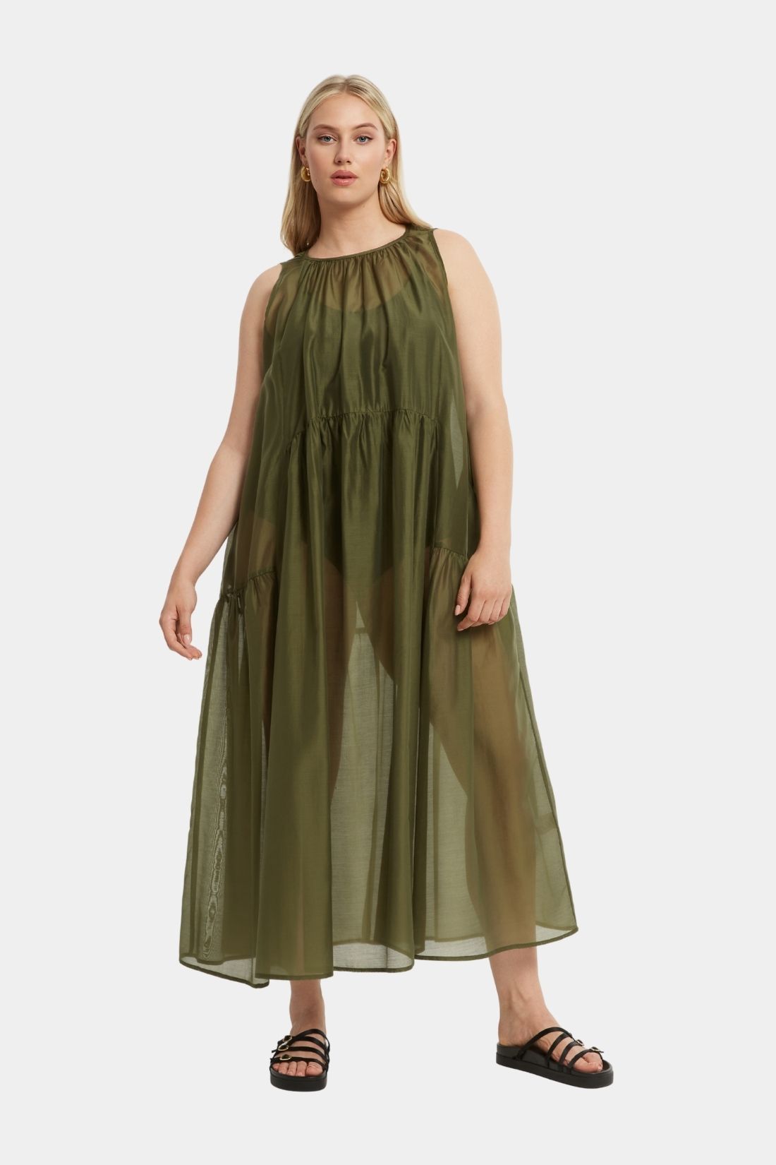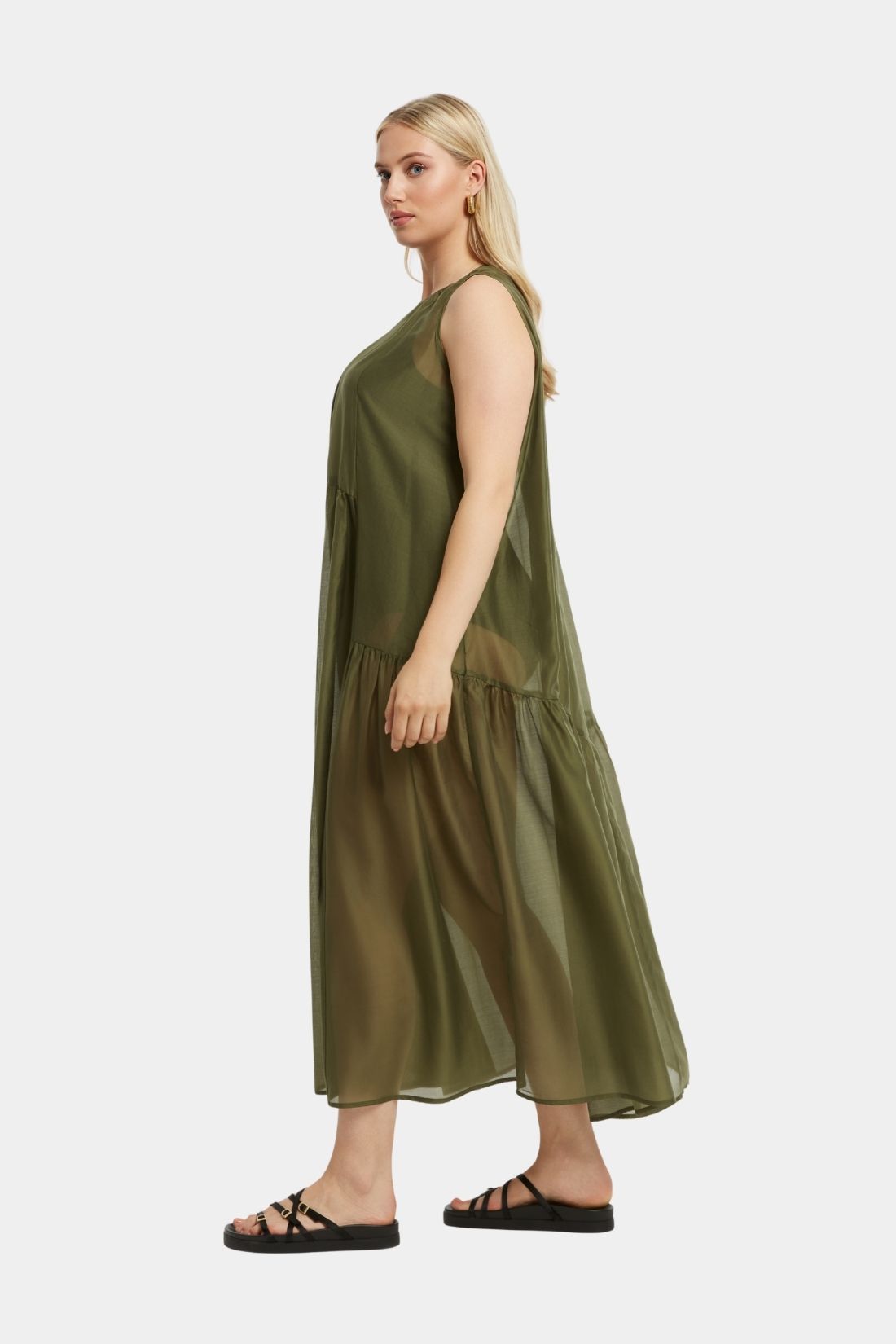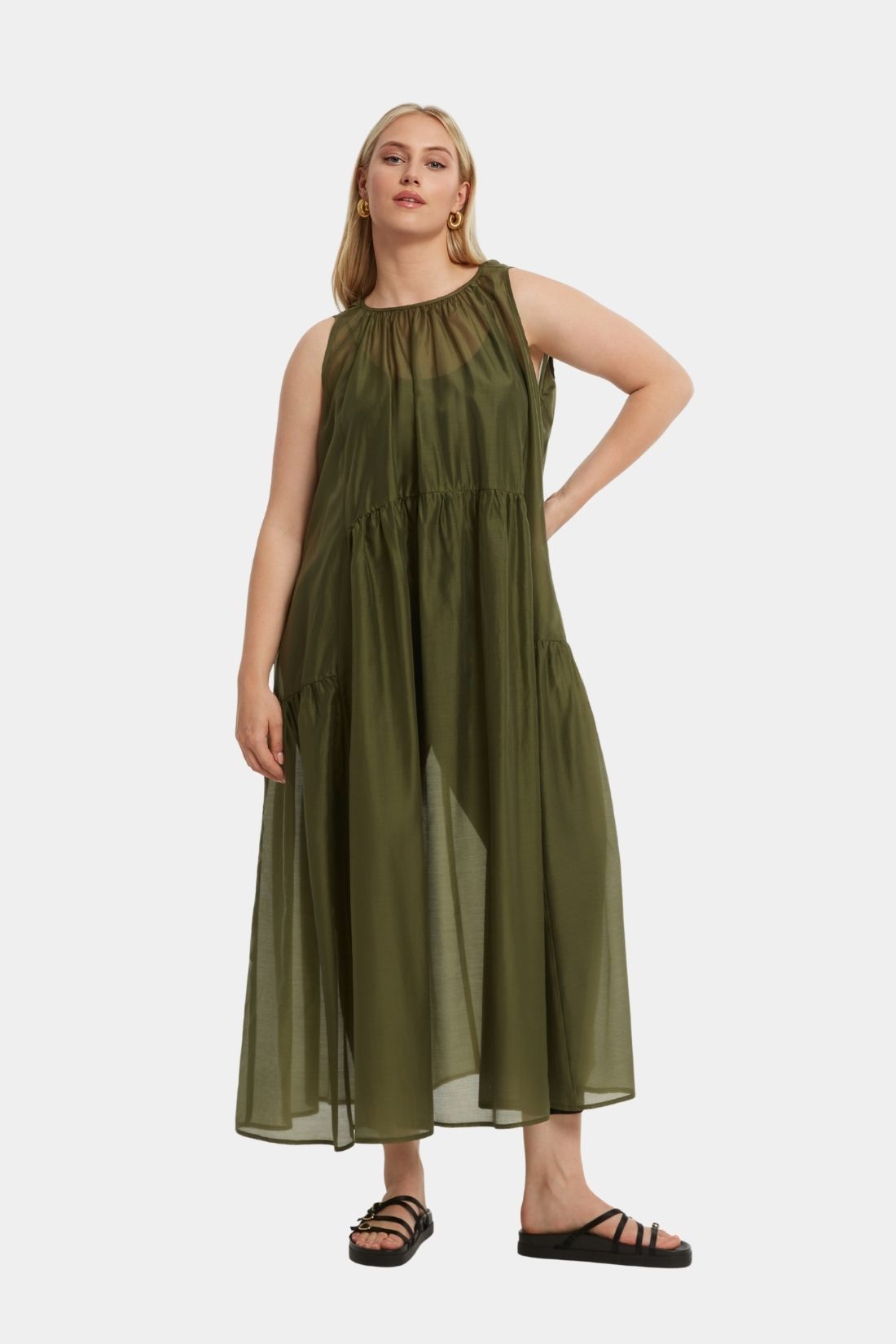 Denne kjole fra Mat Fashion er et let og elegant valg med et smukt, luftigt chiffon-look. Den transparente kvalitet giver et feminint og eksklusivt udtryk, mens den løse pasform sikrer høj komfort. Den dybe grønne farve tilfører et sofistikeret præg, og kjolen er ideel både alene med underkjole eller stylet med lag under.