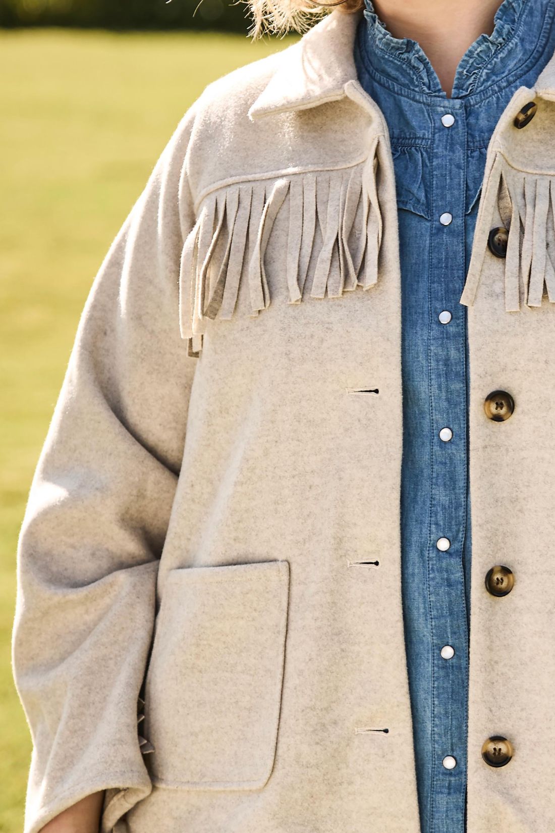 • Frynsedetaljer over brystet og på ryggen
