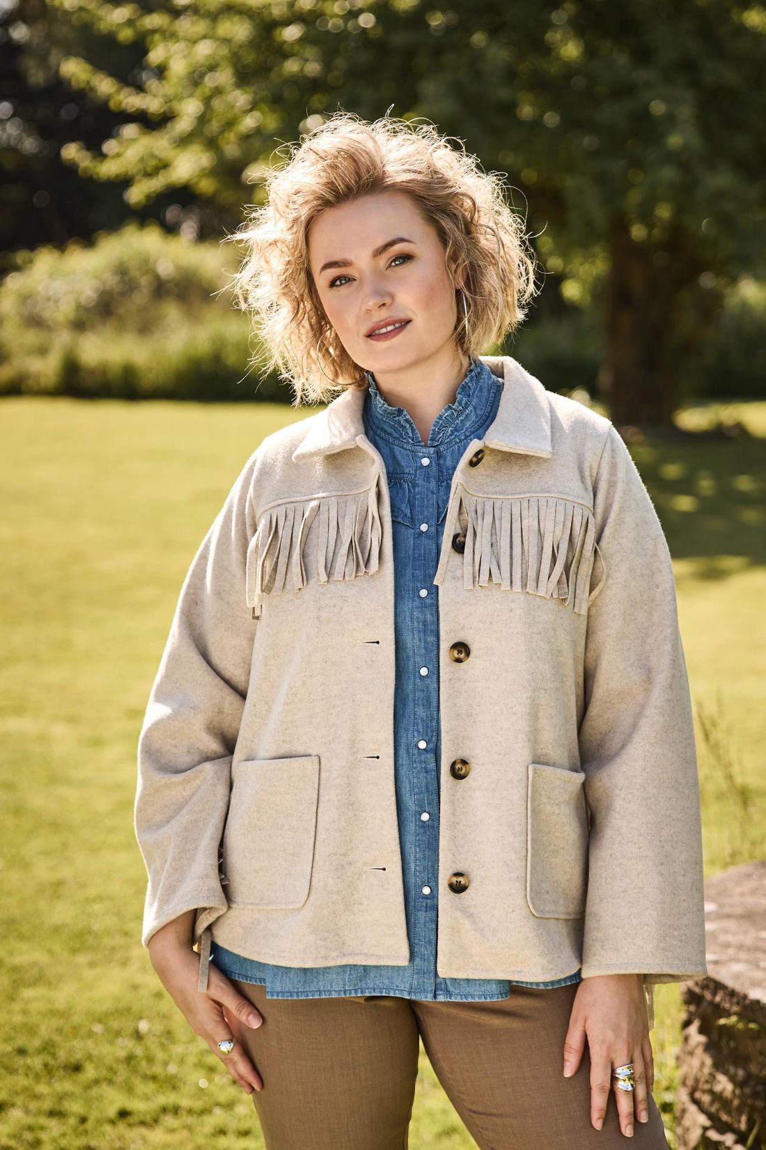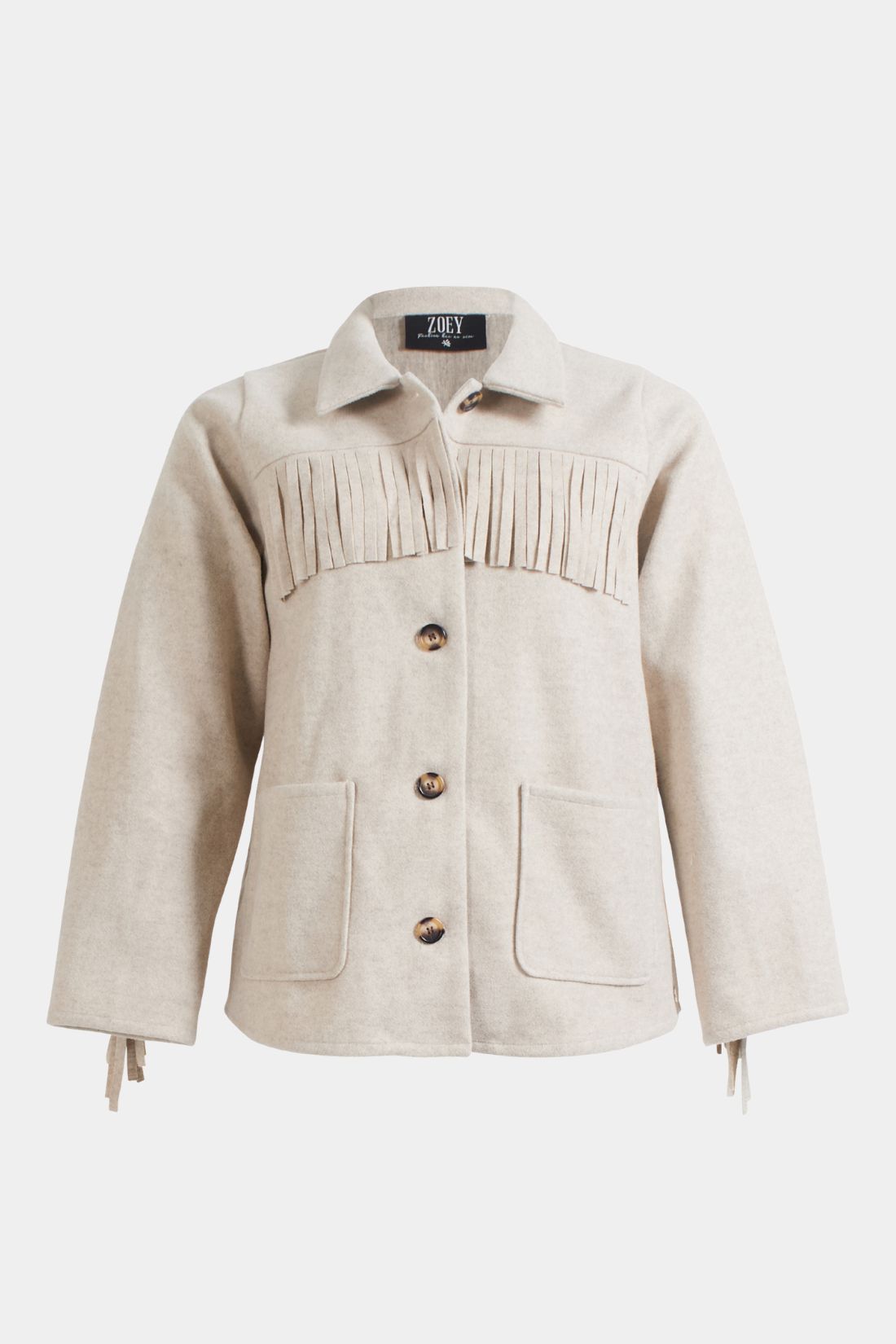 Utrolig smuk jakke fra Zoey i en blød og lækker kvalitet med et eksklusivt udtryk. Den sandfarvede nuance kombineret med de fine frynsedetaljer giver jakken et elegant western inspireret look, som er både feminint og moderne. Perfekt som overgangsjakke eller som et statement piece til hverdagen.