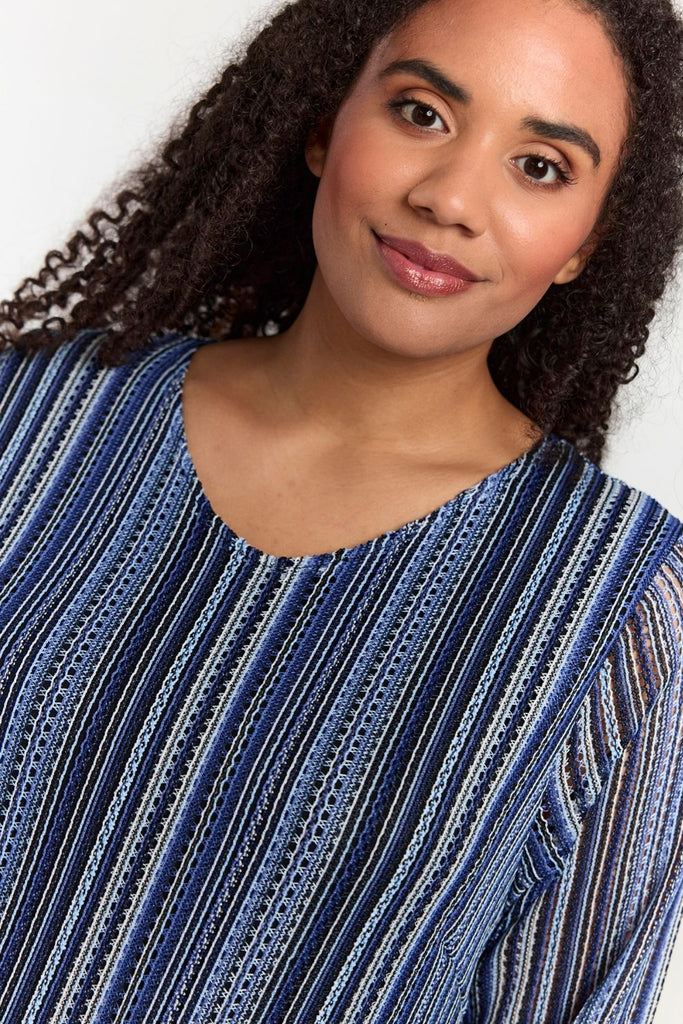• Strikket look med rib og vandrette striber